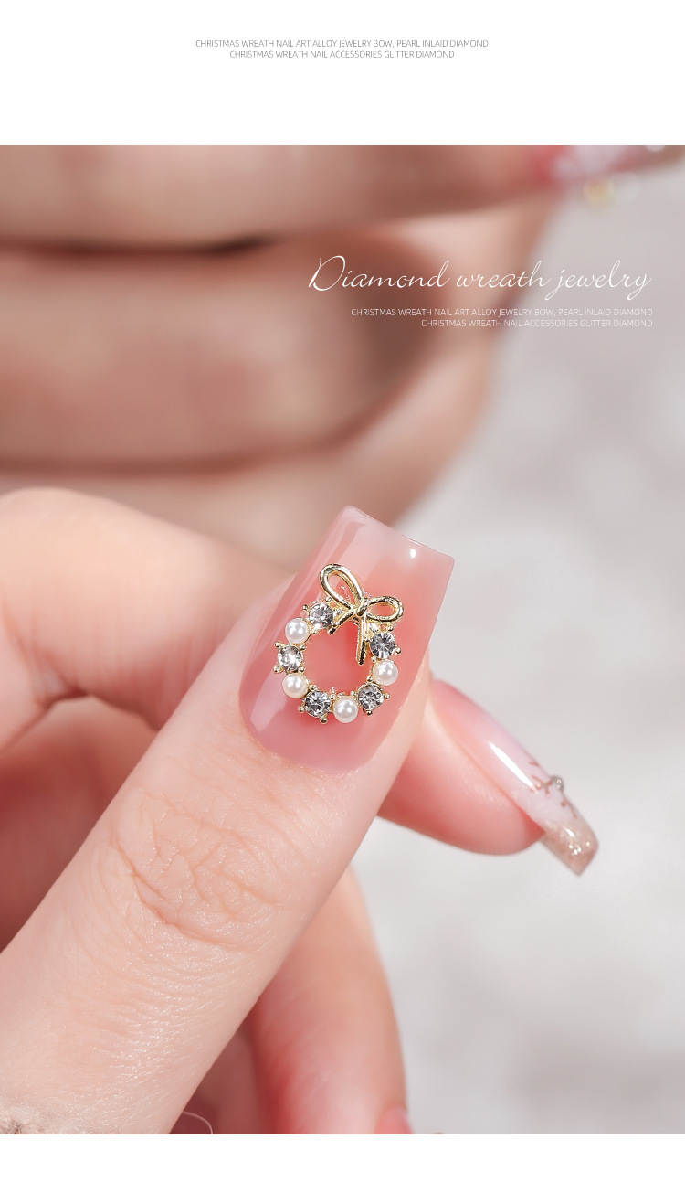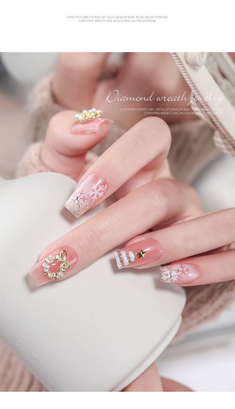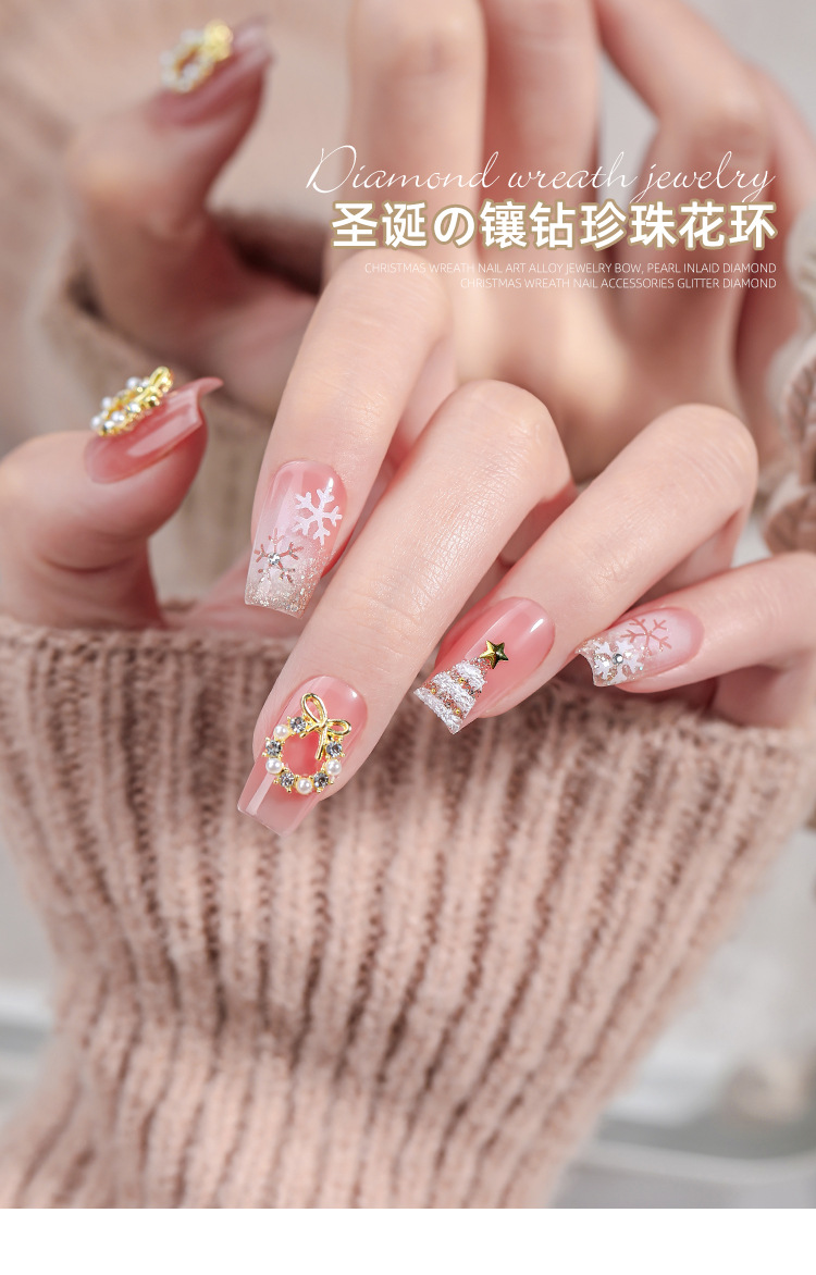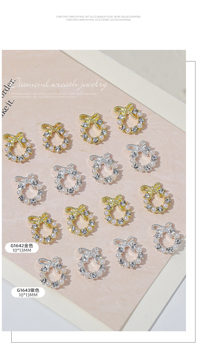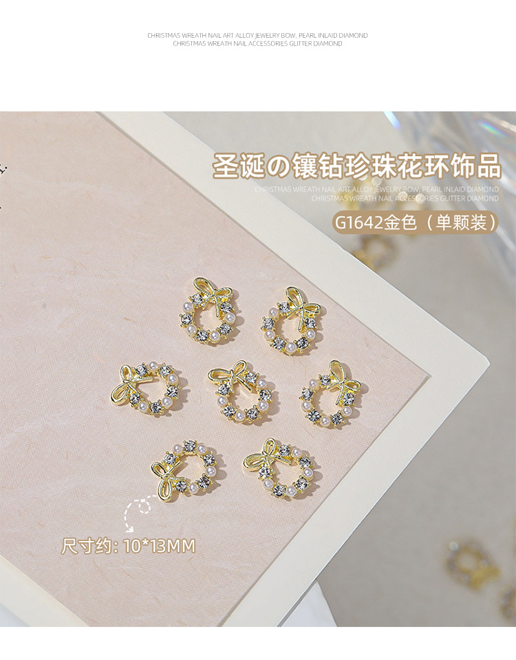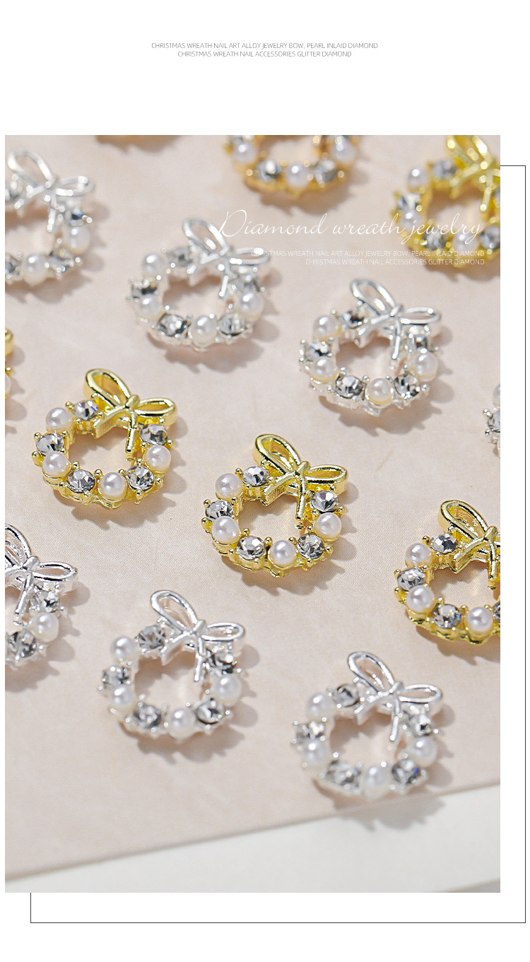 Popular en línea populares accesorios de diamantes de uñas súper brillante perla Rhinestone Navidad exquisita Garland pequeño collar combinado con accesorios de diamantes de oro al por mayor