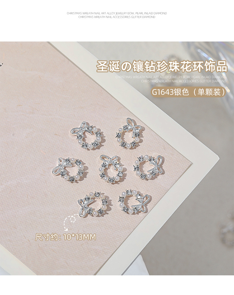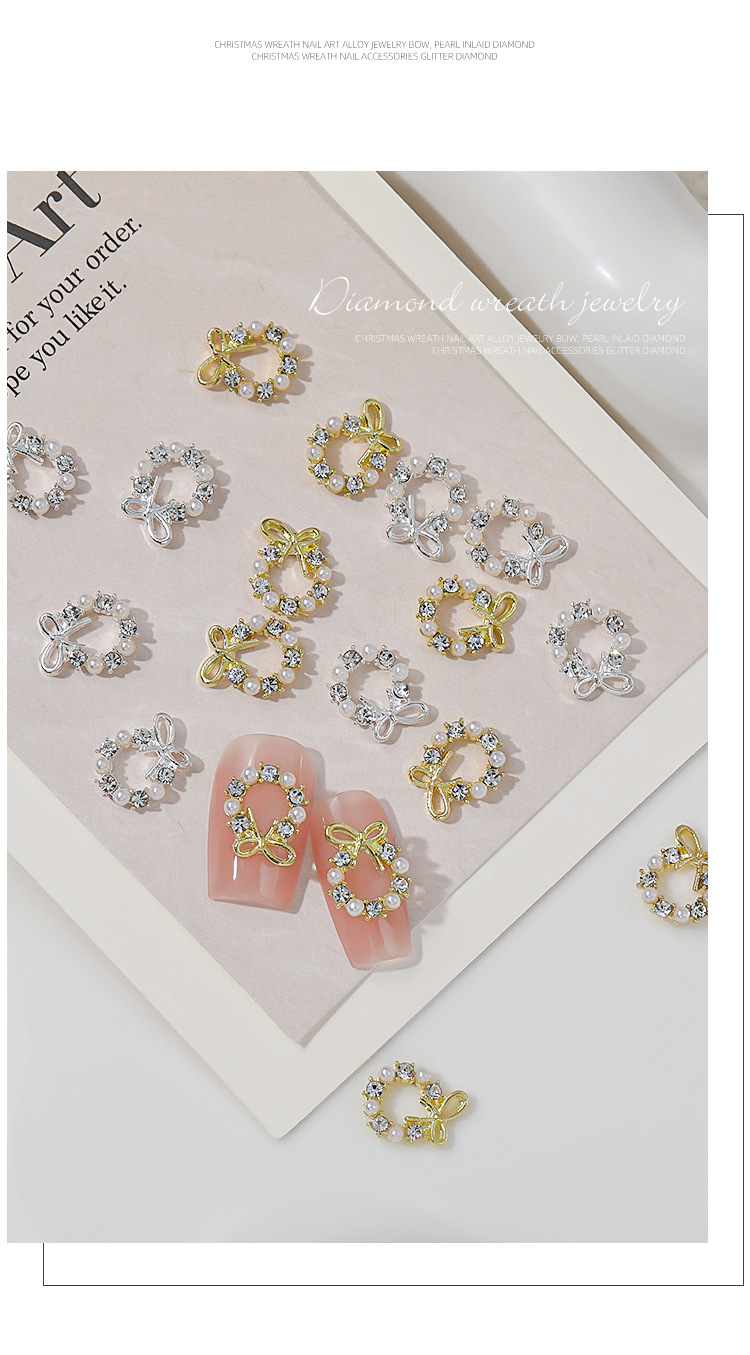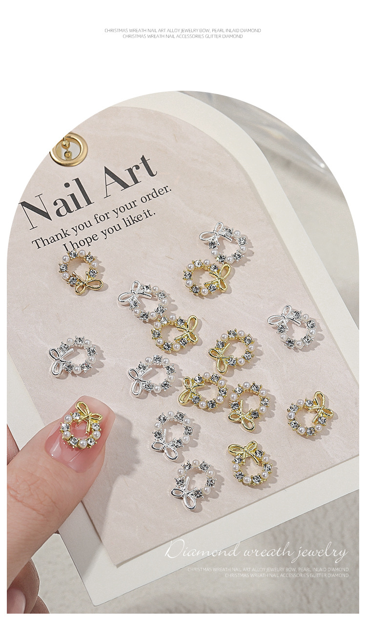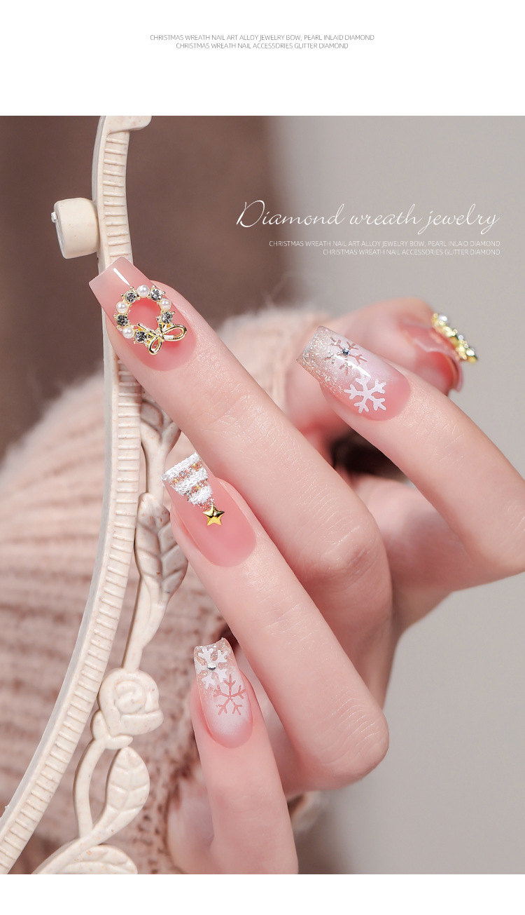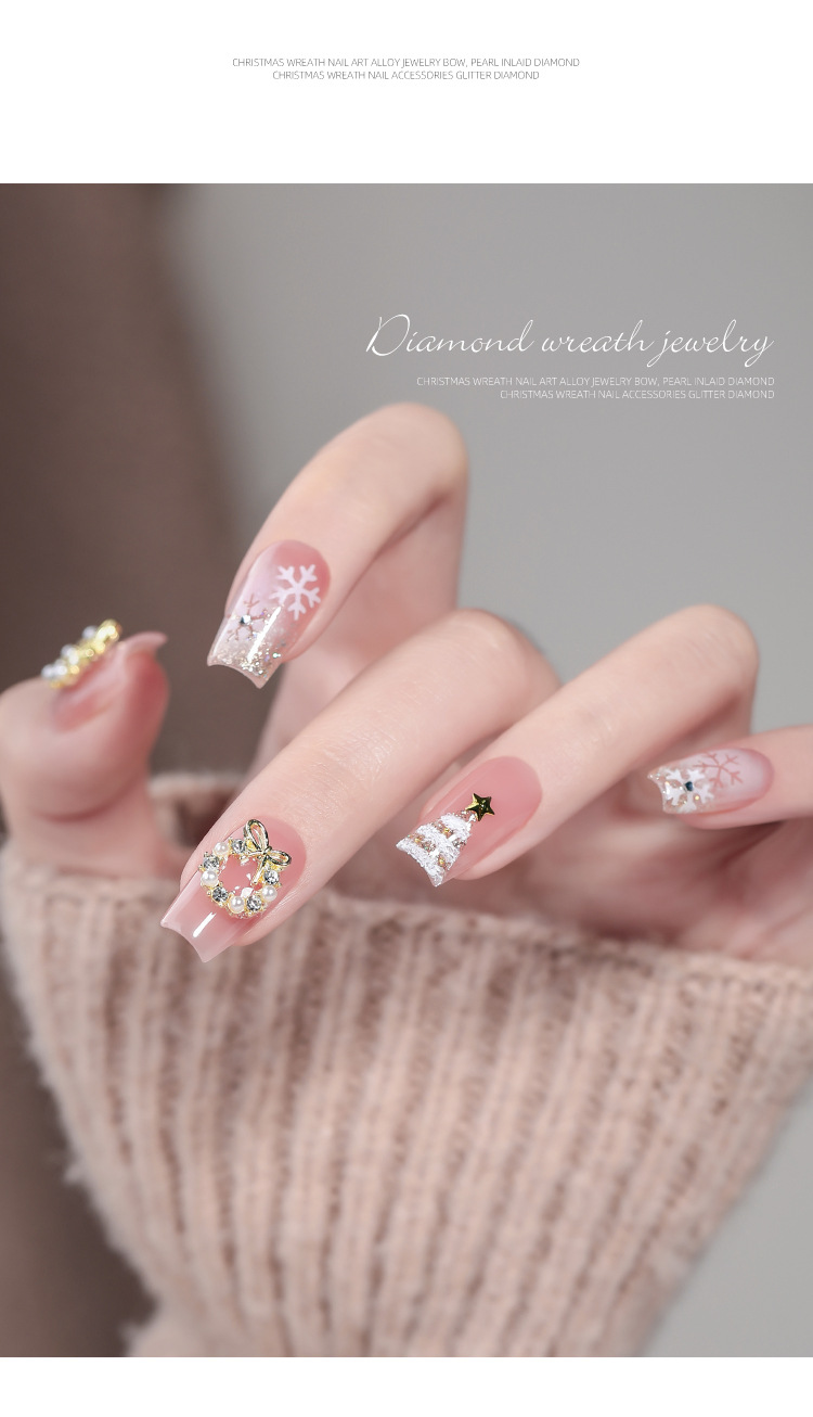 Popular en línea populares accesorios de diamantes de uñas súper brillante perla Rhinestone Navidad exquisita Garland pequeño collar combinado con accesorios de diamantes de oro al por mayor