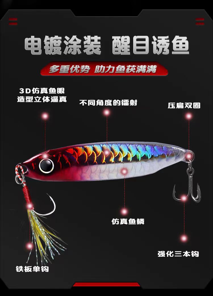 Caída de la placa de hierro de Luya patrón de escala de pescado boca oblicua kaxing nueva pesca capa de agua completa Luya cebo Placa de hierro