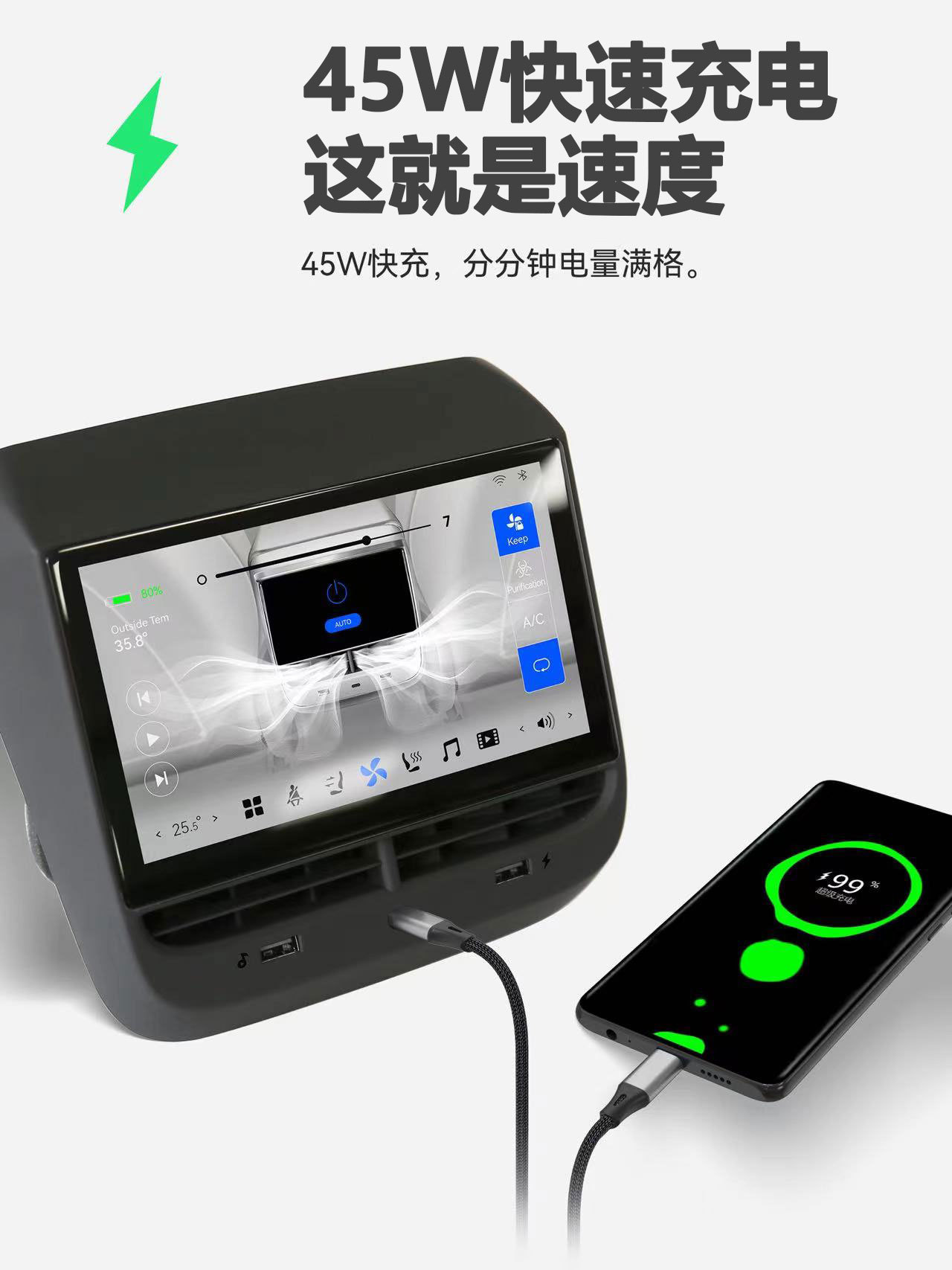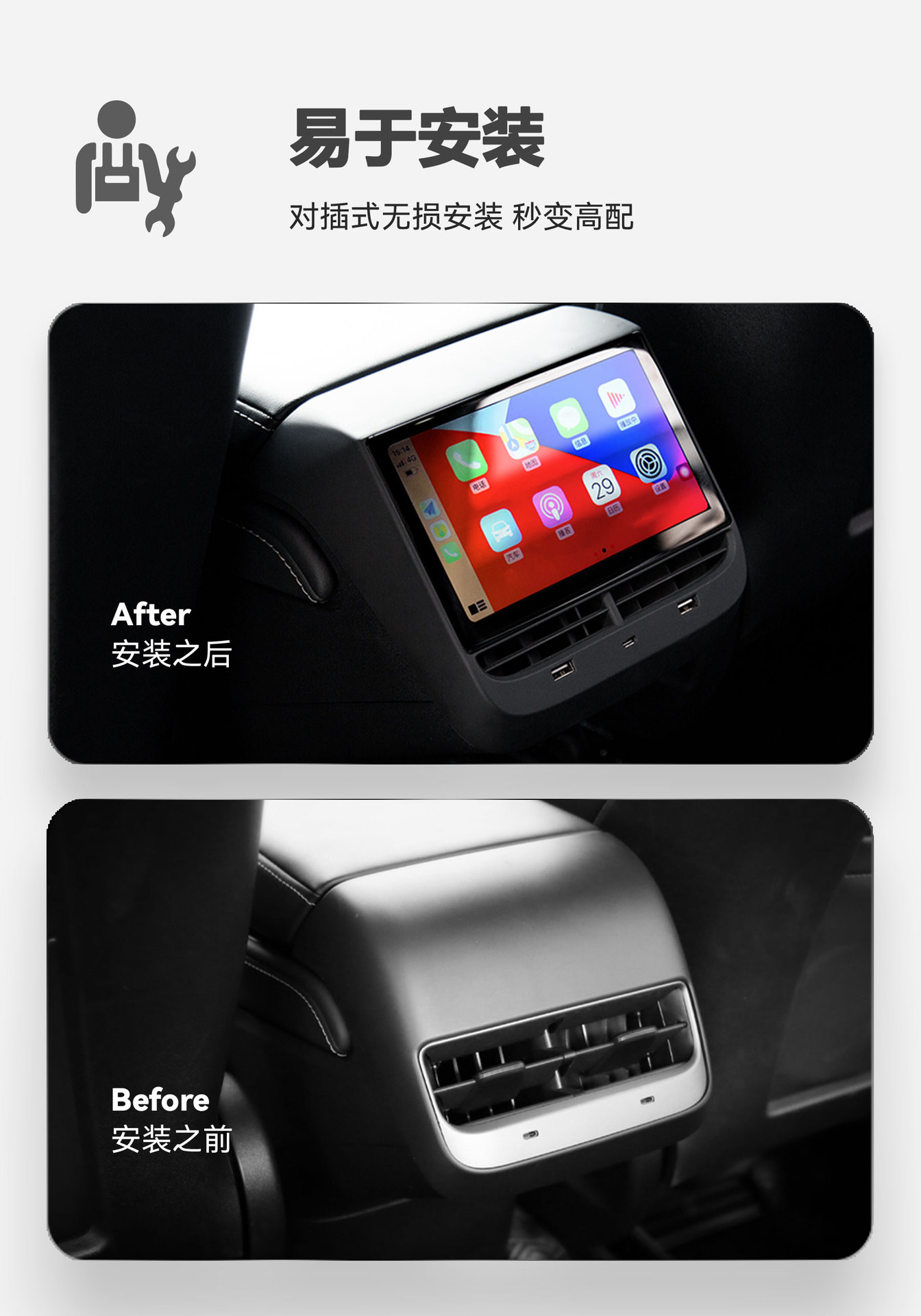 Aplicable a Tesla Model3/y trasera 7 pulgadas entretenimiento aire acondicionado control coche interior modificado pantalla LCD