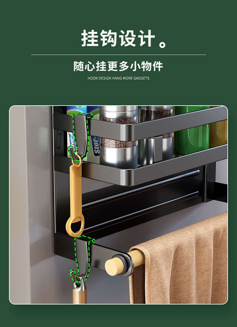 Estante de cocina multifuncional sin ponche estante de condimento estante de acero inoxidable refrigerador puerta lateral estante de almacenamiento magnético