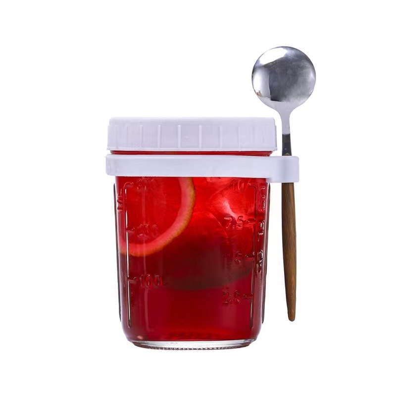 Amazon Taza de avena durante la noche Taza de desayuno Taza Mason Taza de yogur Taza de postre con tapa Cuchara Taza de avena Vaso con escala
