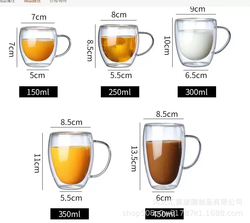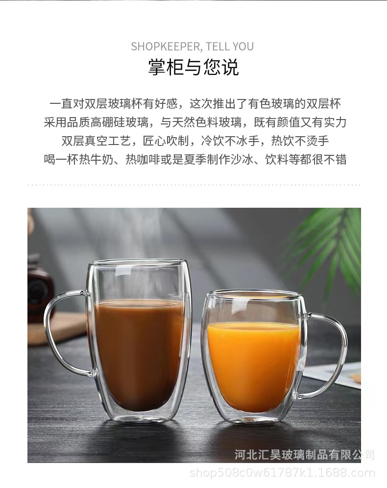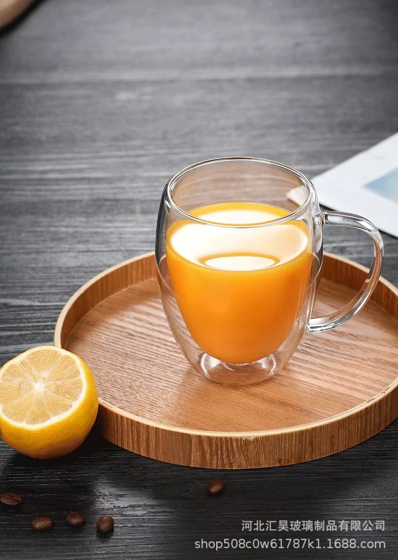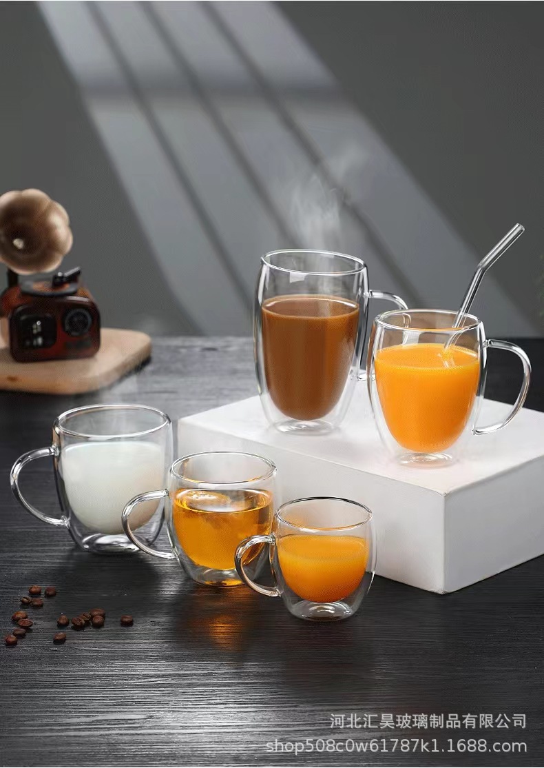 Venta al por mayor de doble capa taza con mango borosilicato vidrio leche té bebida vidrio resistente al calor anti-scald vidrio taza de té