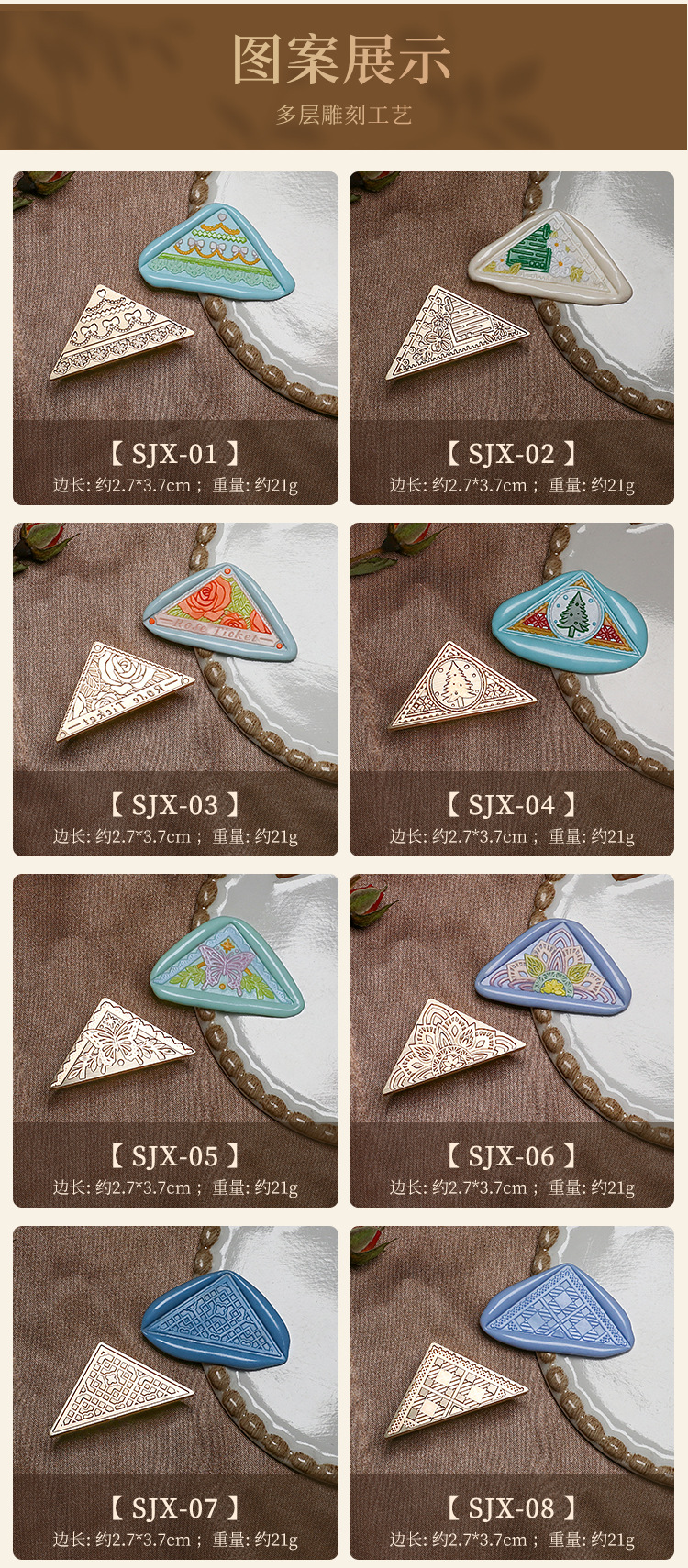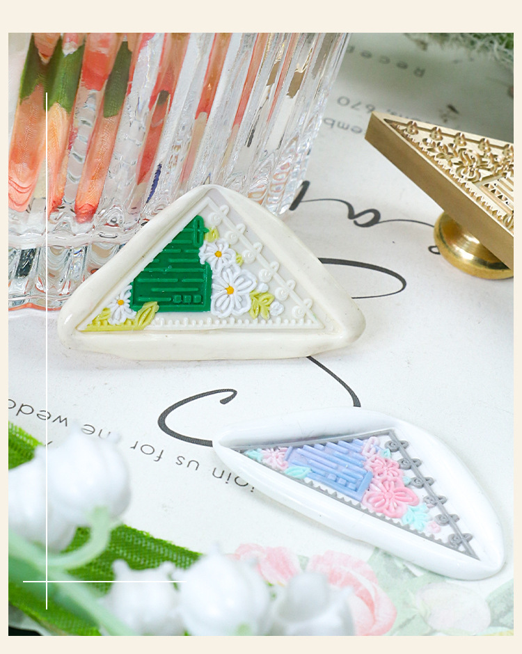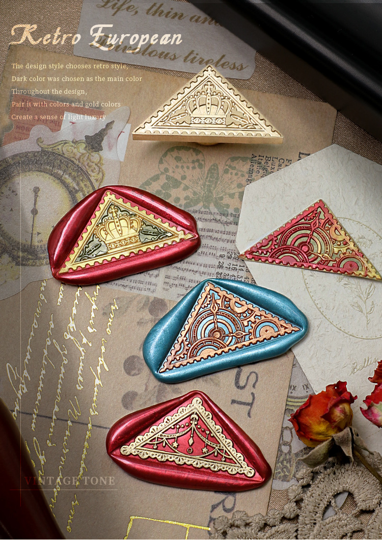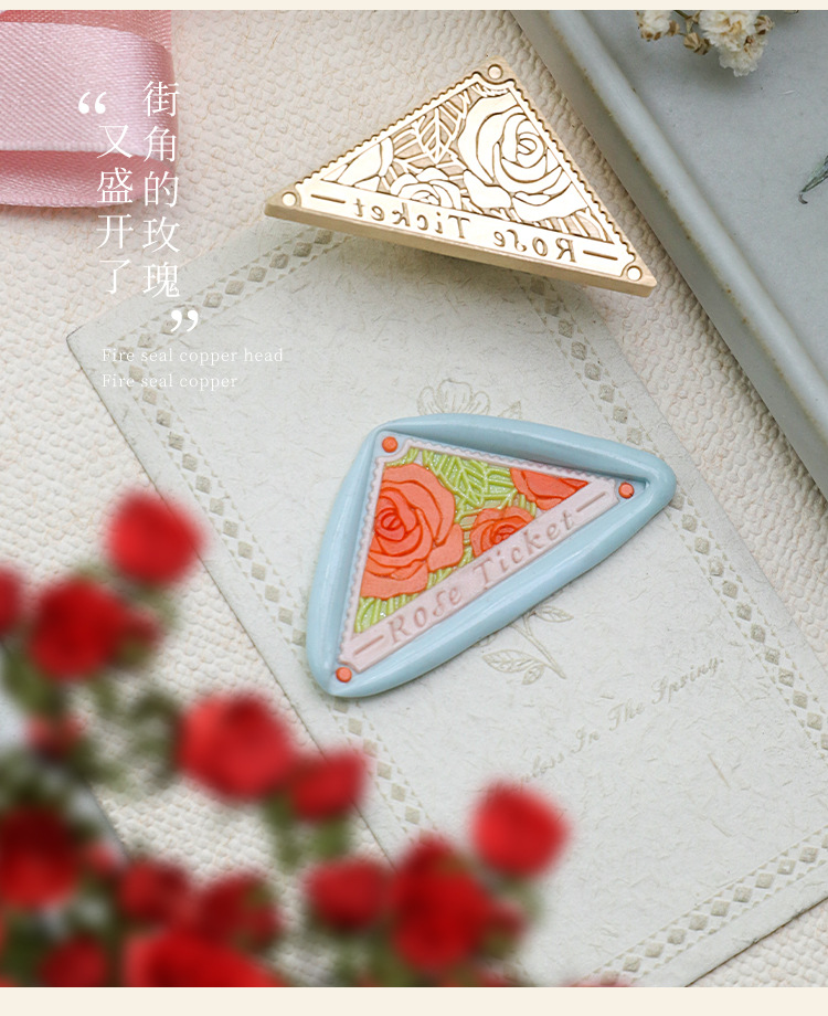 Fábrica directa fuego pintura sello cobre cabeza triángulo fuego pintura cera vintage Rosa tallada sellado cera mano cuenta regalo
