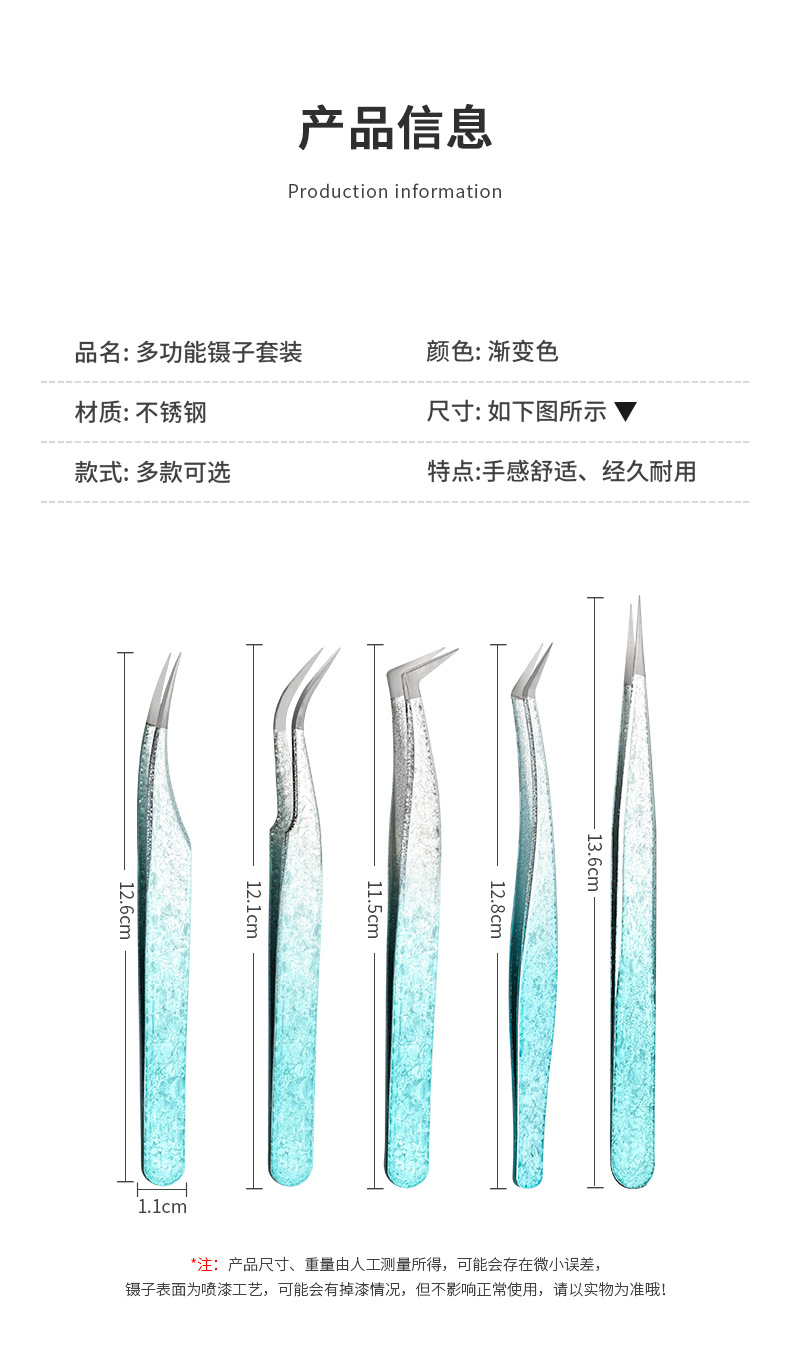 Joyería de uñas de precisión transfronteriza pinzas Flor de hielo galvanoplastia delfín Pluma de Oro Clip 2 unidades traje pinzas herramientas de uñas