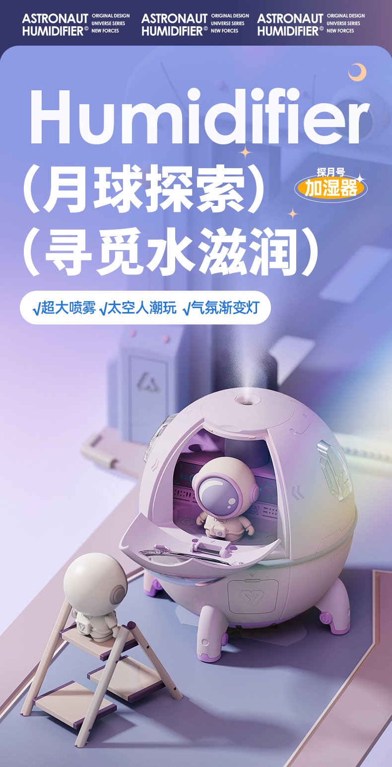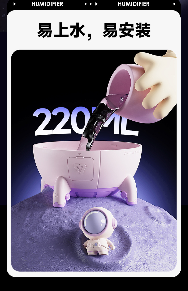 Astronauta humidificador colorido hogar dormitorio coche dormitorio escritorio pequeño humidificador portátil Mute luz de la noche