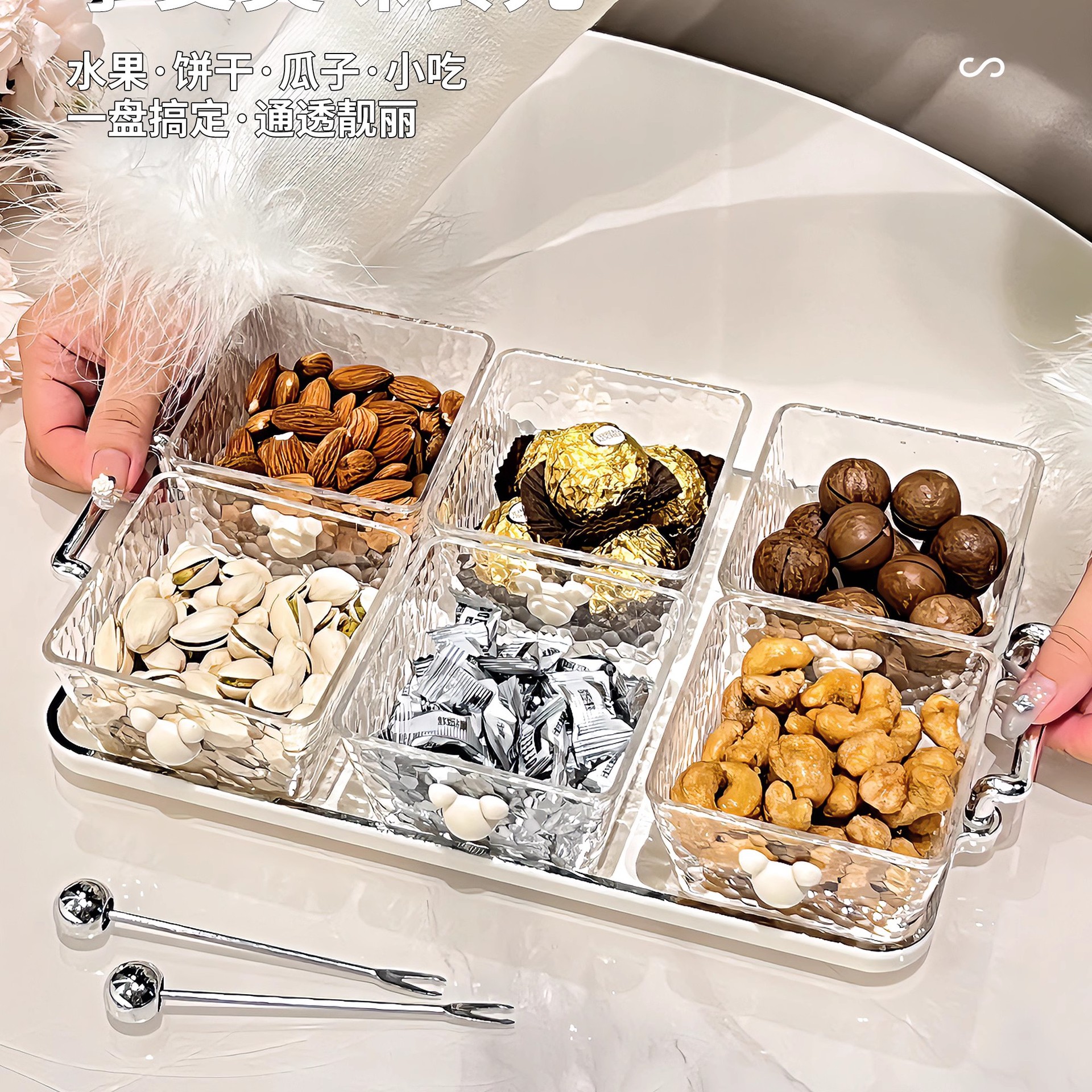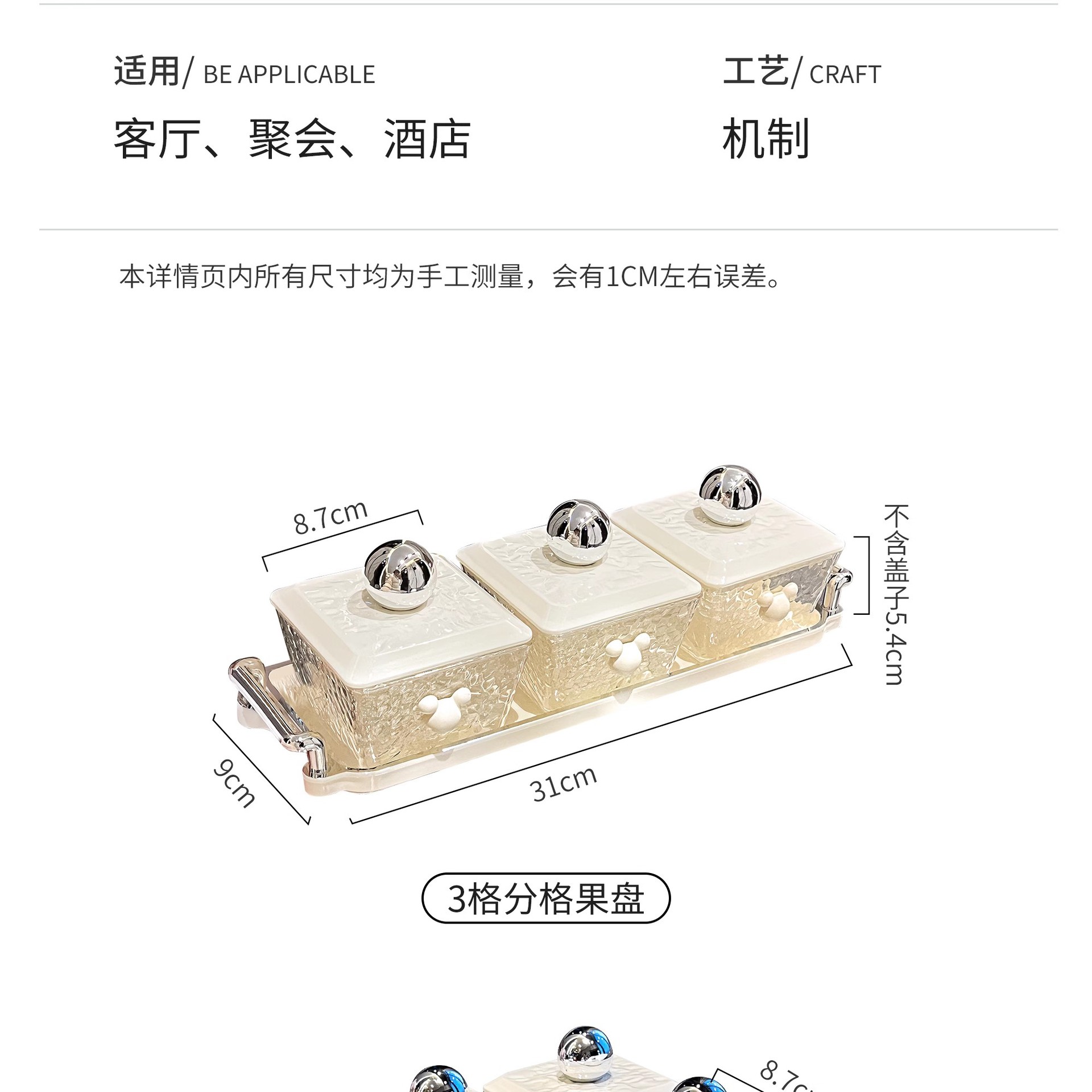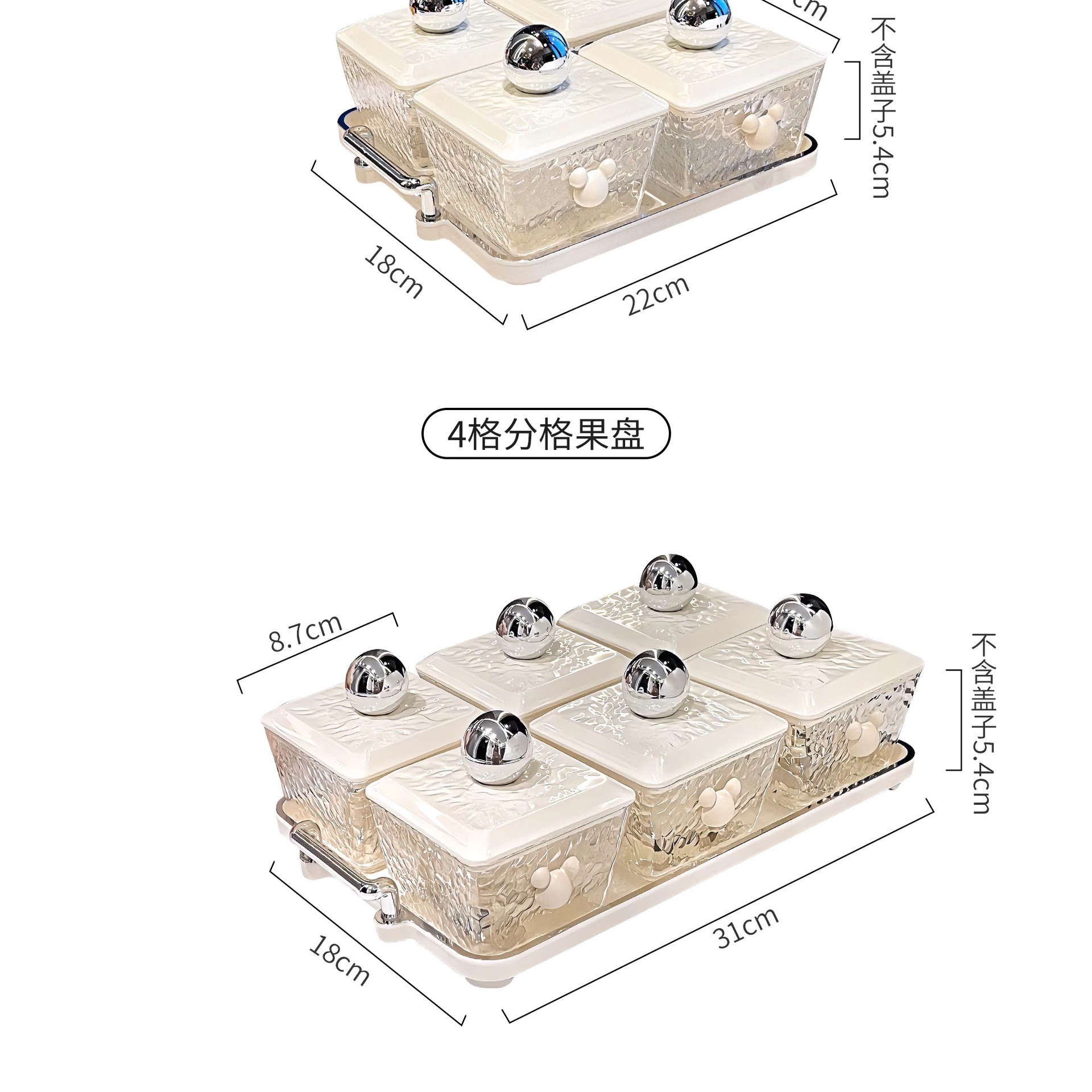 Plato de fruta seca Luz de lujo sala de estar hogar de alta gama caramelo merienda plato compartimiento con tapa KTV fruta merienda plato