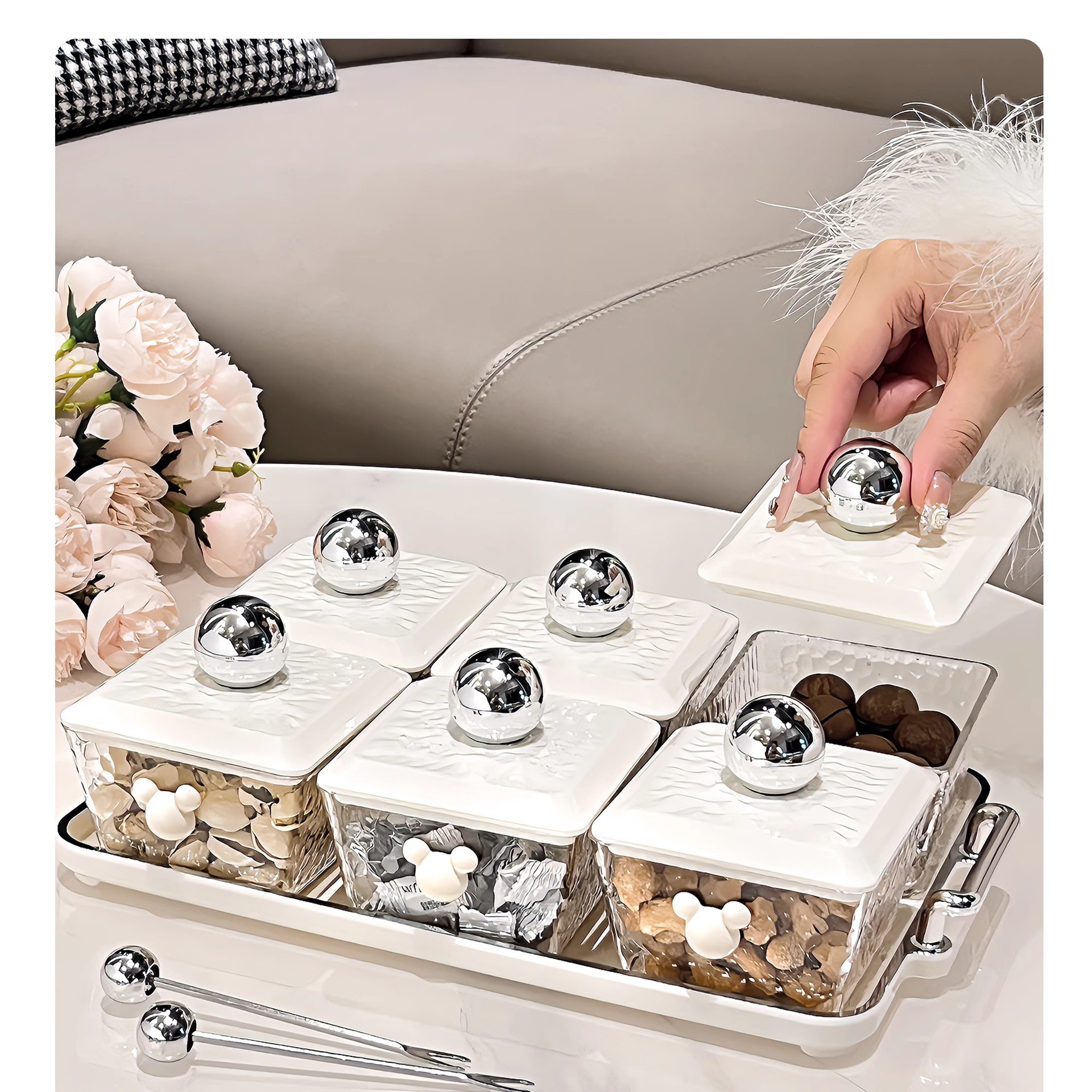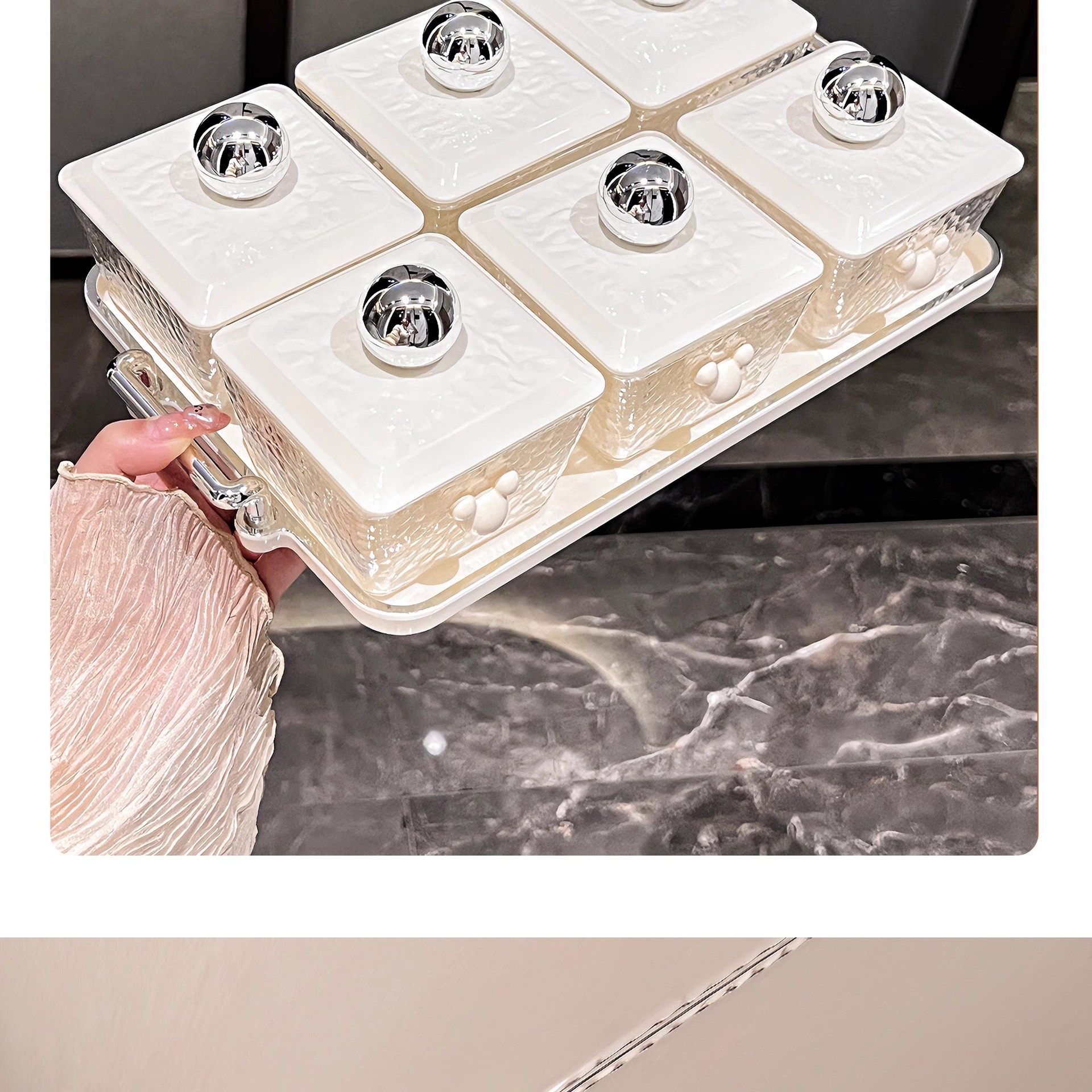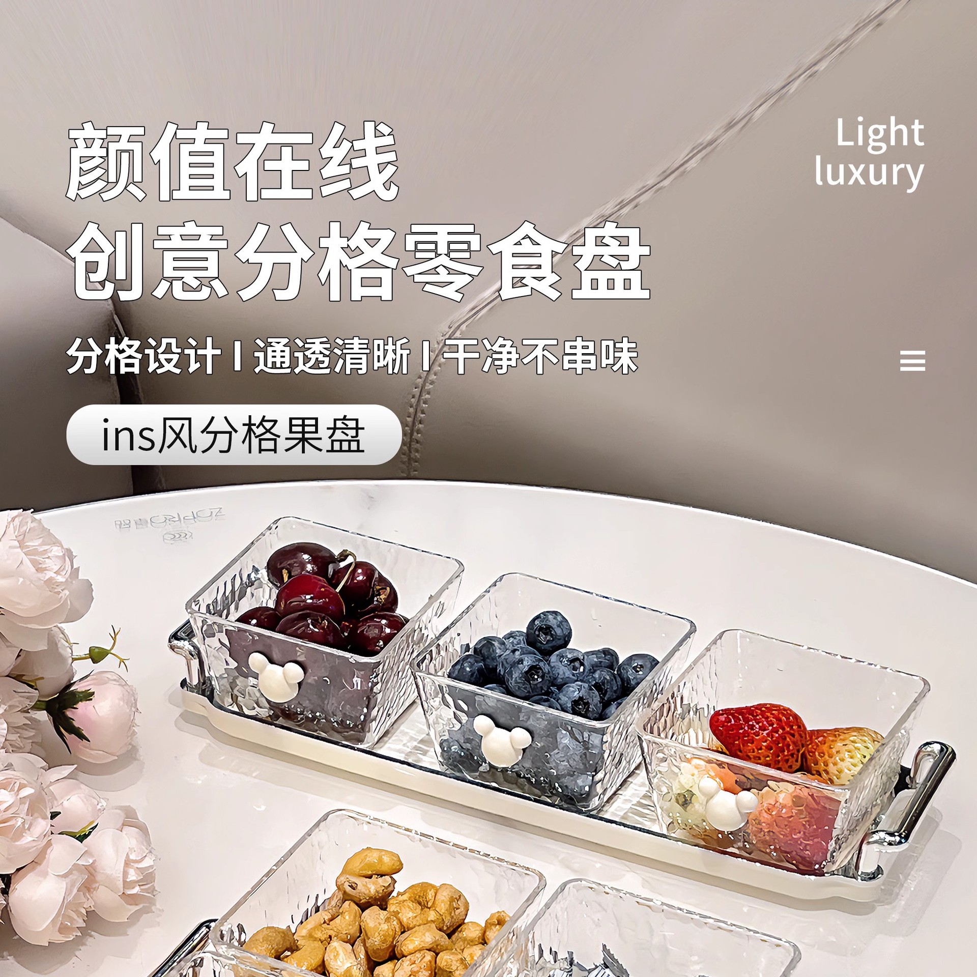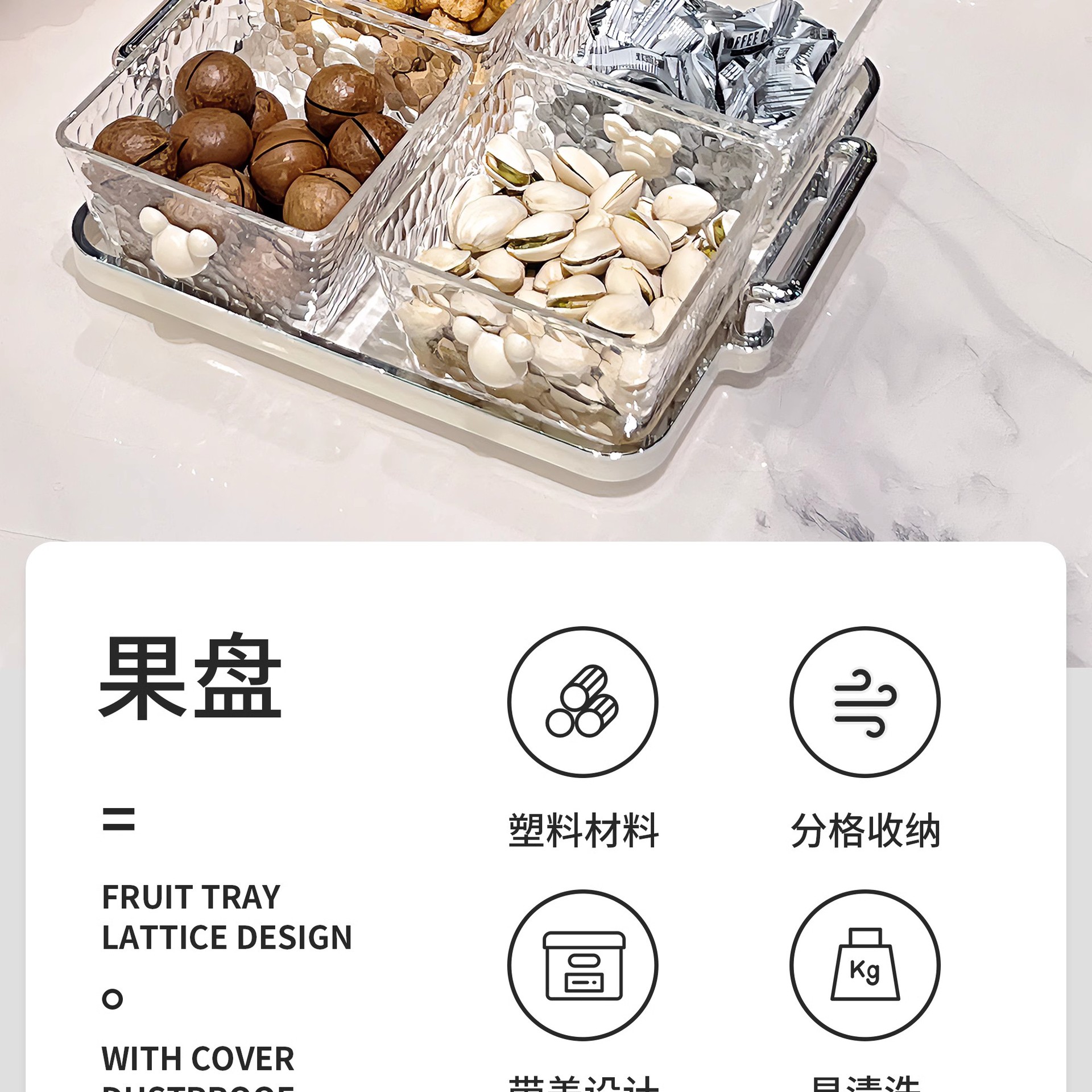 Plato de fruta seca Luz de lujo sala de estar hogar de alta gama caramelo merienda plato compartimiento con tapa KTV fruta merienda plato