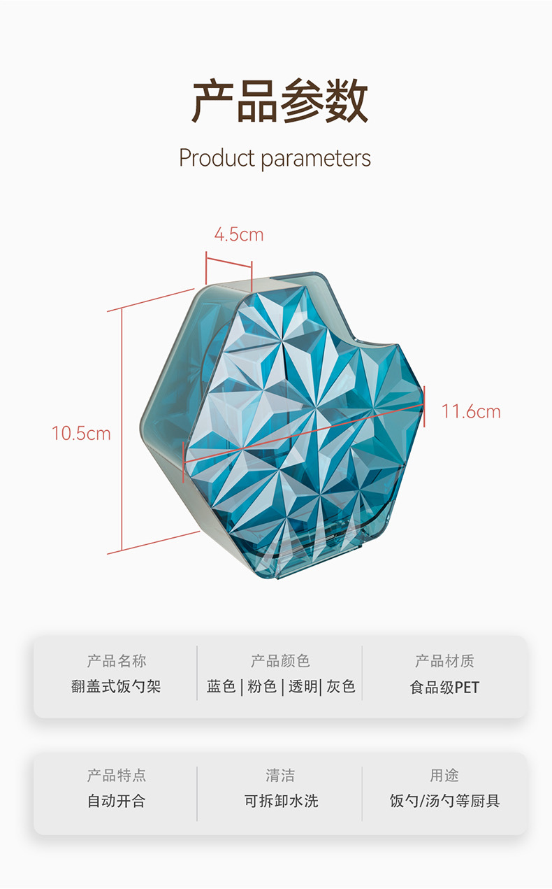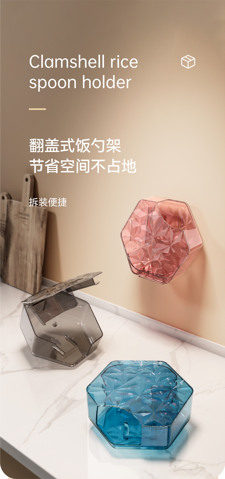Caja de cuchara de arroz de tipo abatible estante de almacenamiento de cuchara de arroz montada en la pared sin ponche Caja de cuchara de arroz de cocina de arroz caja de cuchara de arroz a prueba de polvo y fácil de limpiar