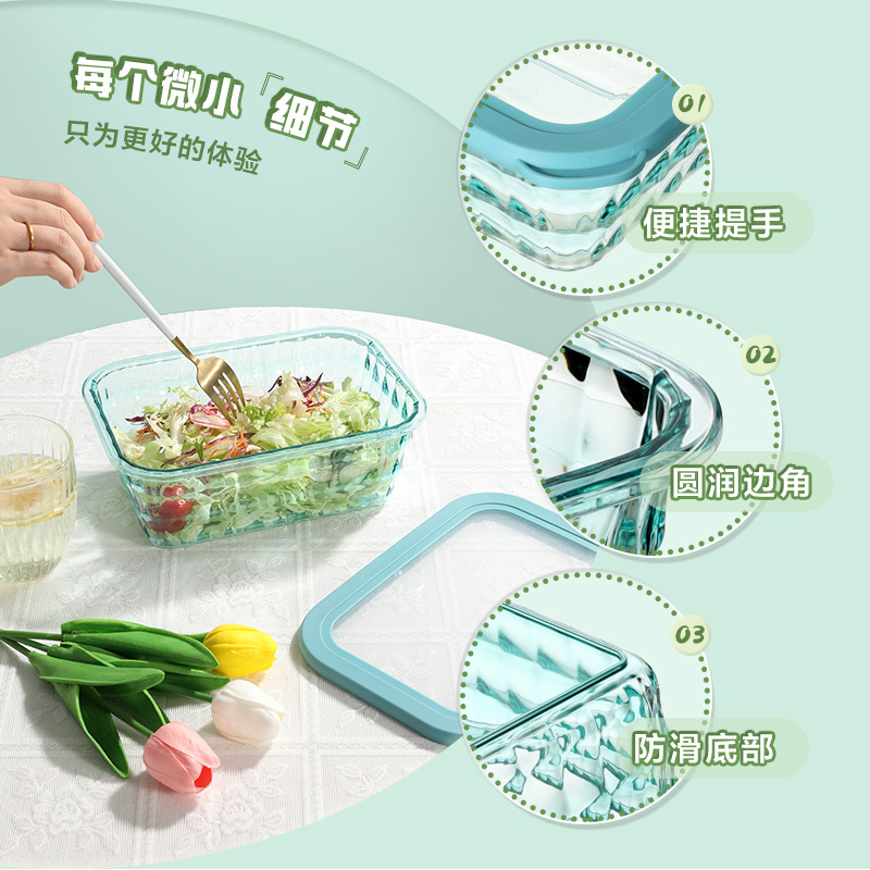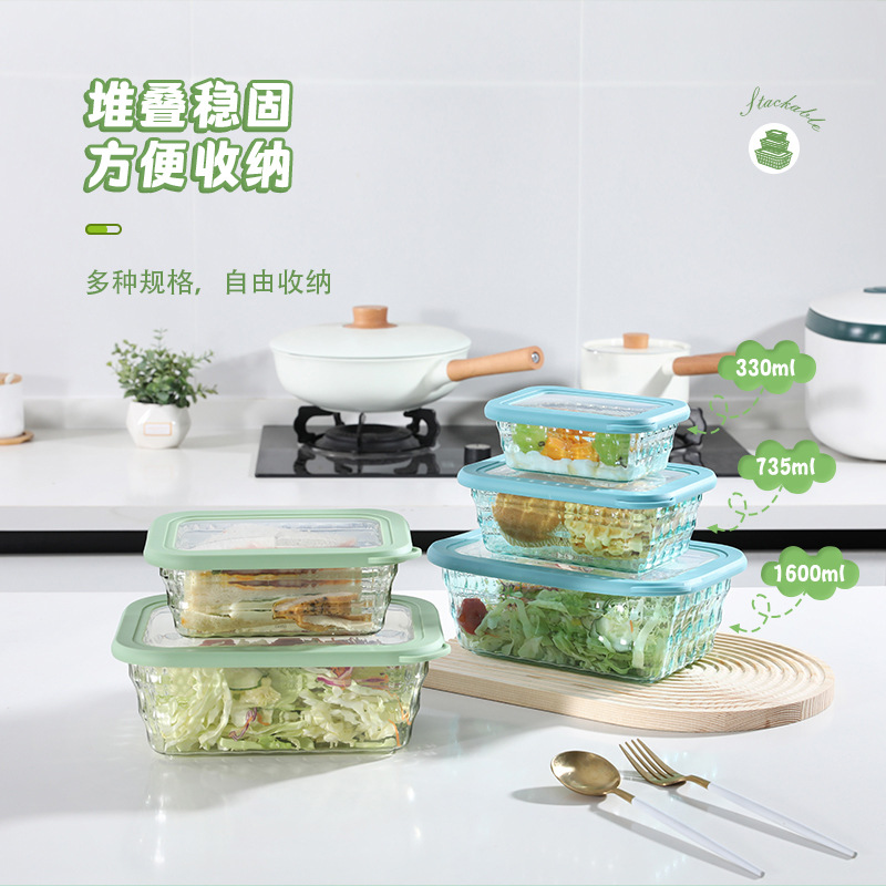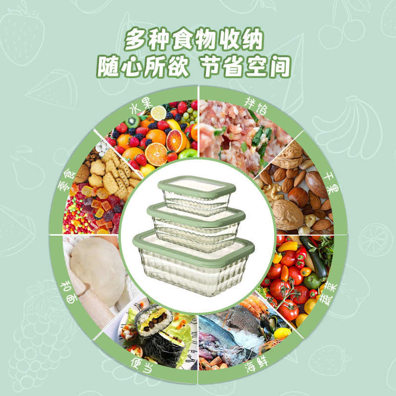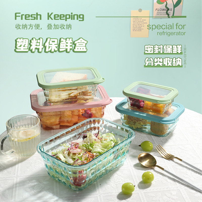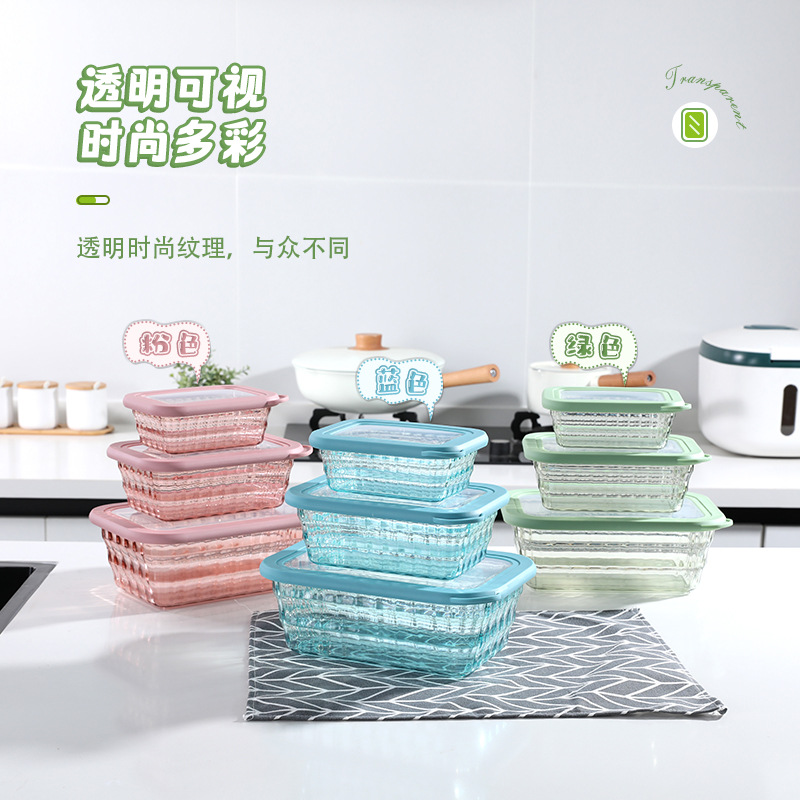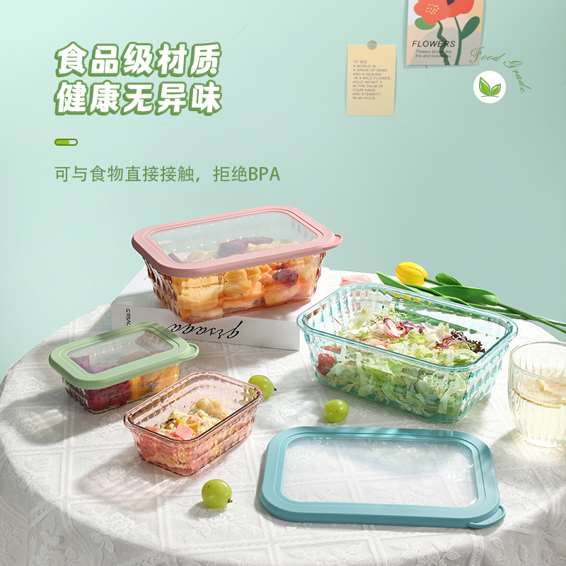 Zhang arco de gran capacidad sellado tazón de fuente de mantenimiento fresco caja de almuerzo de plástico rectangular Estilo nórdico refrigerado fresco caja de almacenamiento de tres piezas conjunto