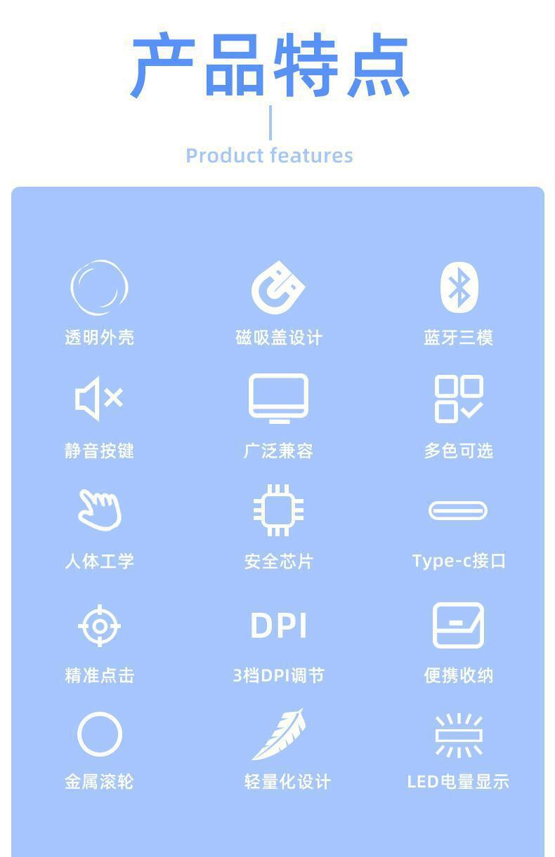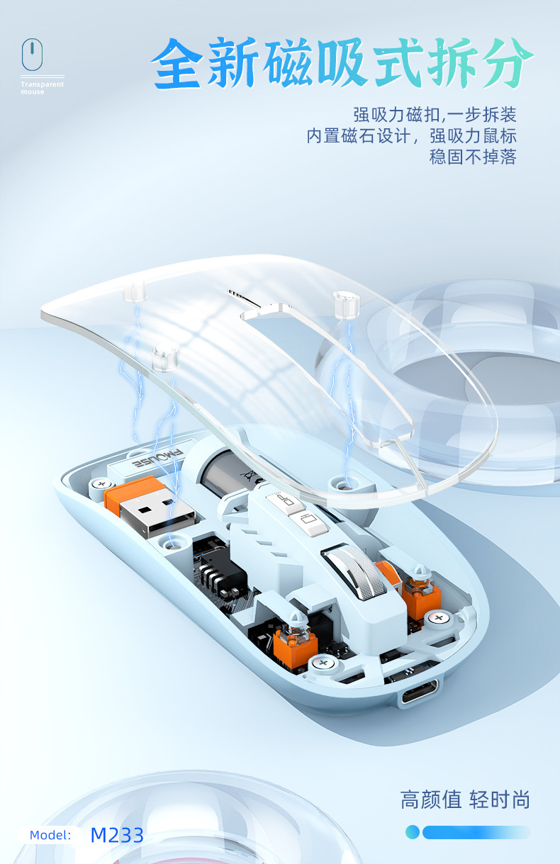 Ratón Bluetooth transparente inalámbrico, delgado y recargable, adecuado para teléfonos móviles Apple Huawei, computadora portátil, oficina de tres modos