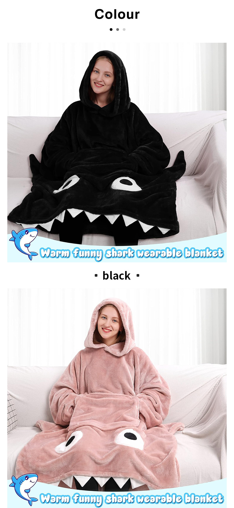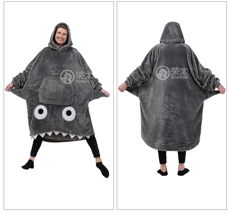 Pijamas sueltos de dibujos animados más tamaño manto ropa perezosa tiburón Bolsillo grande ropa perezosa manta perezosa pareja niños Pijamas
