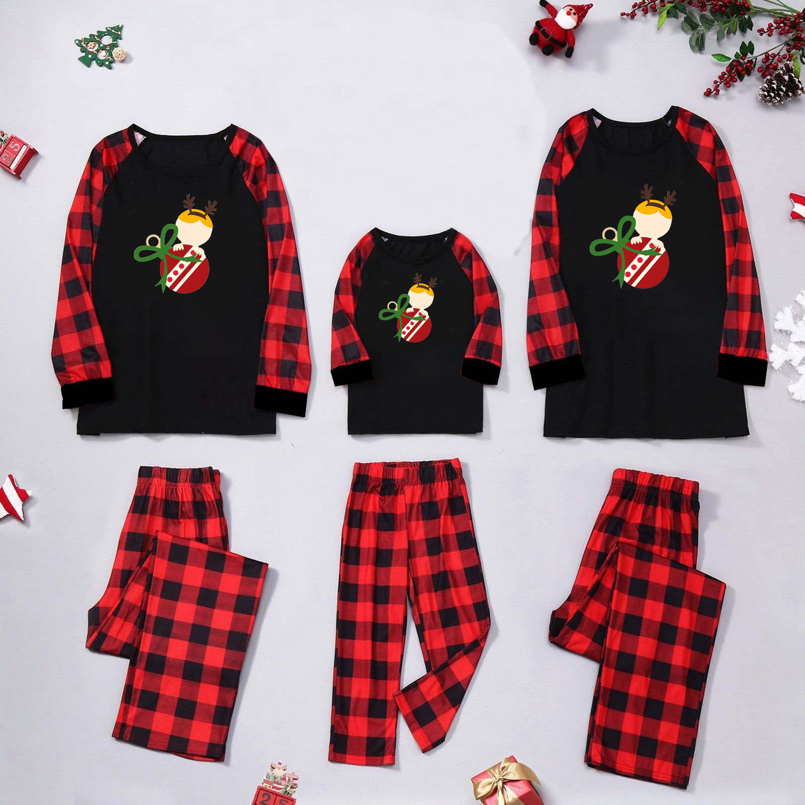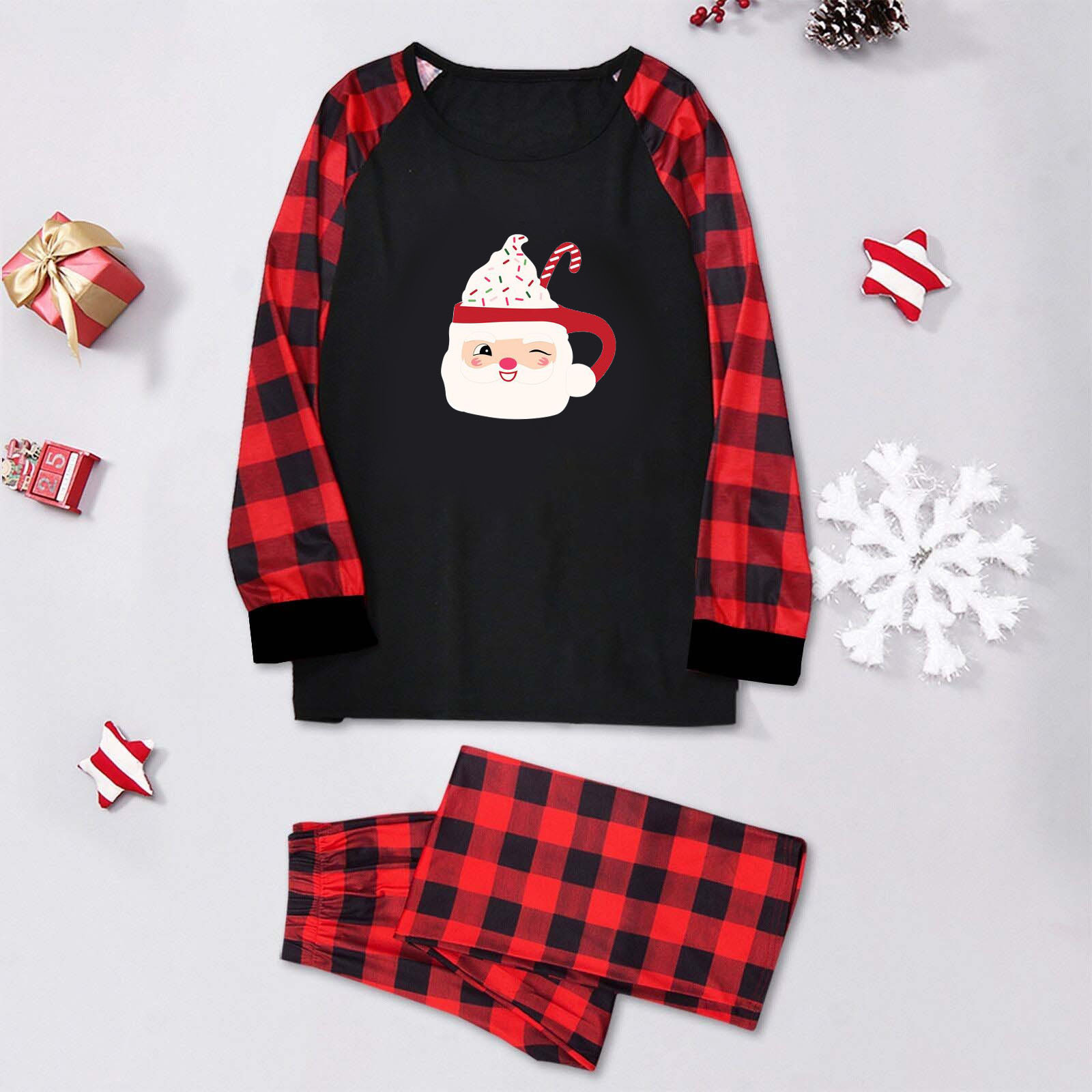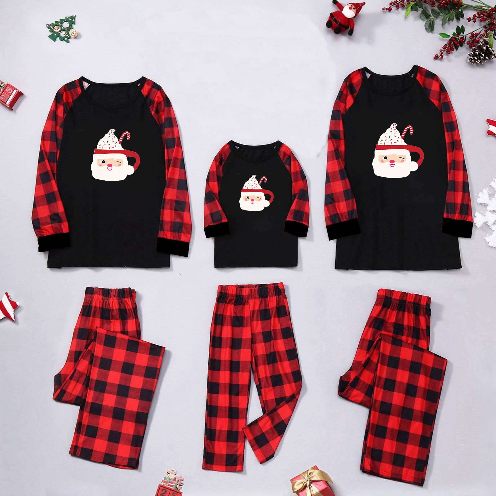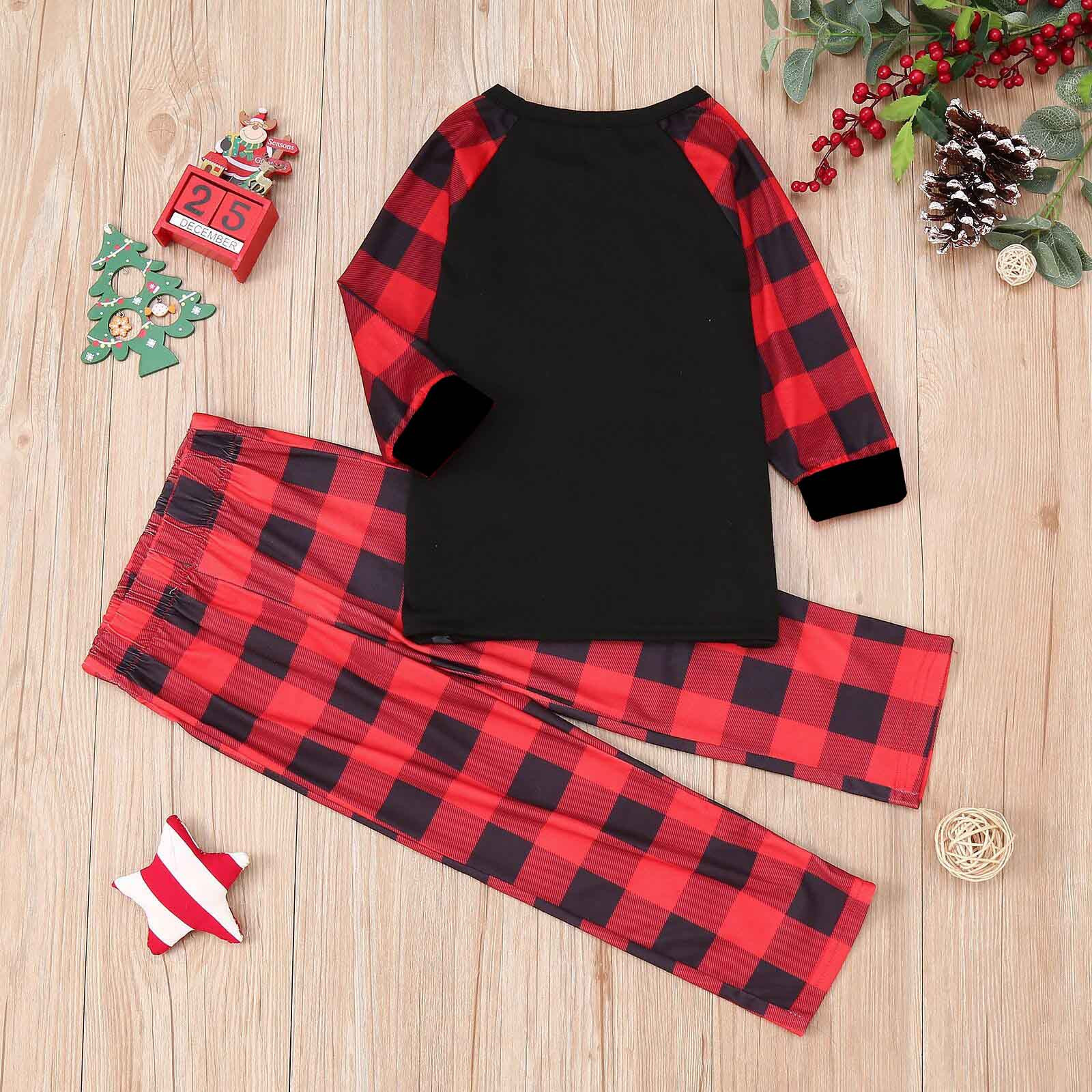 Amazon popular europeo y americano de Navidad de manga larga pijamas desgaste del hogar impreso traje Plaid pantalones padre-niño desgaste hogar
