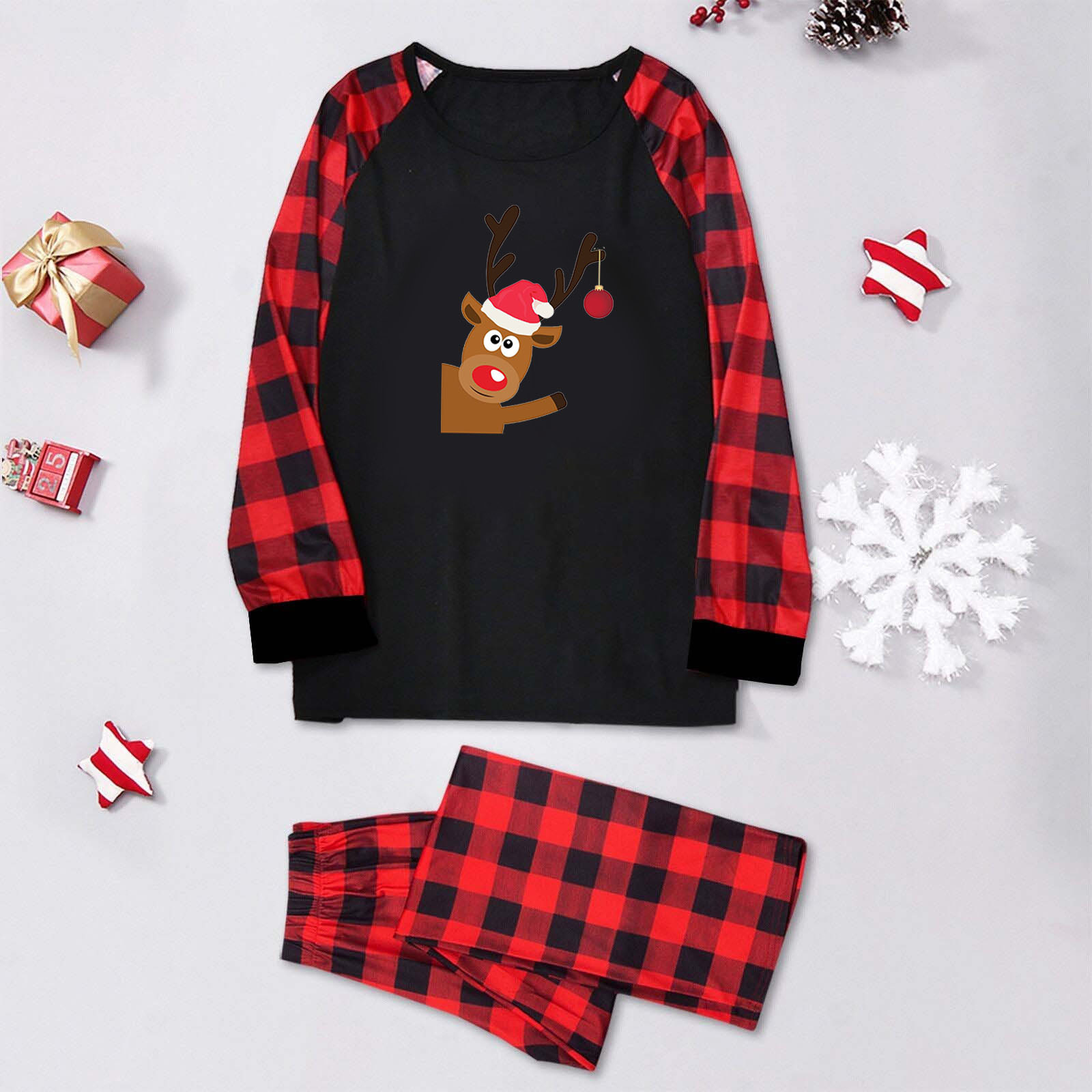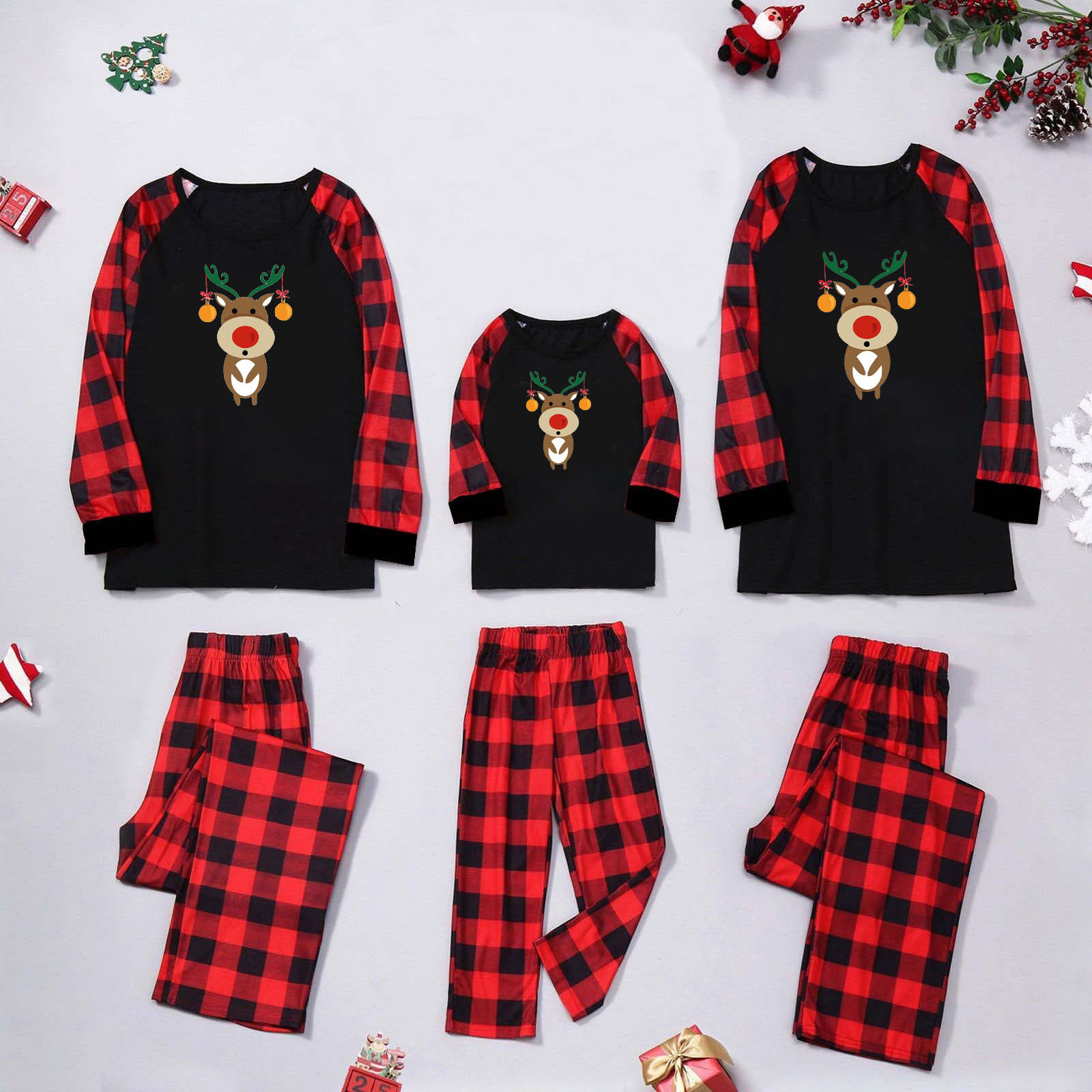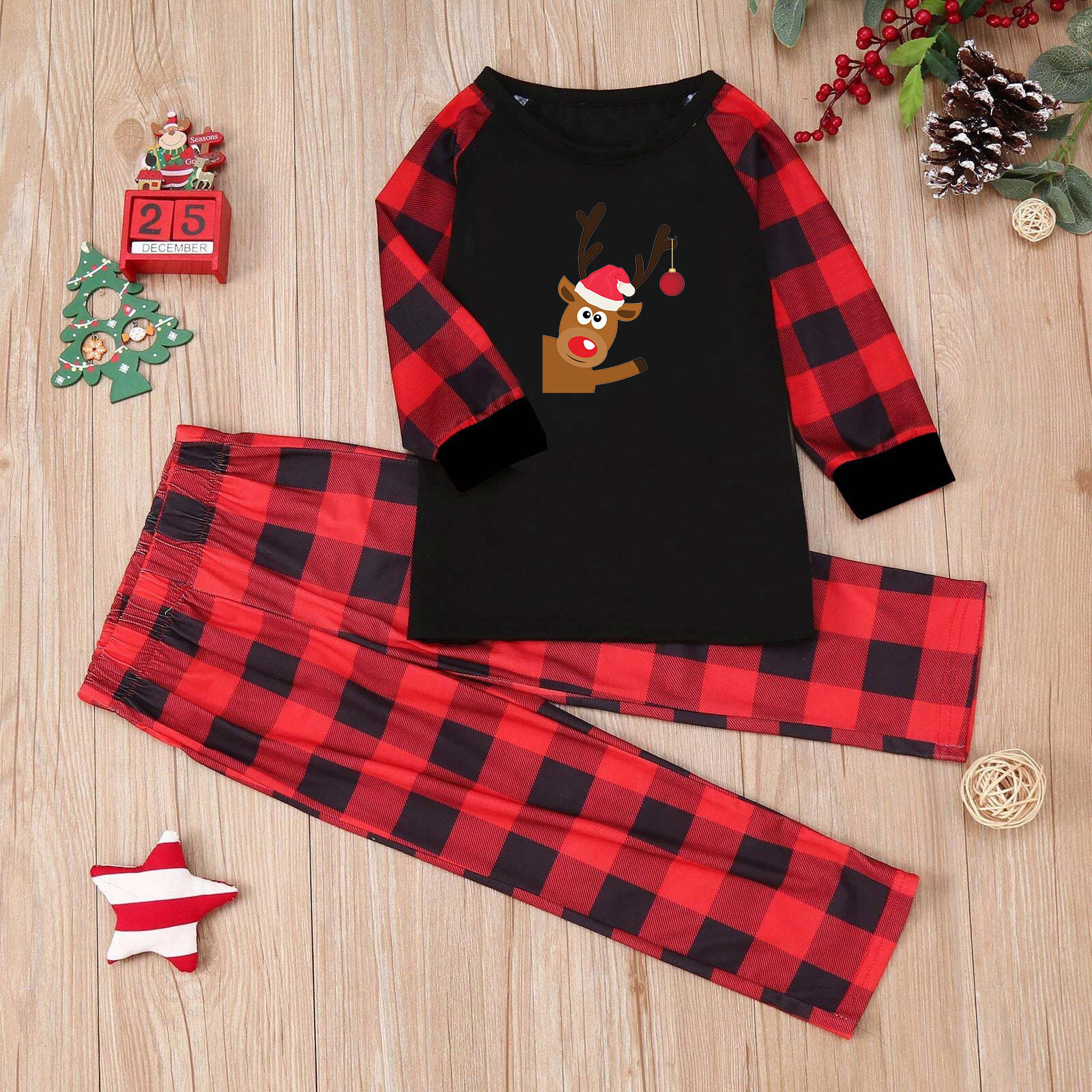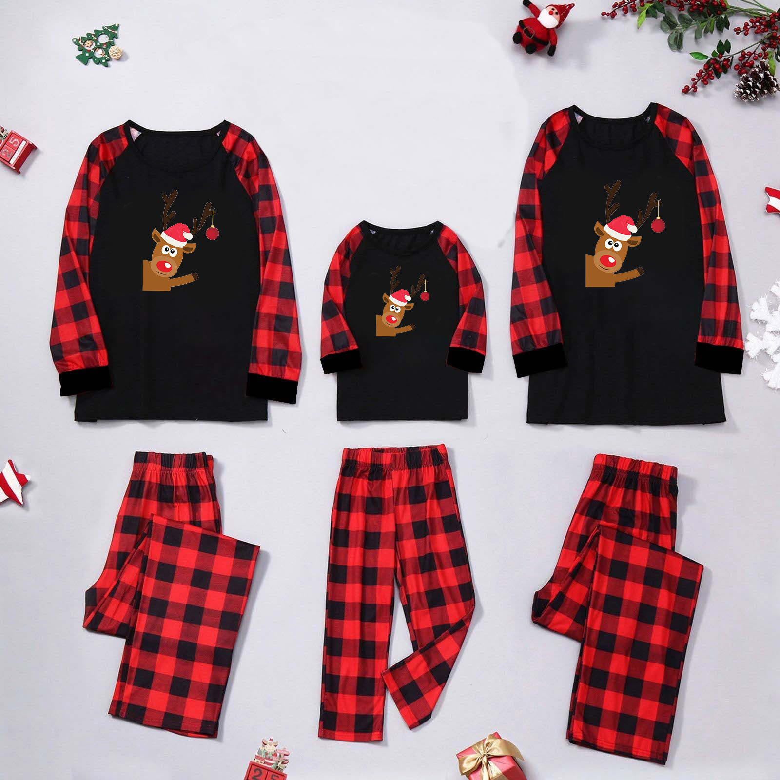 Amazon popular europeo y americano de Navidad de manga larga pijamas desgaste del hogar impreso traje Plaid pantalones padre-niño desgaste hogar
