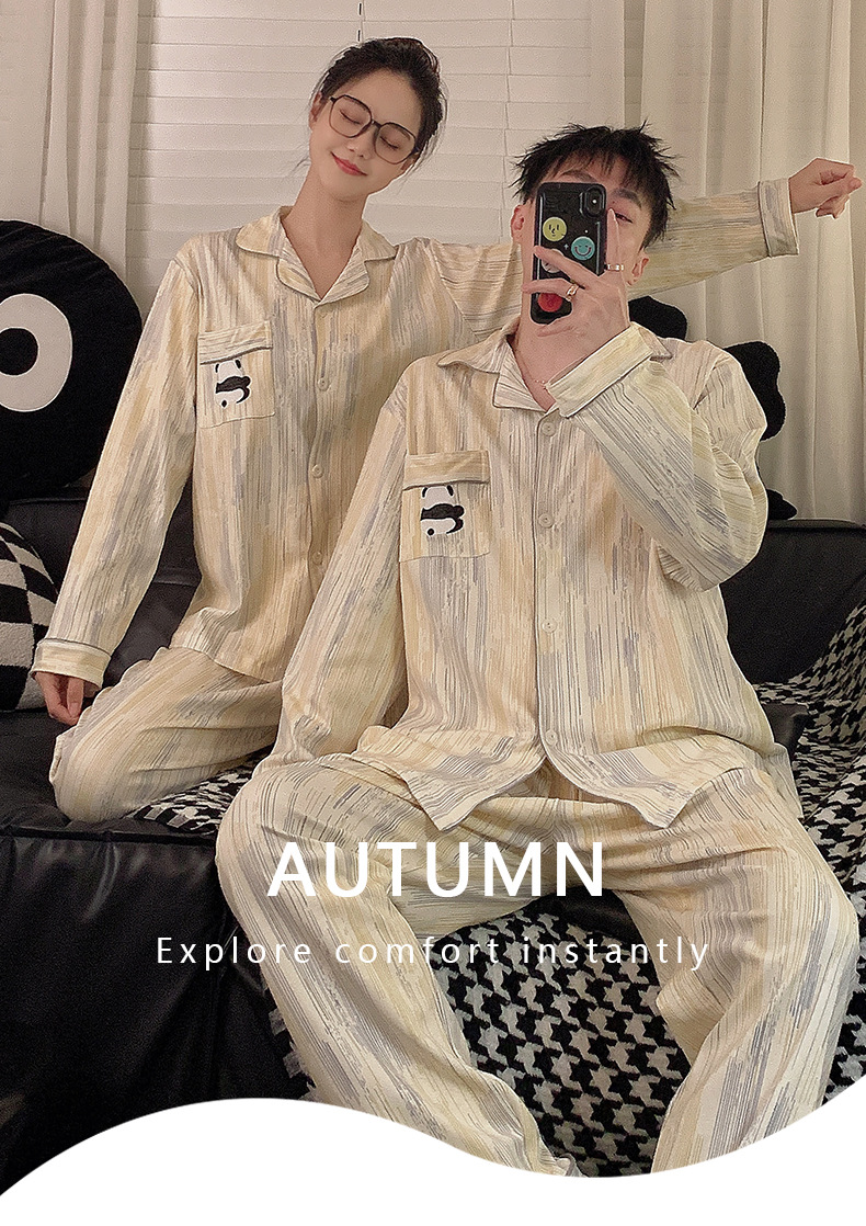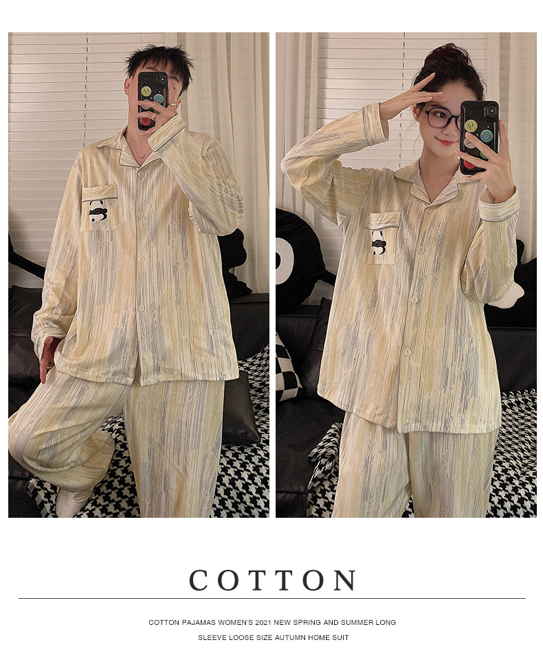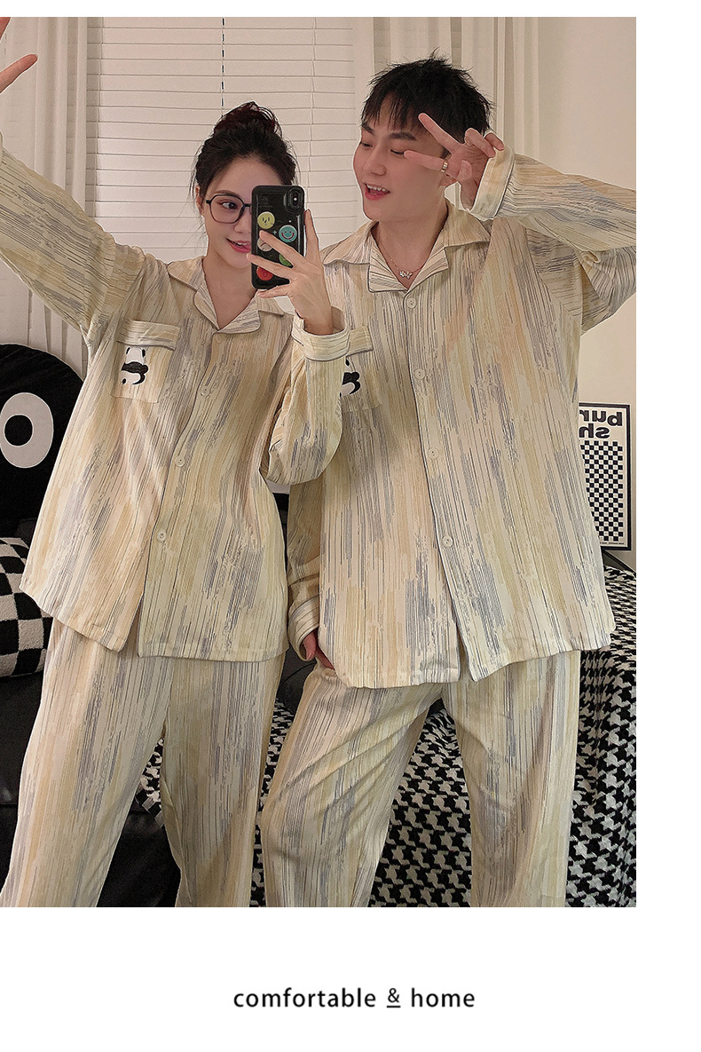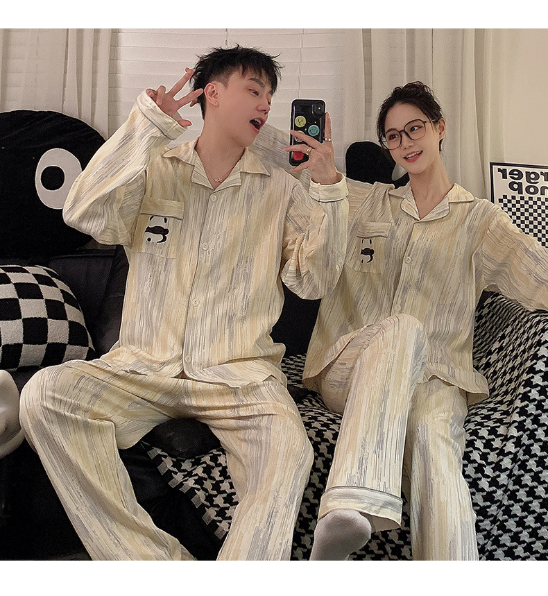 [Exposición de pintura soleada] pijamas de pareja para hombres y mujeres de verano de manga larga de primavera y otoño al aire libre más el tamaño estrella ropa para el hogar invierno