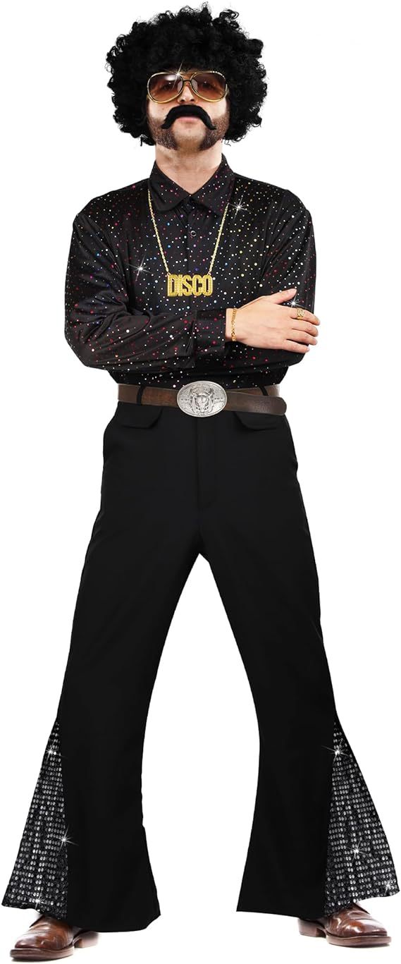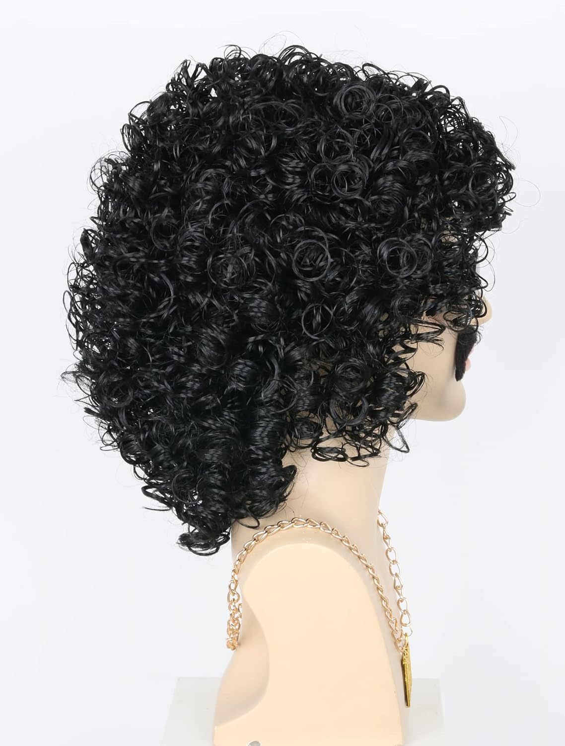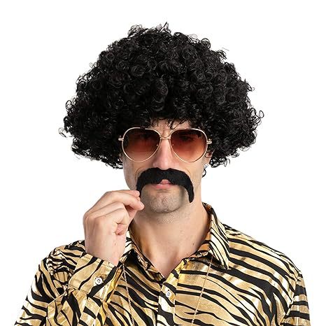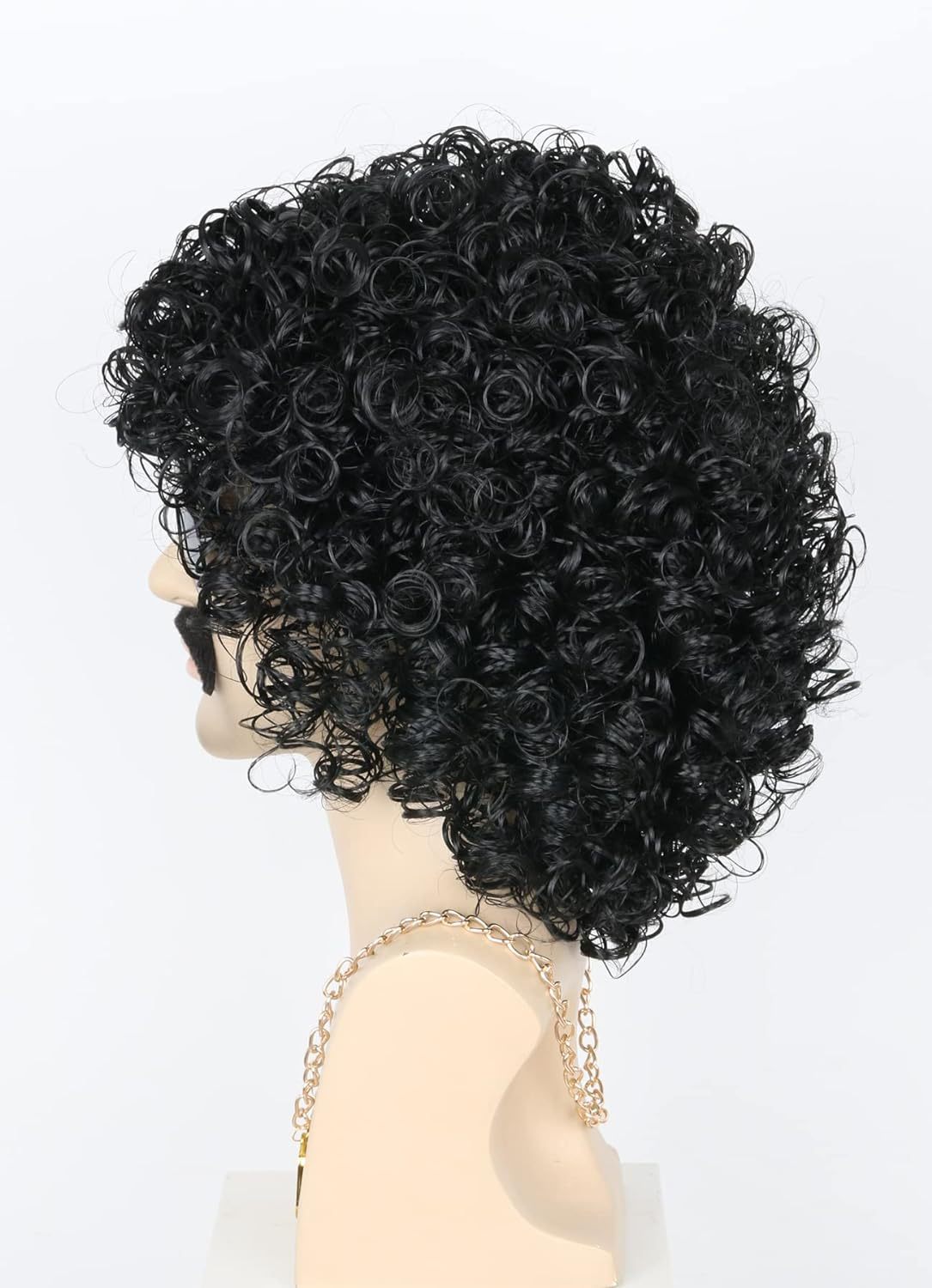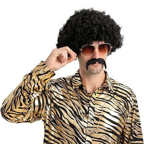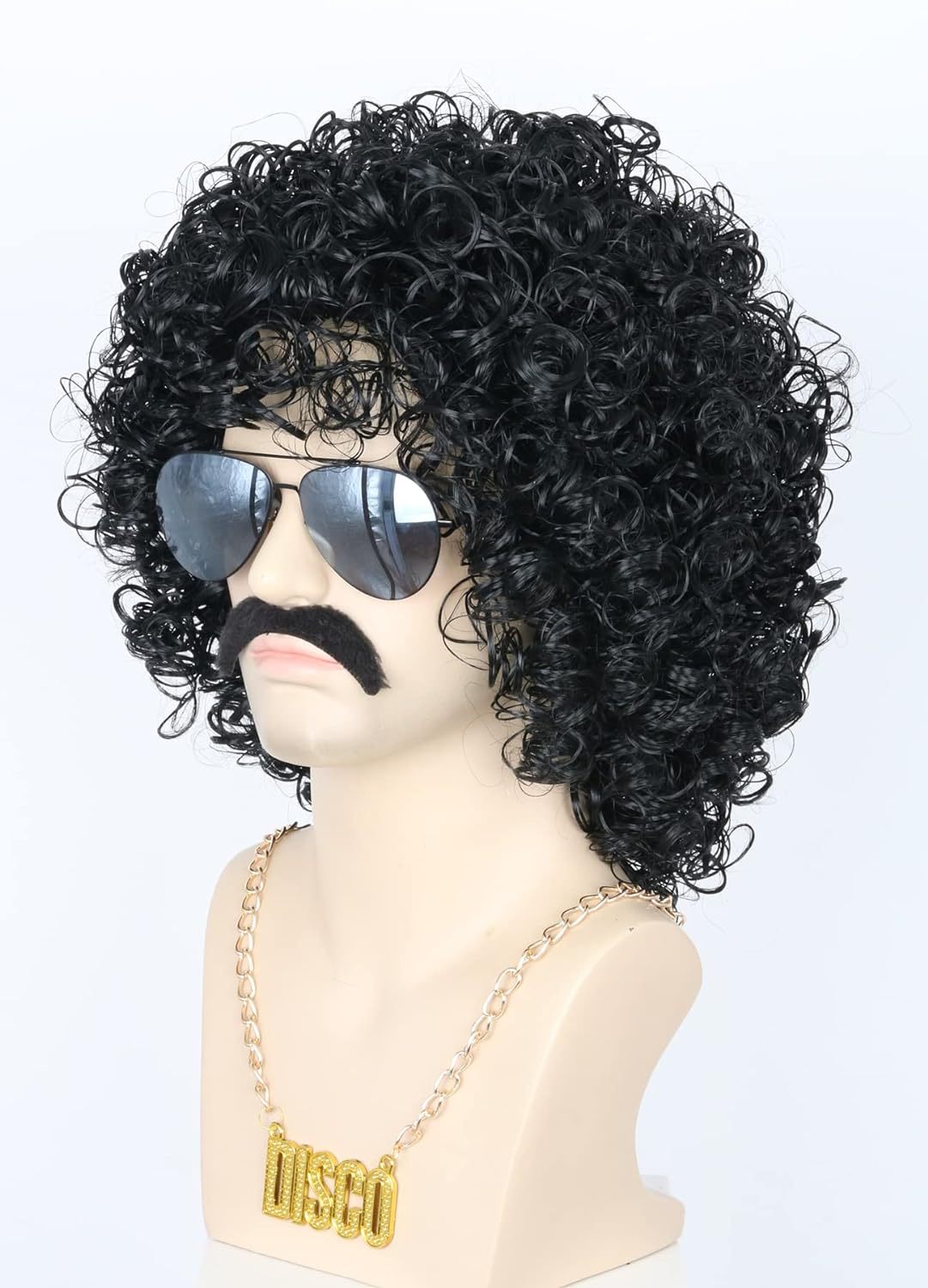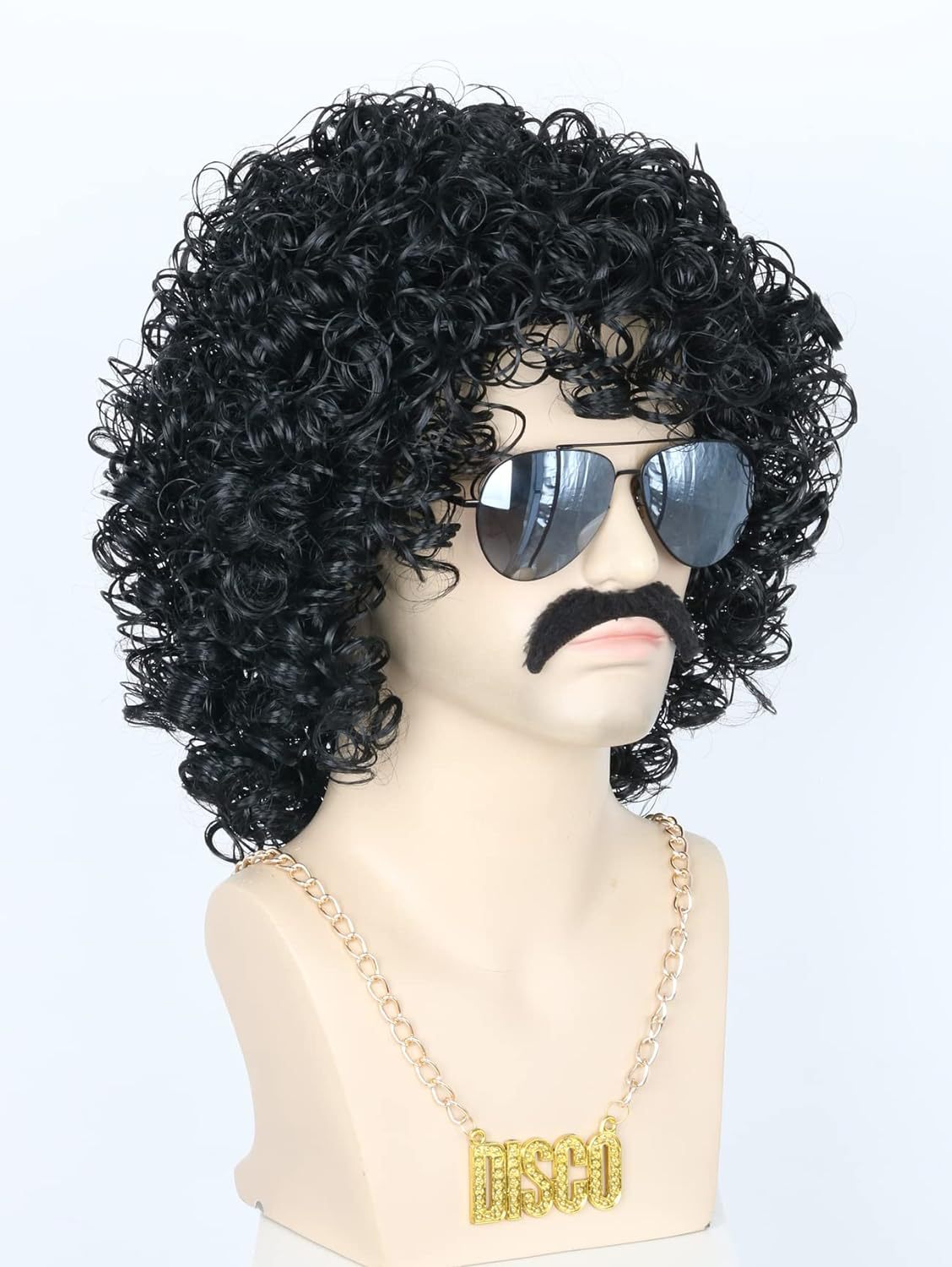 506070s peluca Africana disco hippie traje accesorios traje, negro moda collar gafas barba