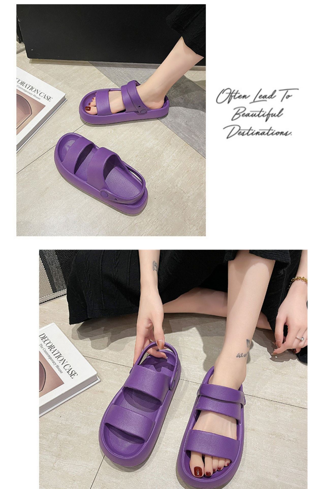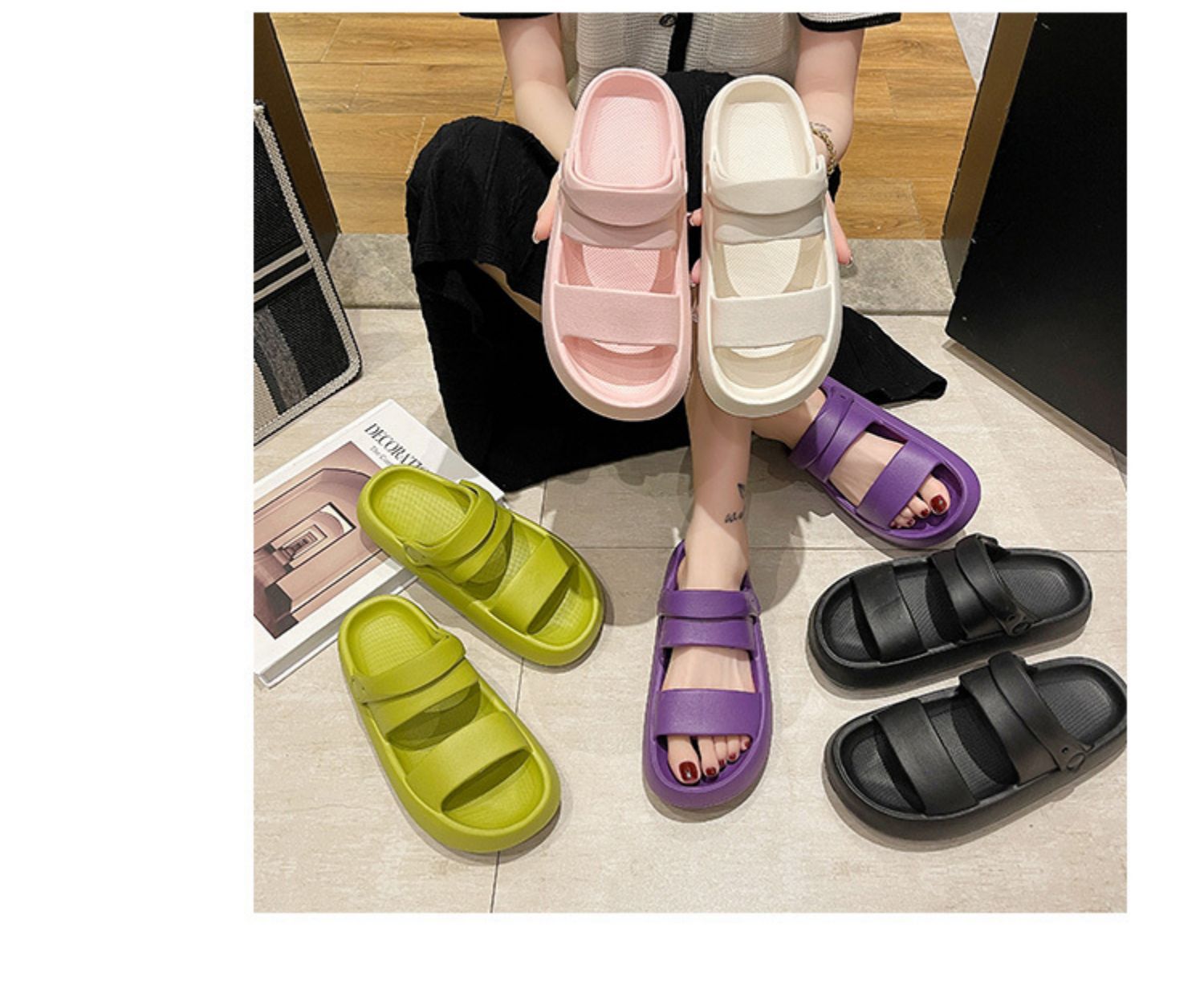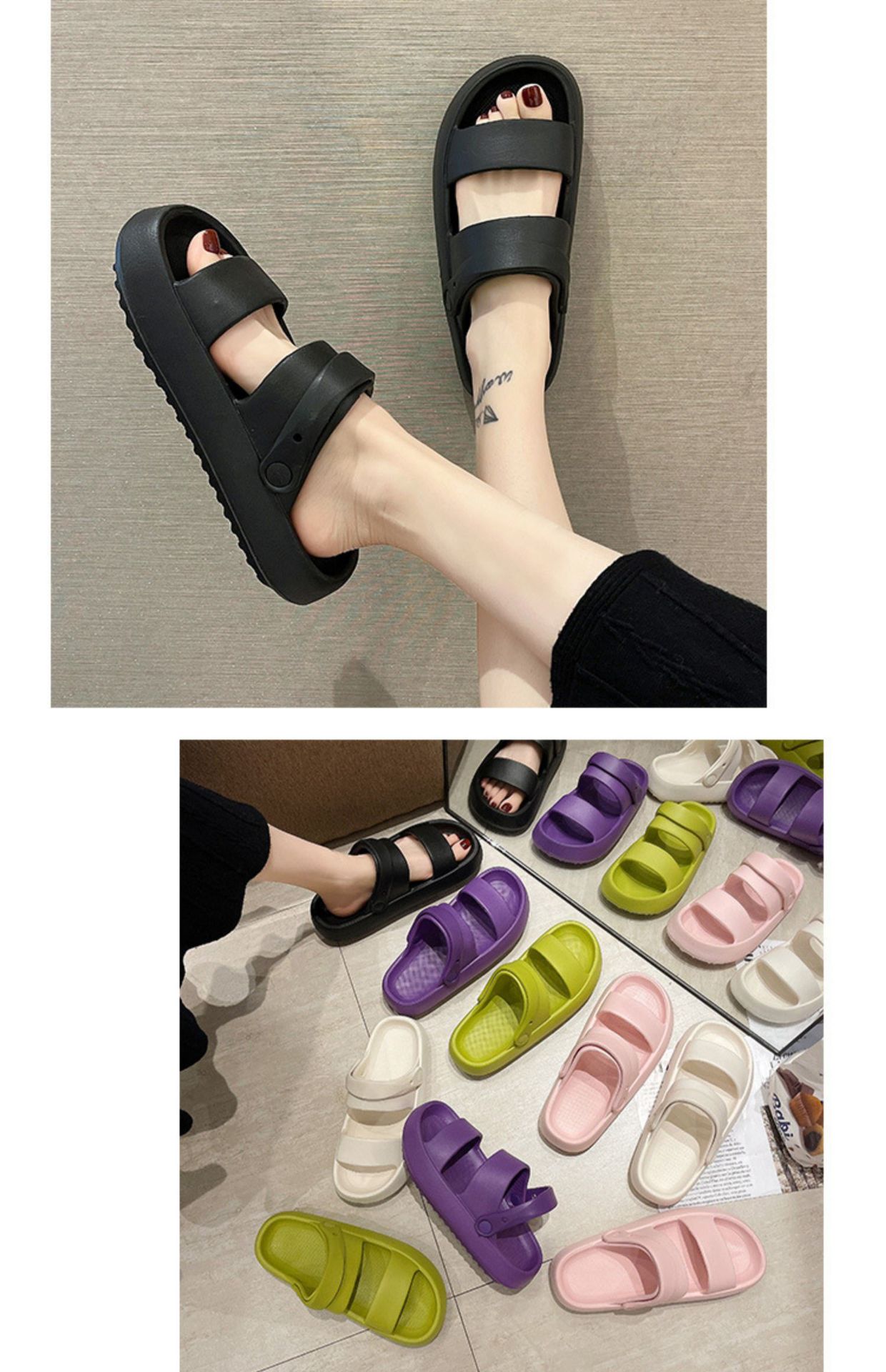 Sandalias y pantuflas EVA de doble tira, plataforma antideslizante, desodorantes, uso interior y exterior