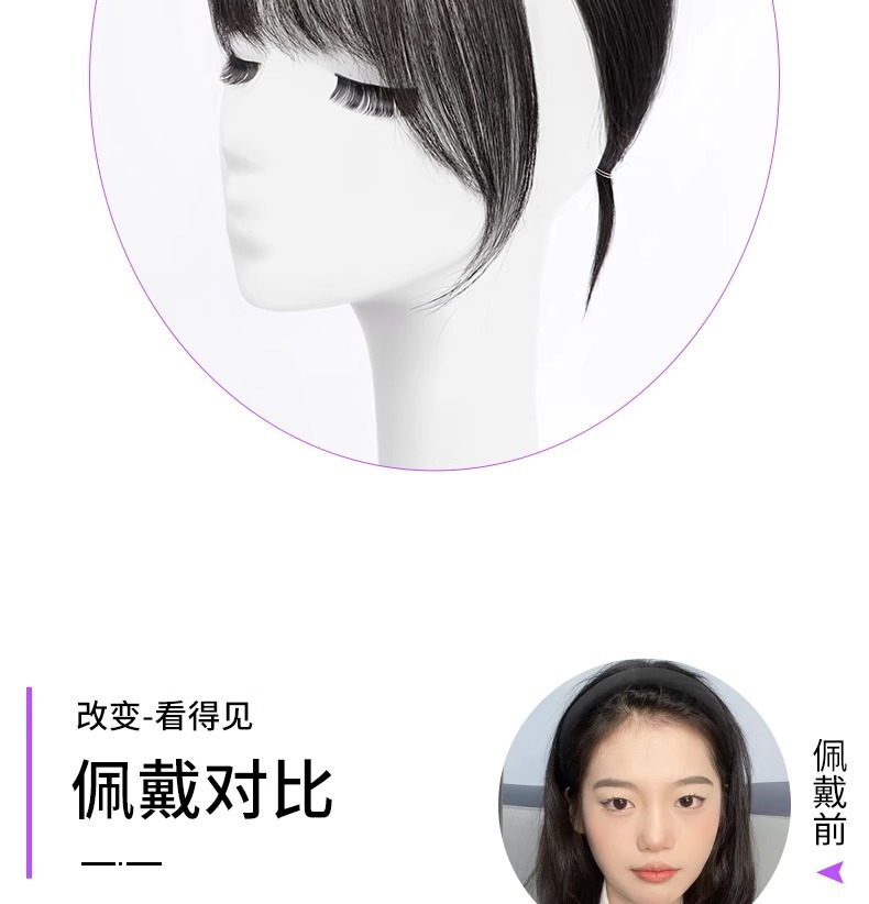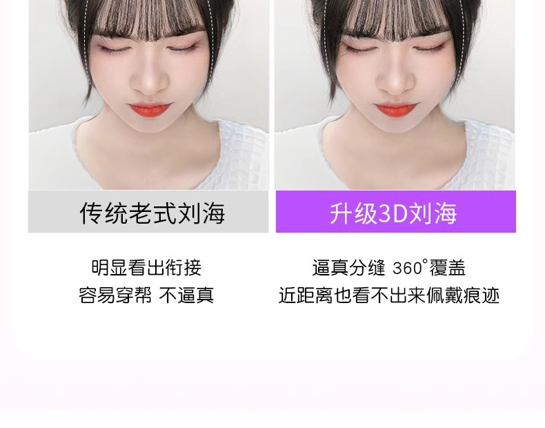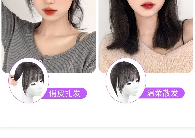 Flequillo de aire 3D estilo francés, pelo sintético natural en la frente para cubrir las canas, postizo de mujer para cubrir la calvicie y pieza de reemplazo de cabello.