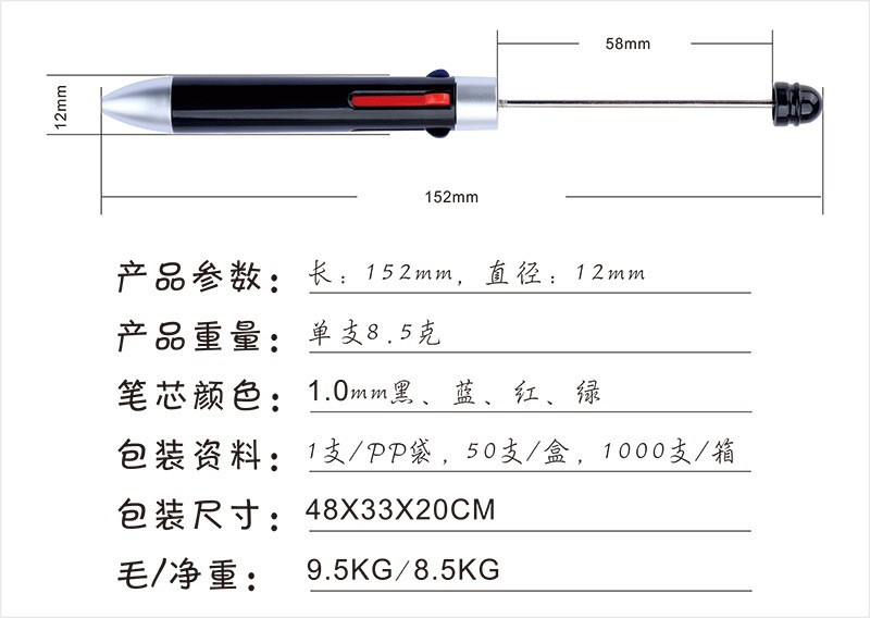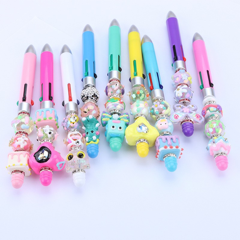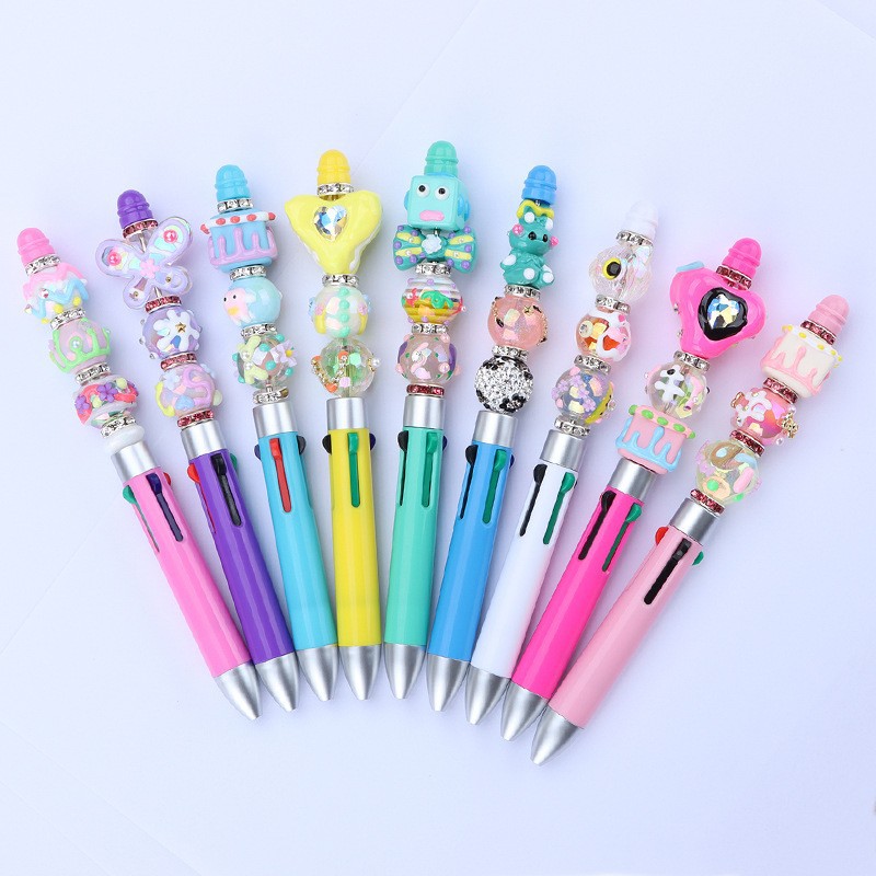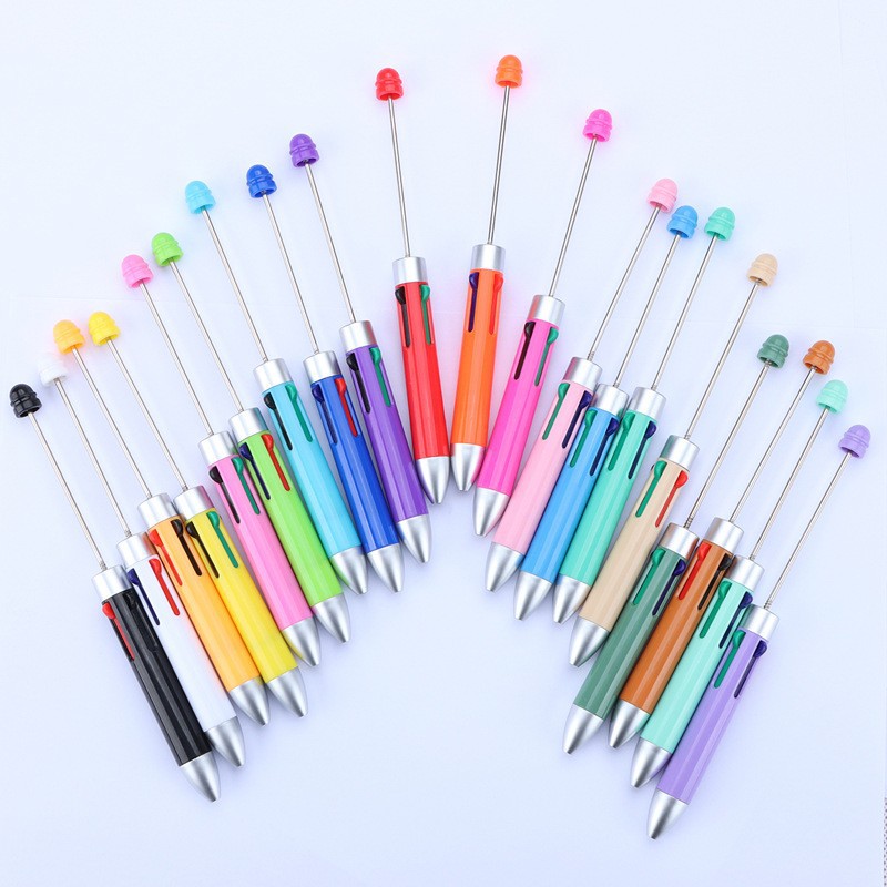 DIY creativo mini negocio de cuatro colores con cuentas de la pluma en stock al por mayor lindo rompecabezas multi-color de la joyería bolígrafo con cuentas