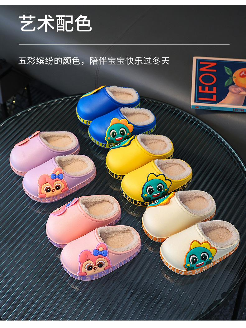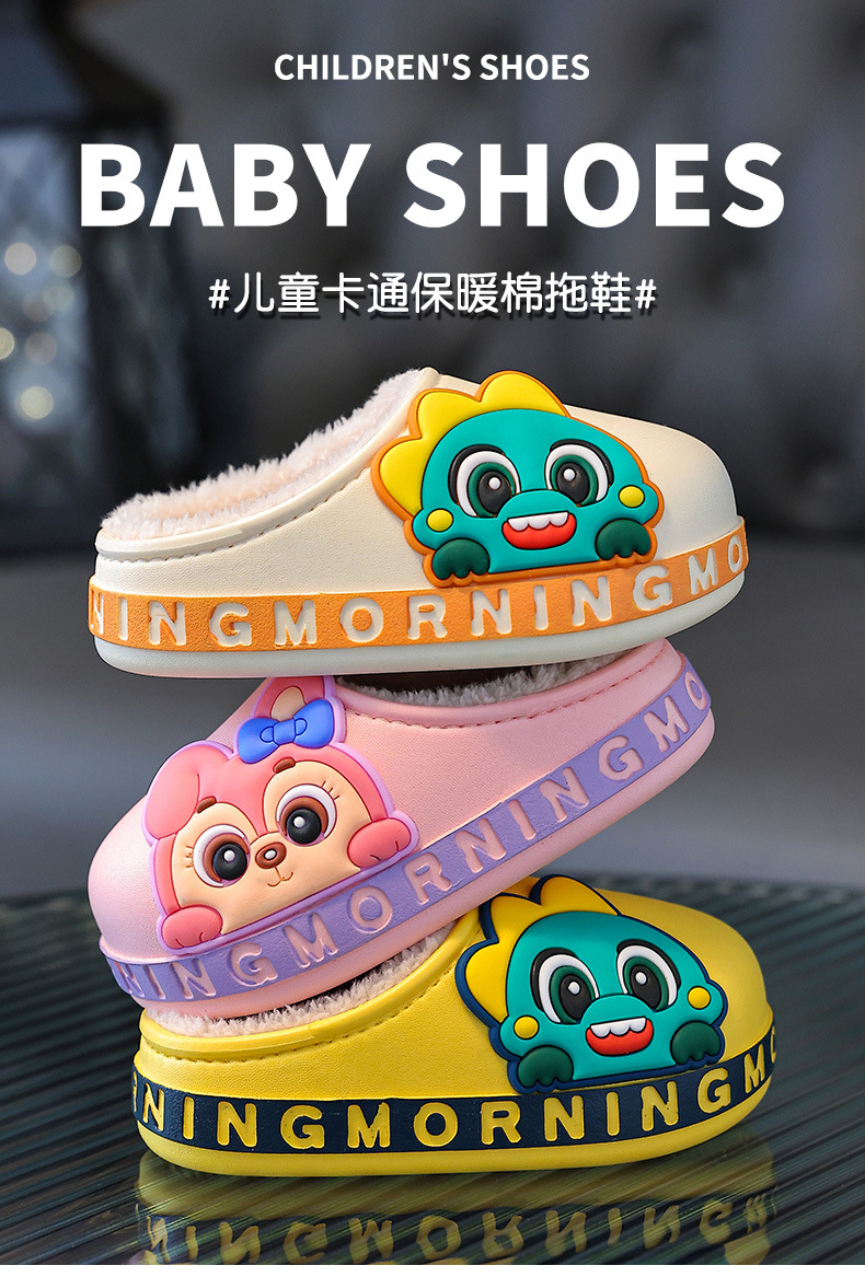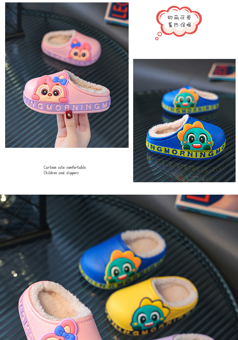 Zapatillas de algodón para niños otoño y invierno calentamiento interior casero zapatos de algodón antideslizantes de dibujos animados zapatos de algodón para niñas