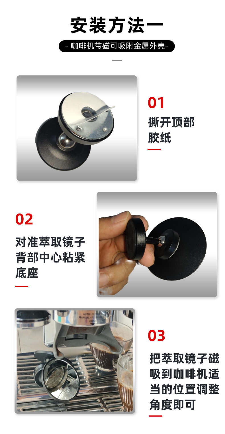 Ángulo de visión de extracción de café espejo sin fondo mango reflector multidireccional