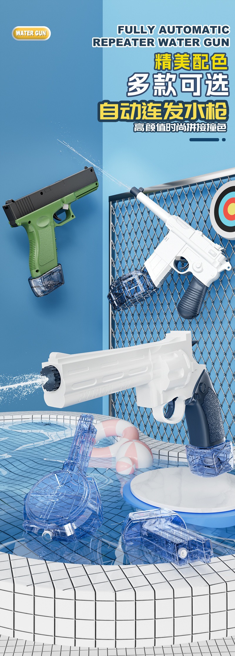 Nuevo revólver transfronterizo pistola de agua continuo eléctrico al aire libre Glock jugando en la playa pistola de agua pistola de agua para niños juguete