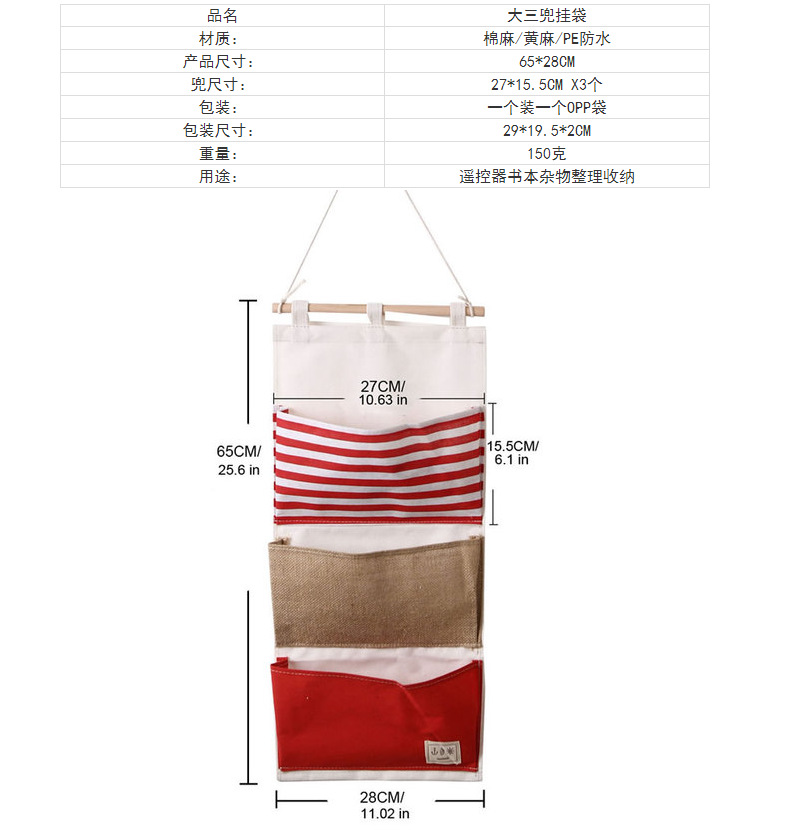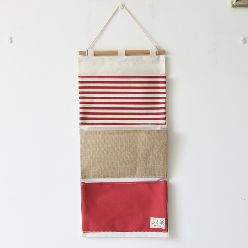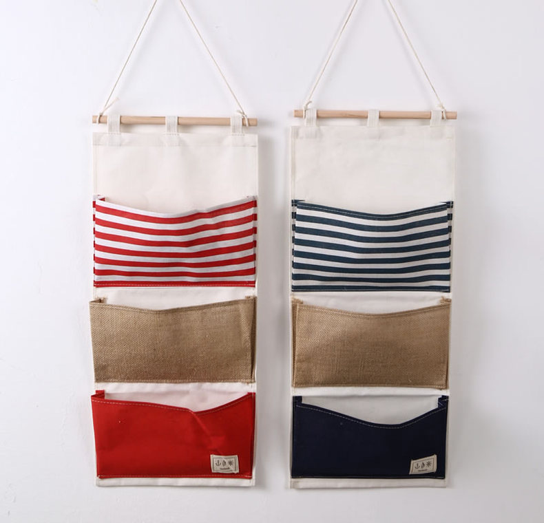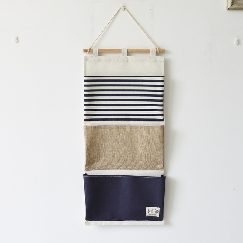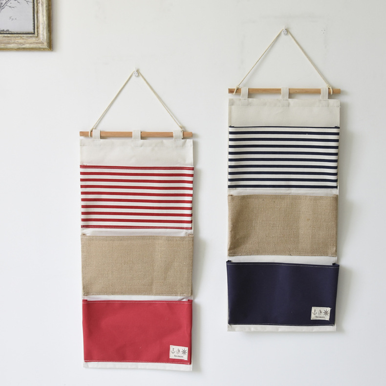 ZAKKA multifuncional bolsa de almacenamiento de costura a rayas 3 bolsillos bolsa colgante de almacenamiento/bolsa de pared 0631