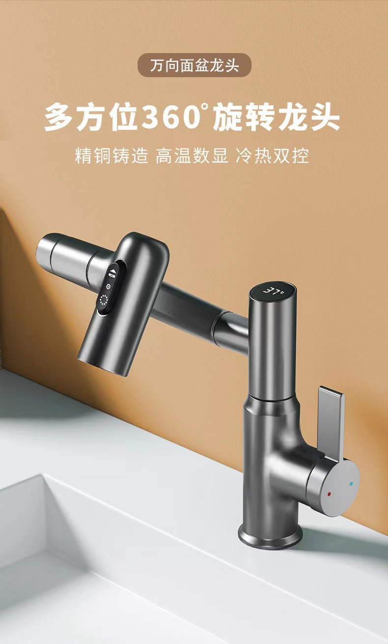 Brazo mecánico de latón pantalla digital baño giratorio raspado lavable giratorio Luz de lujo baño lavabo Lucky CAT grifo