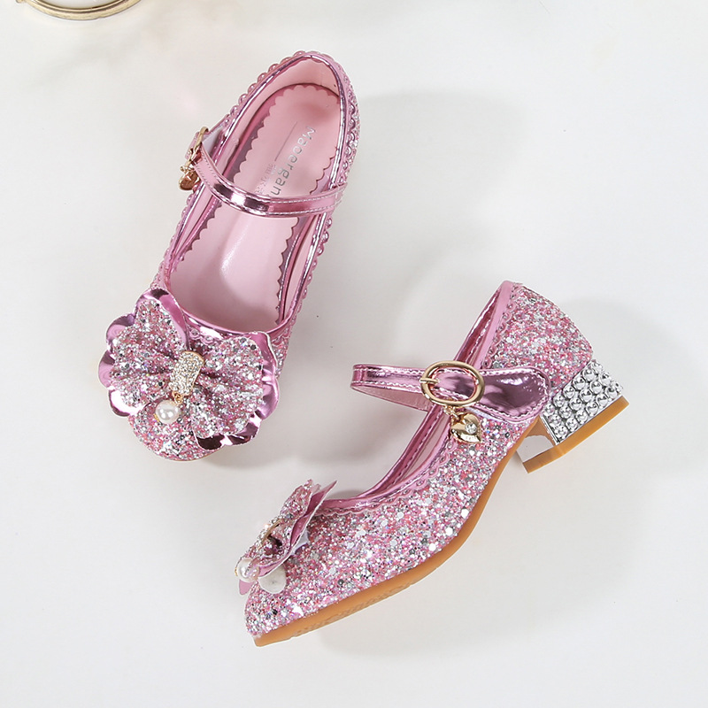 Zapatos de princesa Maergang para niñas, nuevos zapatos de tacón alto con lazo, zapatos de actuación transfronterizos para niñas medianas, zapatos de otoño para niñas pequeñas