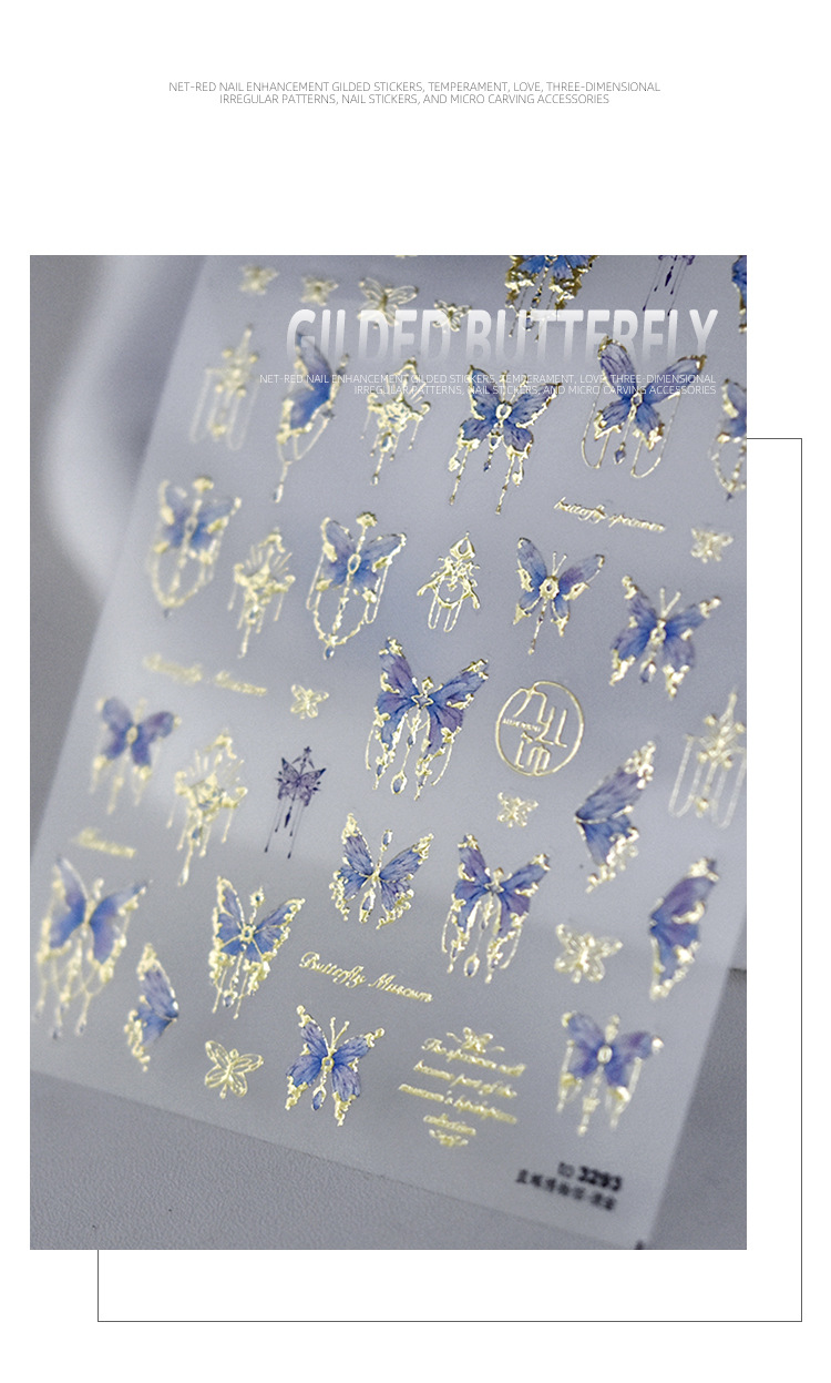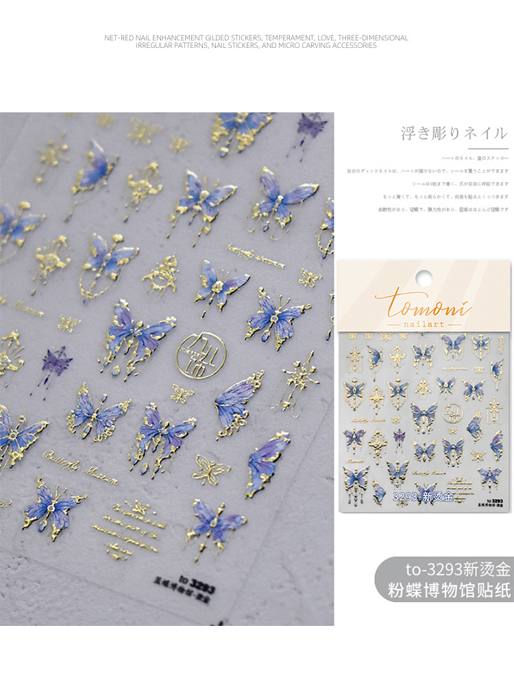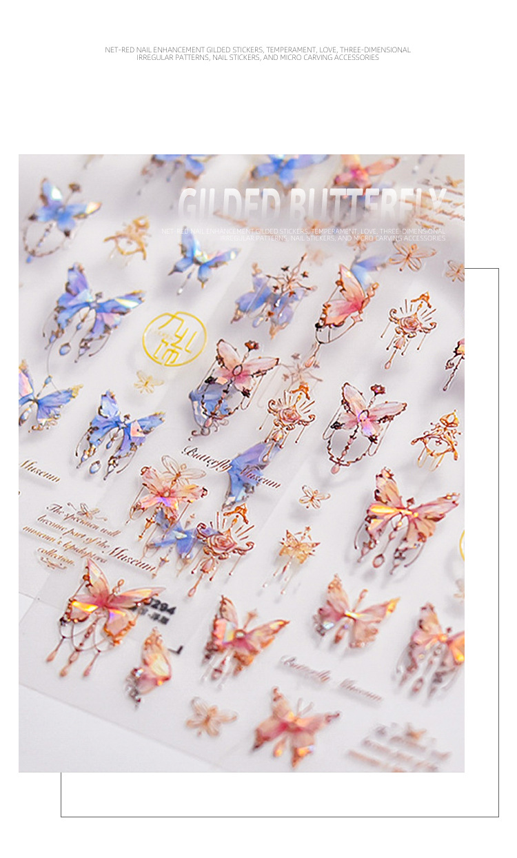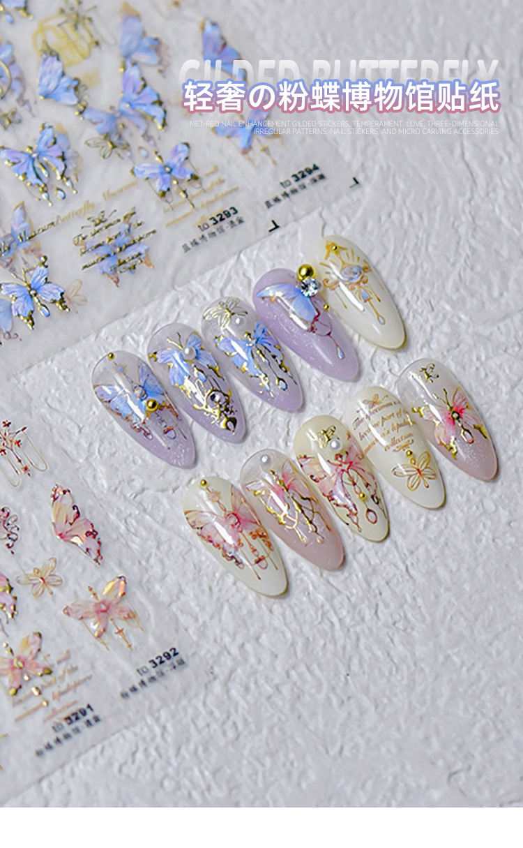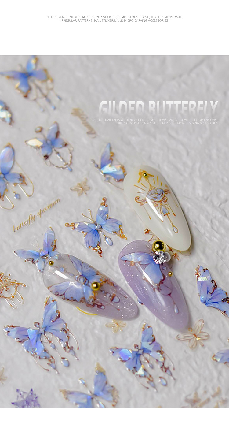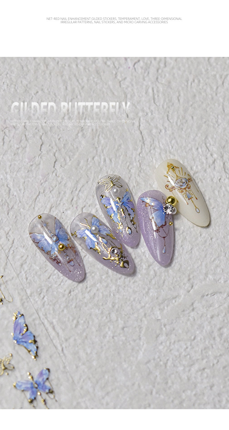 Pegatinas de uñas doradas populares pegatinas de uñas lindas japonesas alivio de fábrica mariposa tridimensional Shell luz Rosa mariposa al por mayor