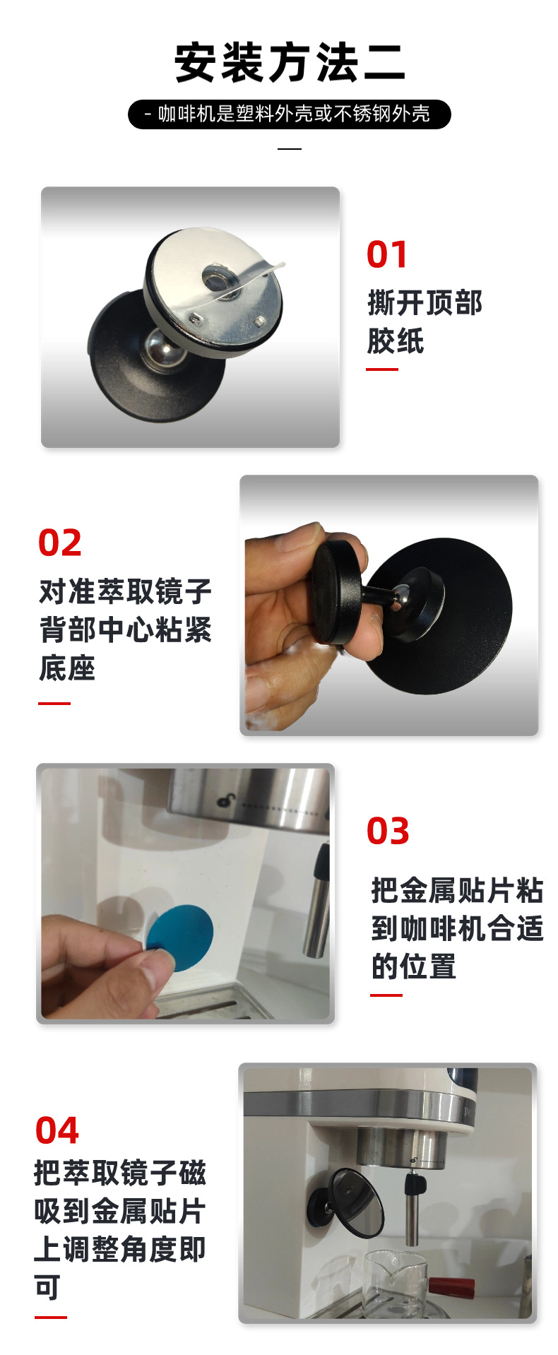 Espejo de observación de extracción Máquina de café italiana mango sin fondo grasa concentrada reflectante espejo pequeño espejo magnético ajustable