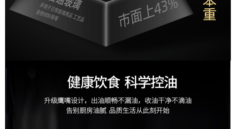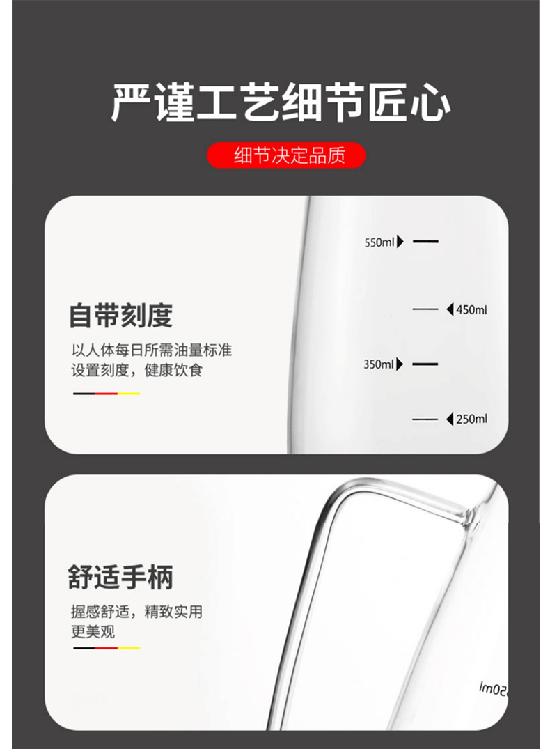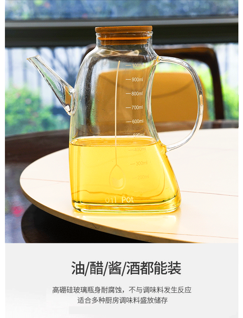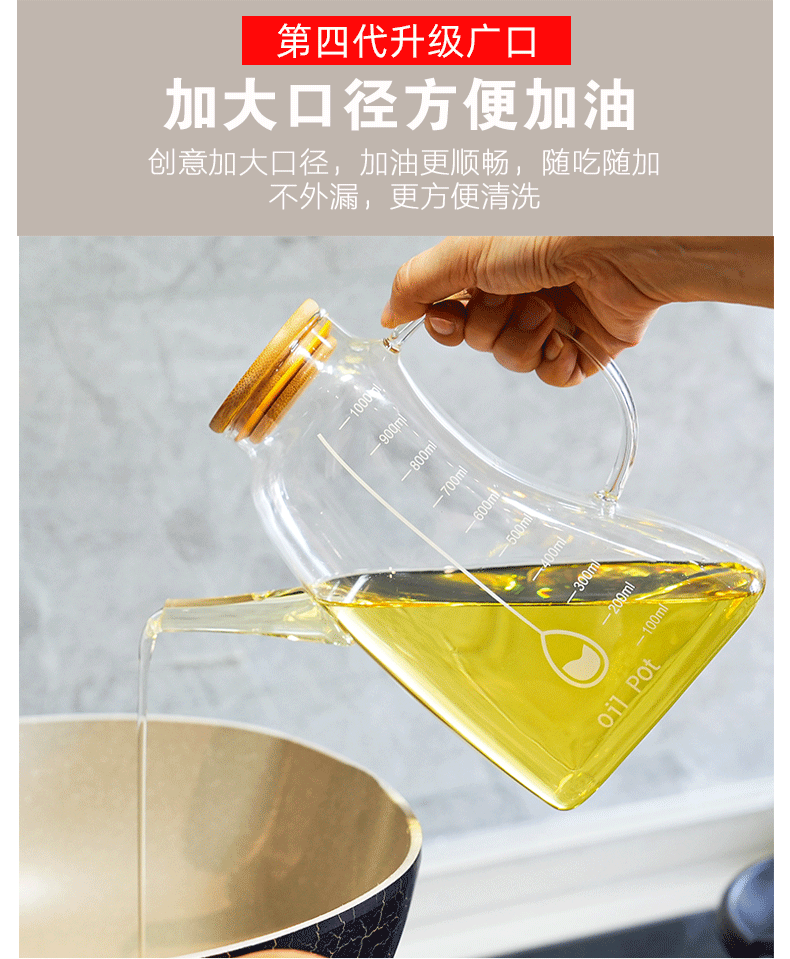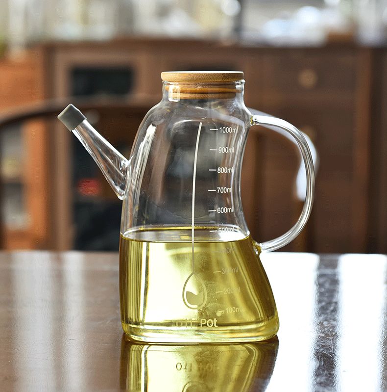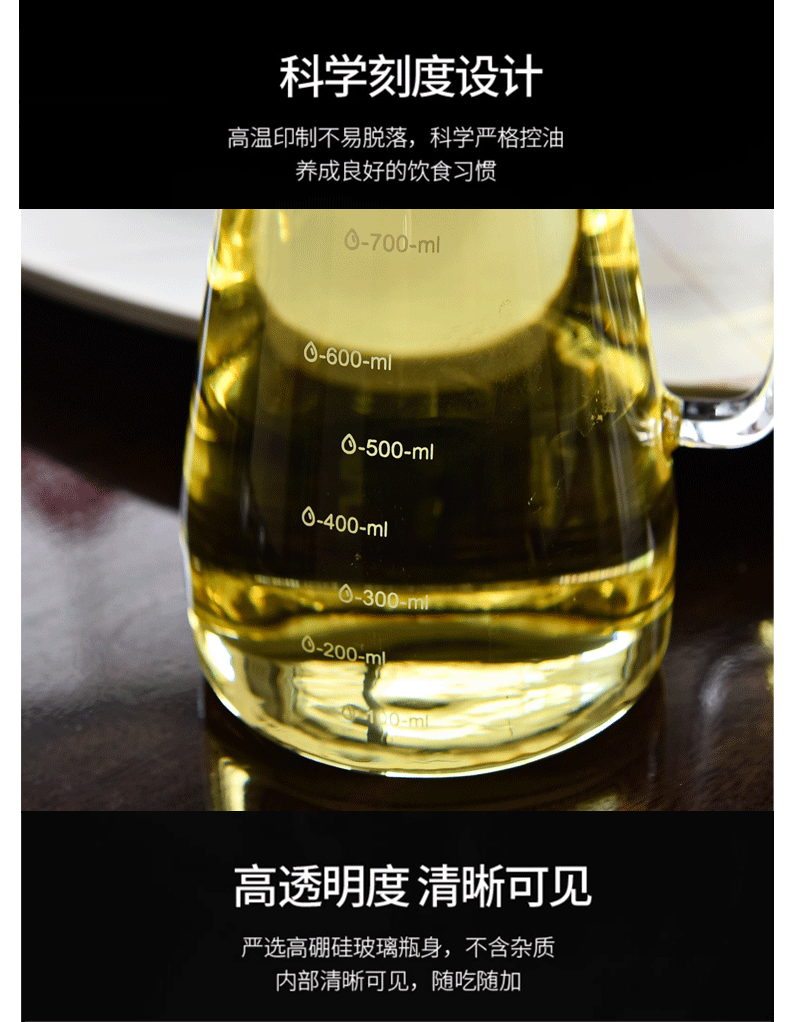 Olla de aceite de vidrio botella de aceite del hogar Olla cocina de gran capacidad salsa vinagre botella de condimento a prueba de fugas aceite no colgante con escala
