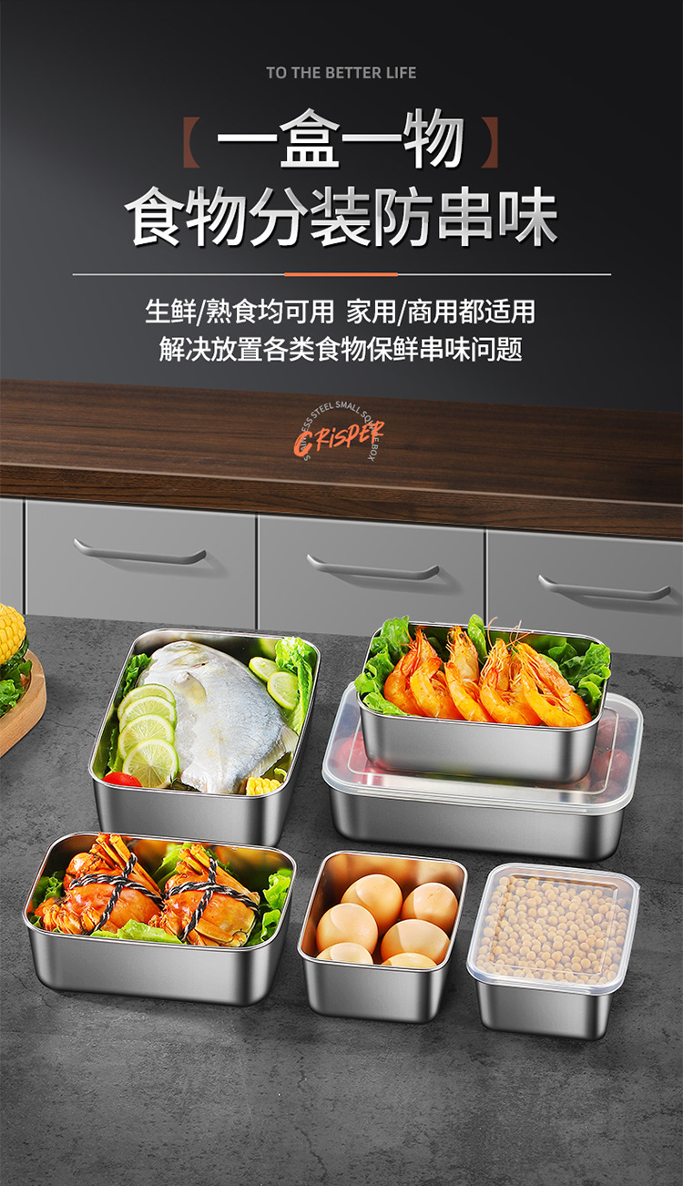 Crisper antibacteriano de calidad alimentaria de acero inoxidable caja de fruta Bento refrigerador especial sellado caja de almacenamiento hogar