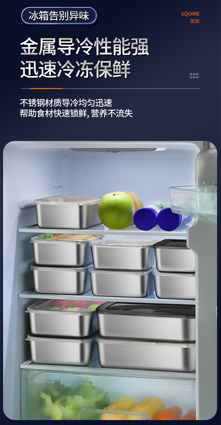 | Categoría de producto | Caja de almuerzo de fruta de acero inoxidable de grado alimenticio antibacteriano refrigerador caja de almacenamiento sellada especial para el hogar |