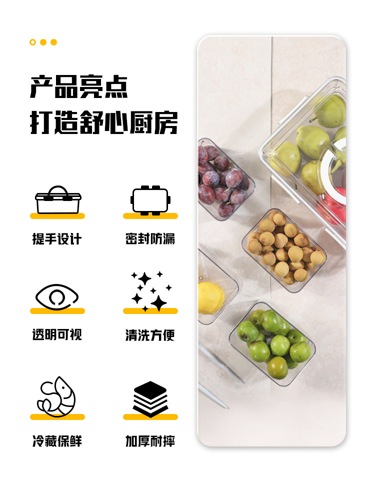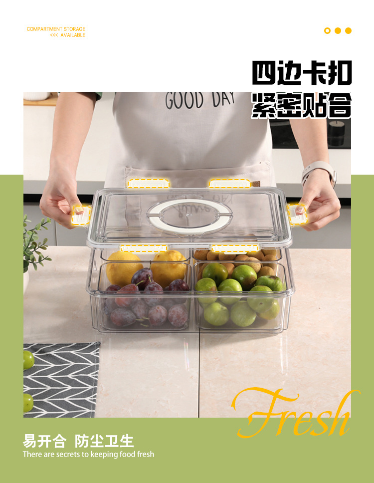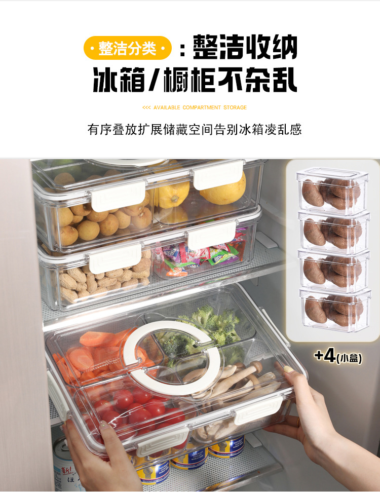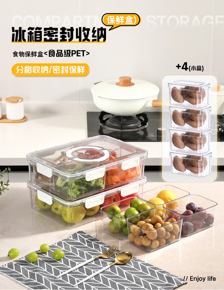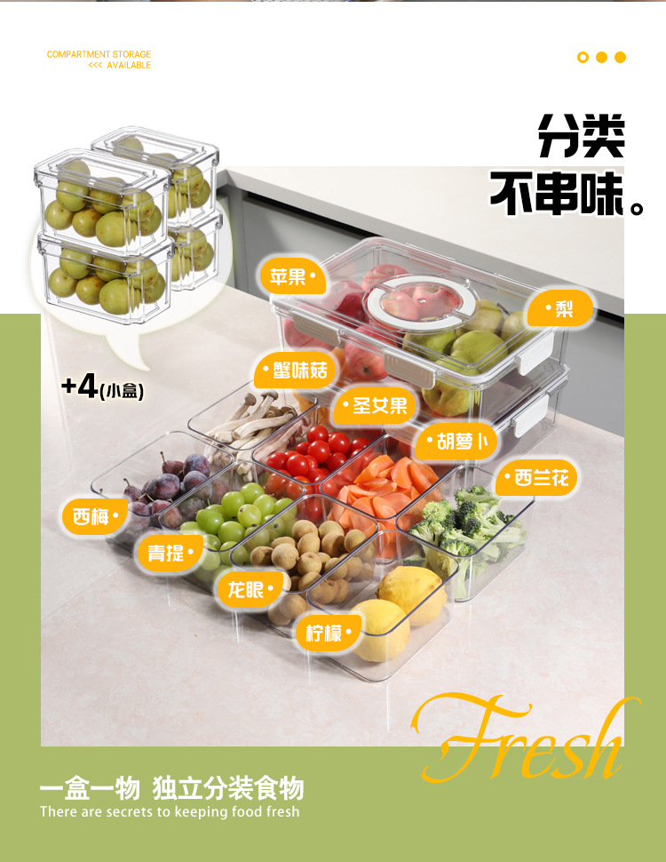 Refrigerador caja de almacenamiento de calidad alimentaria clasificación de frutas y verduras crisper 9-pieza portátil PET transparente cocina organización caja