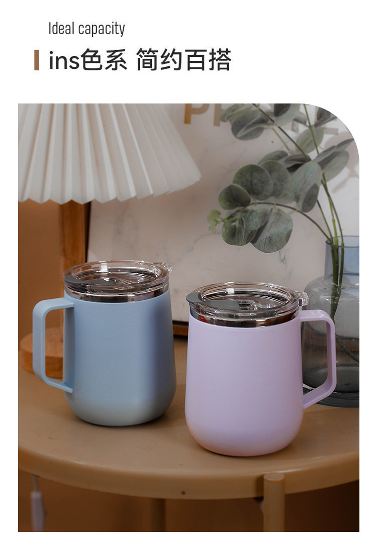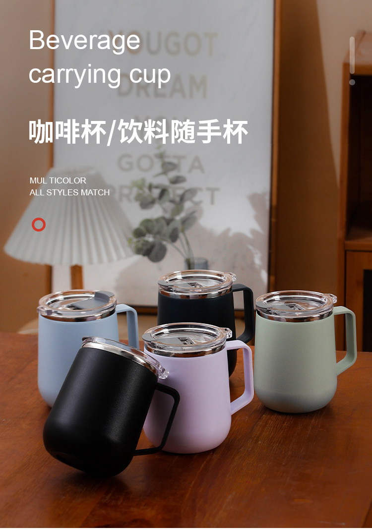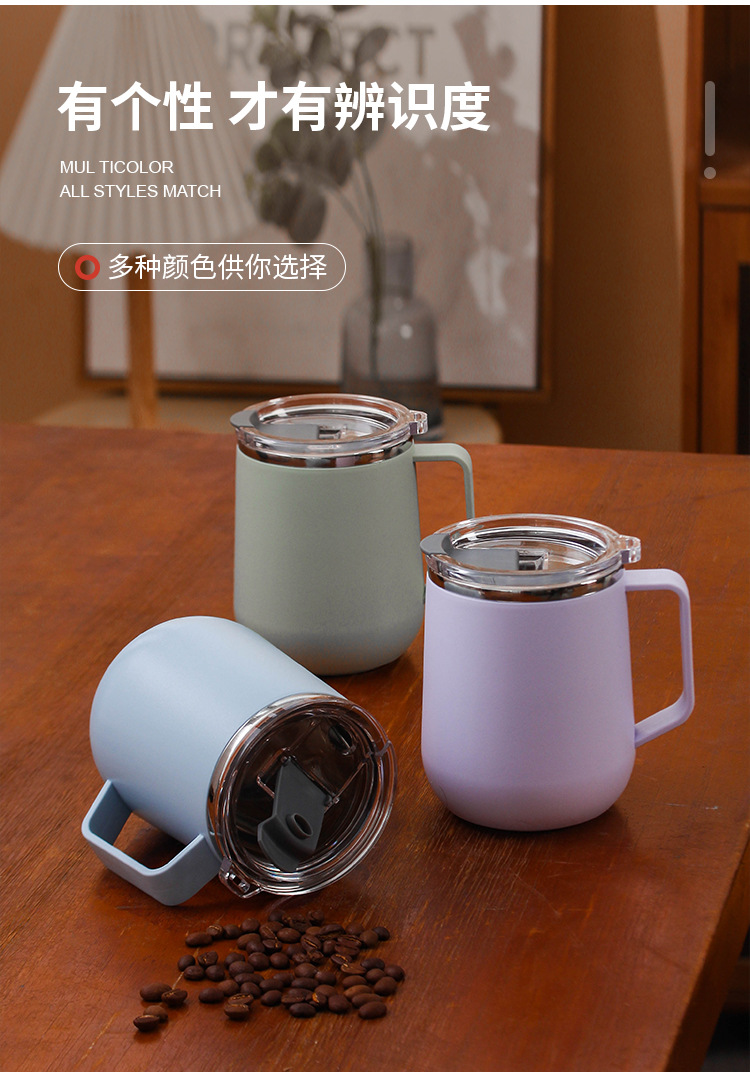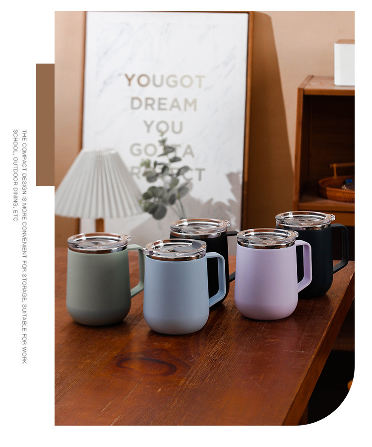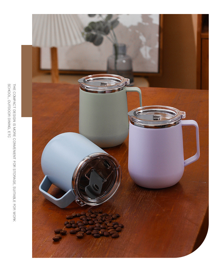 Creativo 304 de acero inoxidable Oficina gran capacidad taza agua con tapa mango al aire libre regalo fábrica por mayor