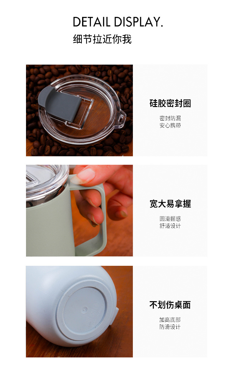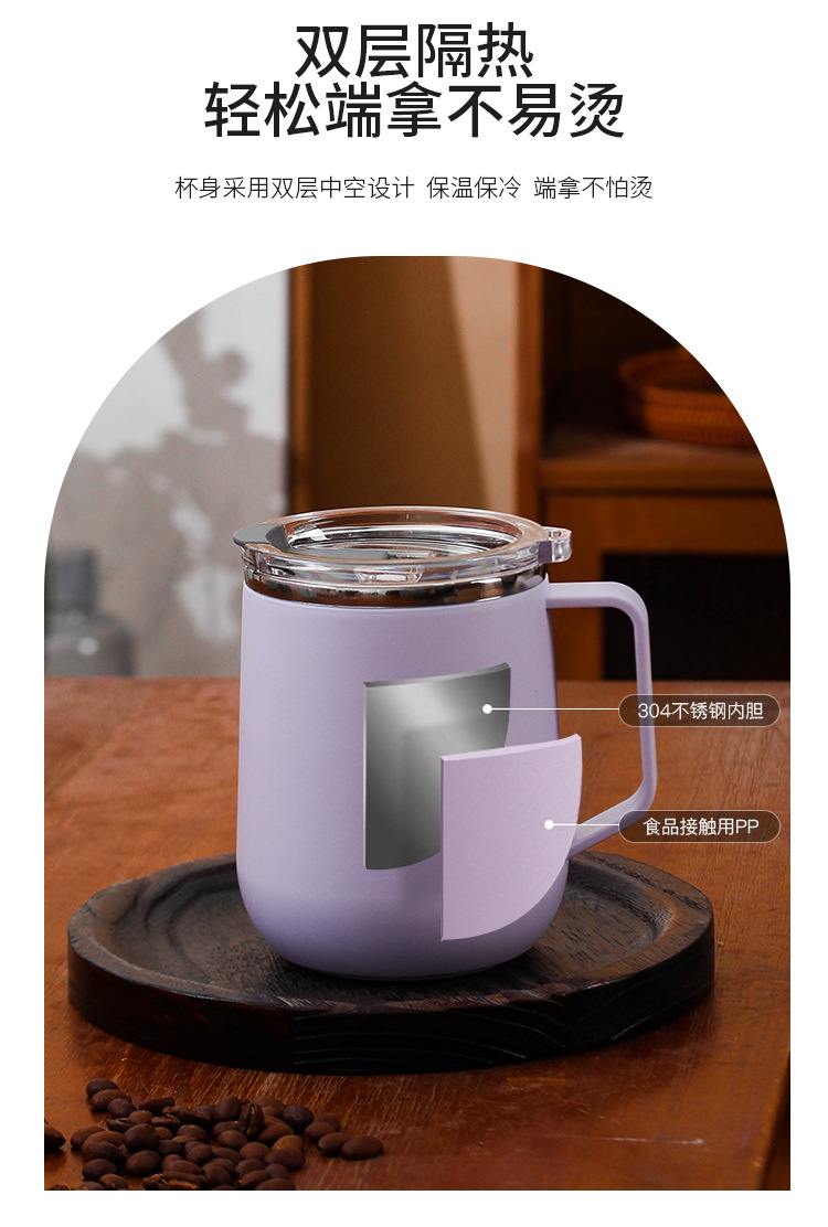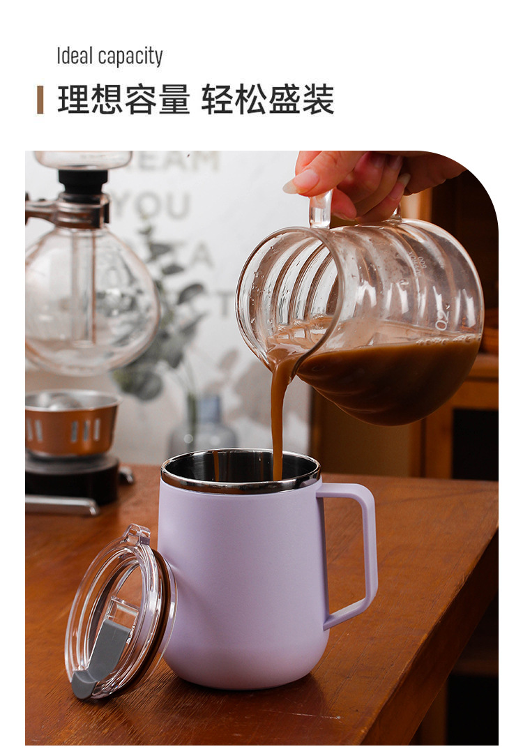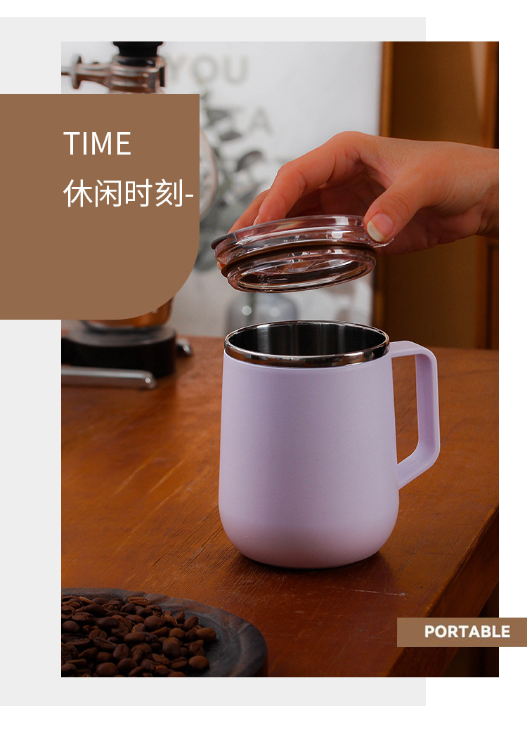 Creativo 304 de acero inoxidable Oficina gran capacidad taza agua con tapa mango al aire libre regalo fábrica por mayor
