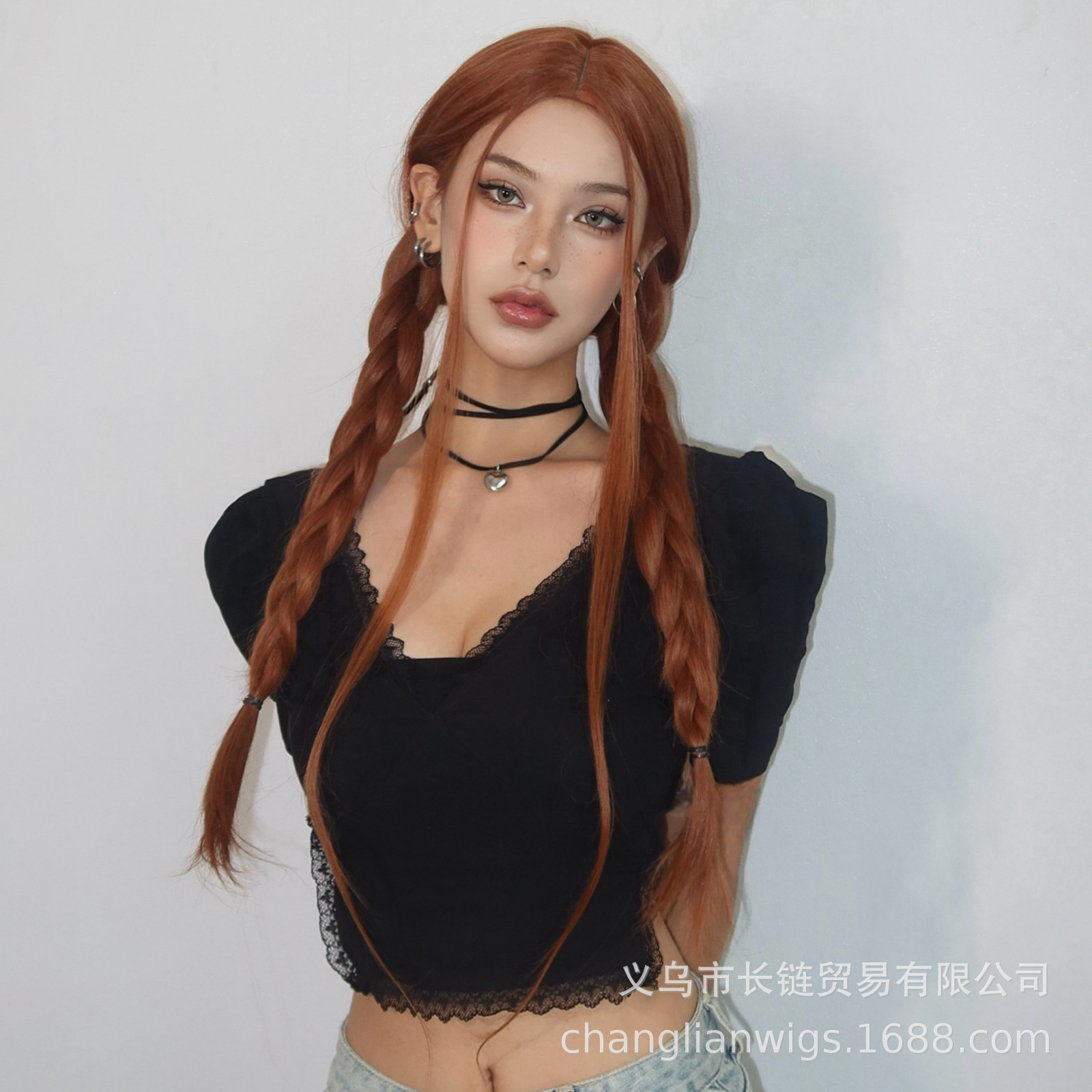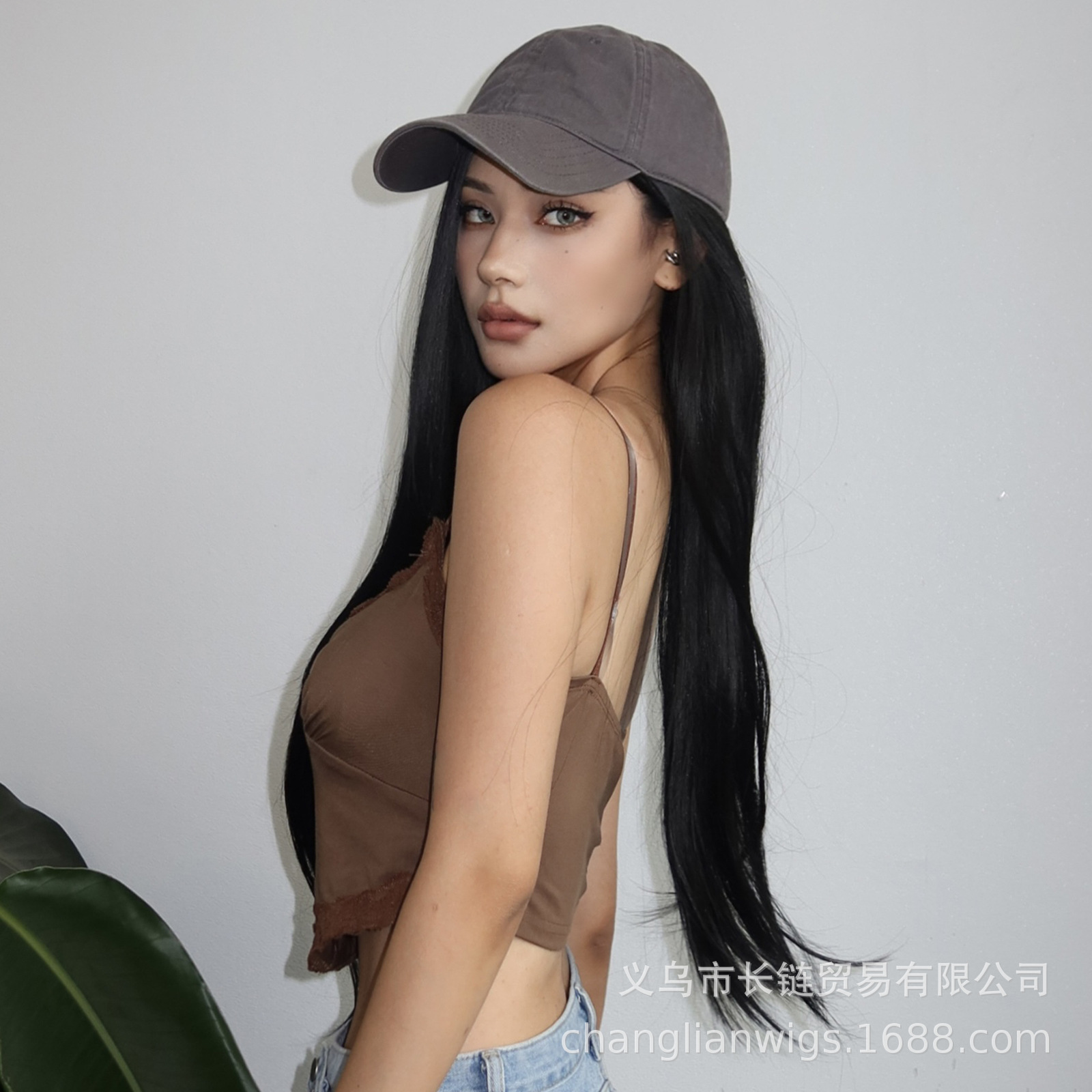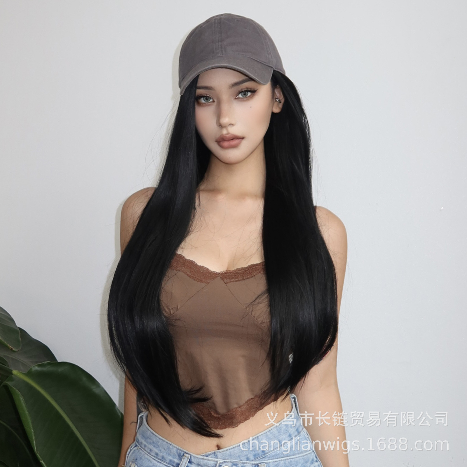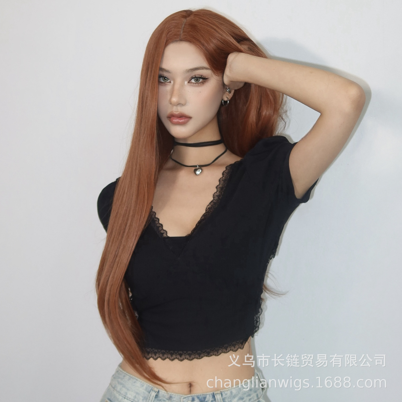 Luz transfronteriza Europa y América hasta la cintura peluca de pelo liso de longitud media negra cabeza entera seda doméstica femenina natural peluca Xuchang wigs