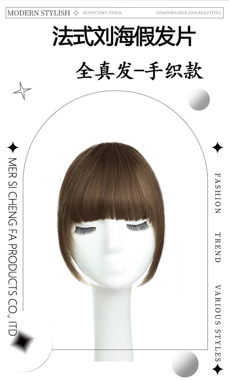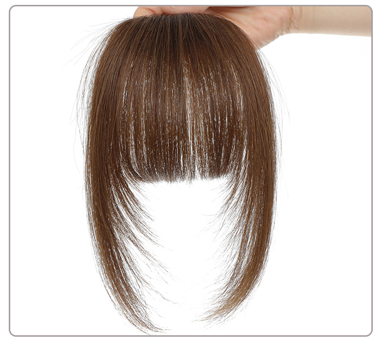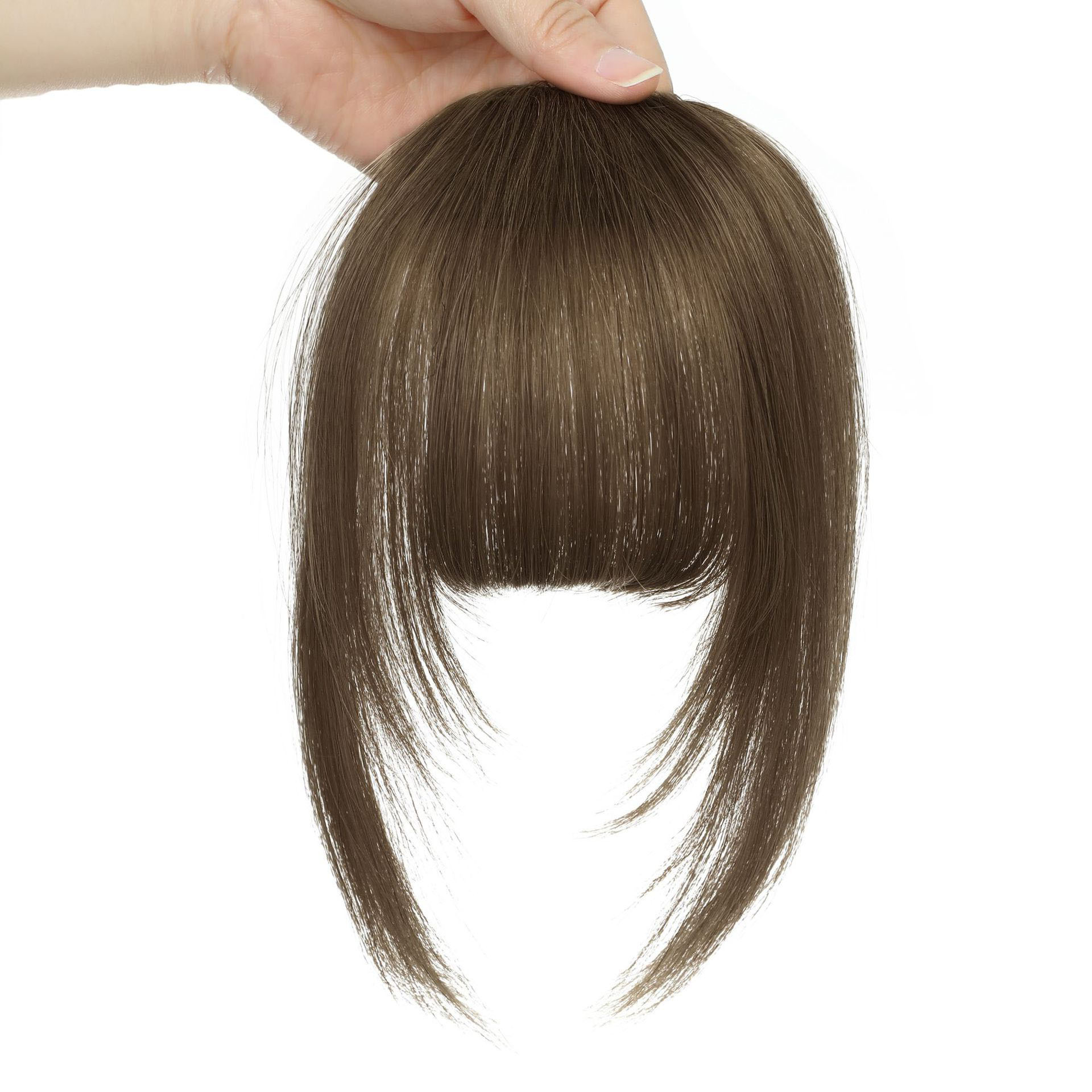 Flequillo francés de cabello humano real para mujeres, postizo de cabello real tejido a mano sin costuras, flequillo de aire.