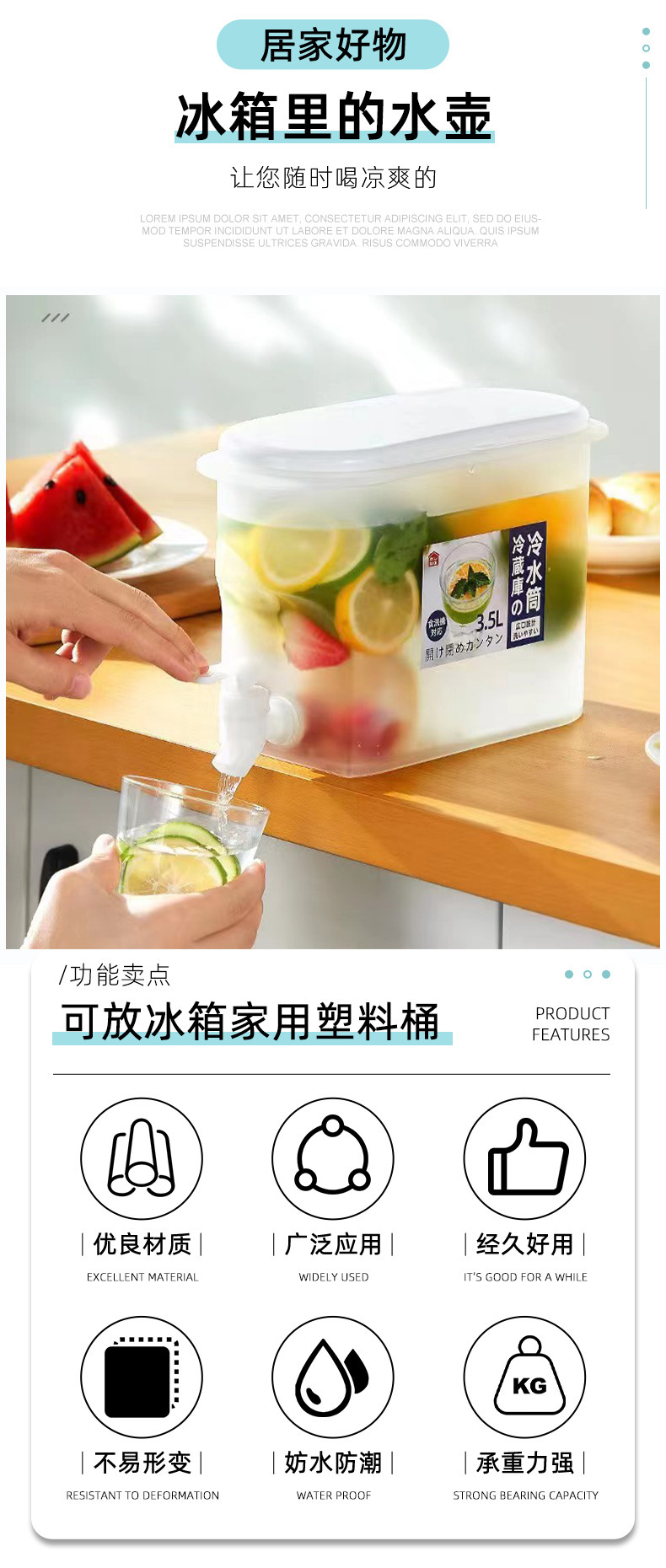 3.5L botella de agua fría de gran capacidad con grifo de bebidas cubo de agua fría bebida de verano fruta tetera refrigerador botella de agua helada