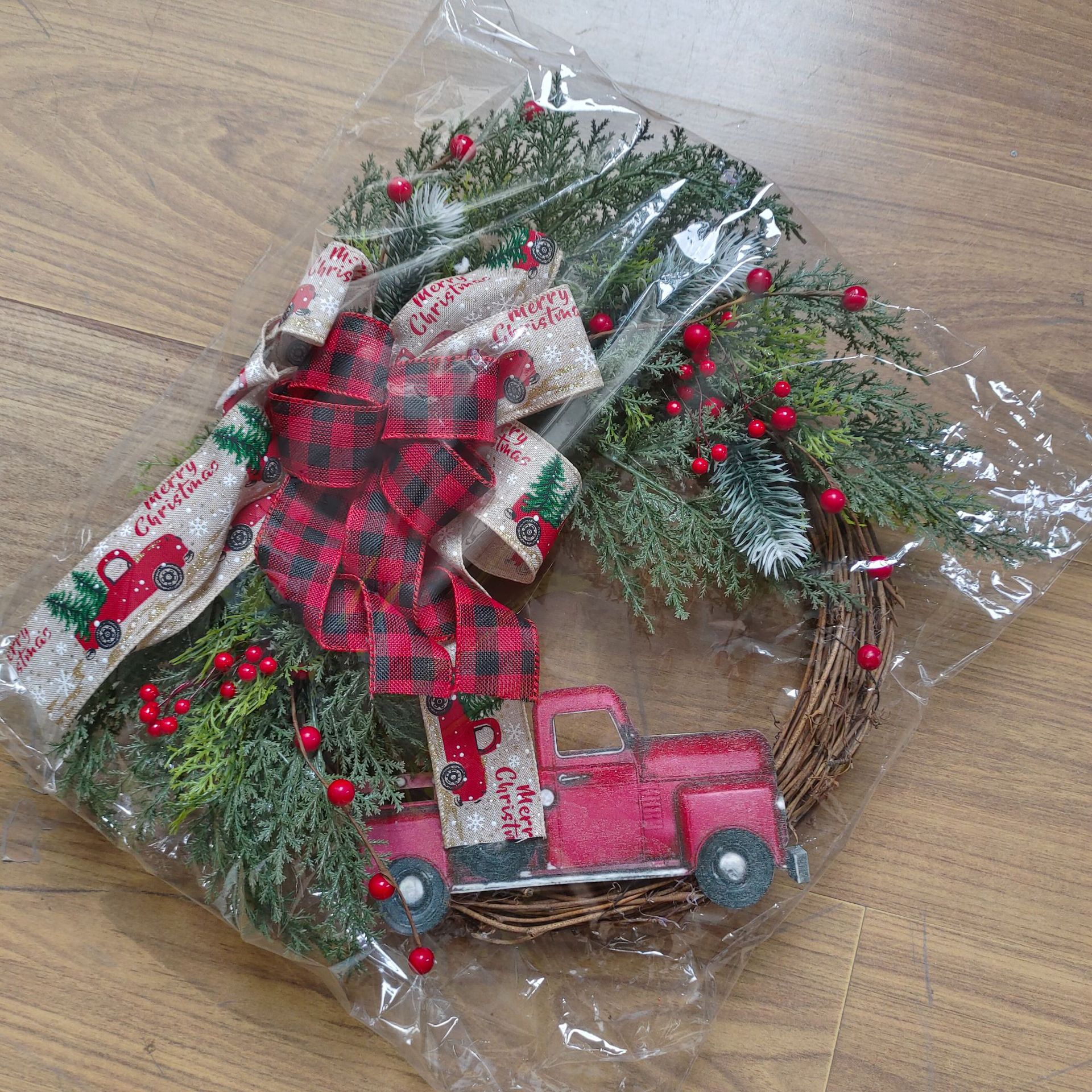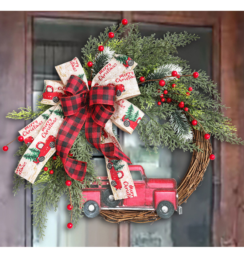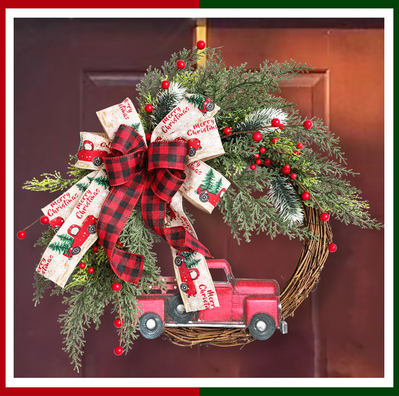 Transfronterizo camión rojo guirnalda de Navidad decoración puerta colgante Amazon simulación guirnalda hogar Decoración guirnalda