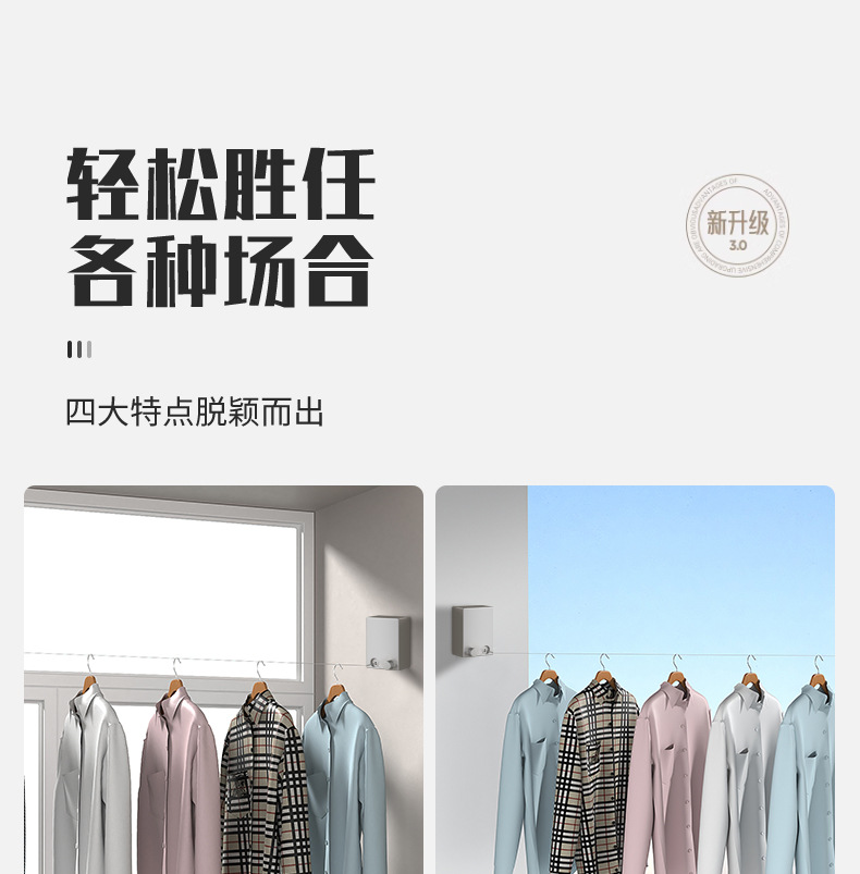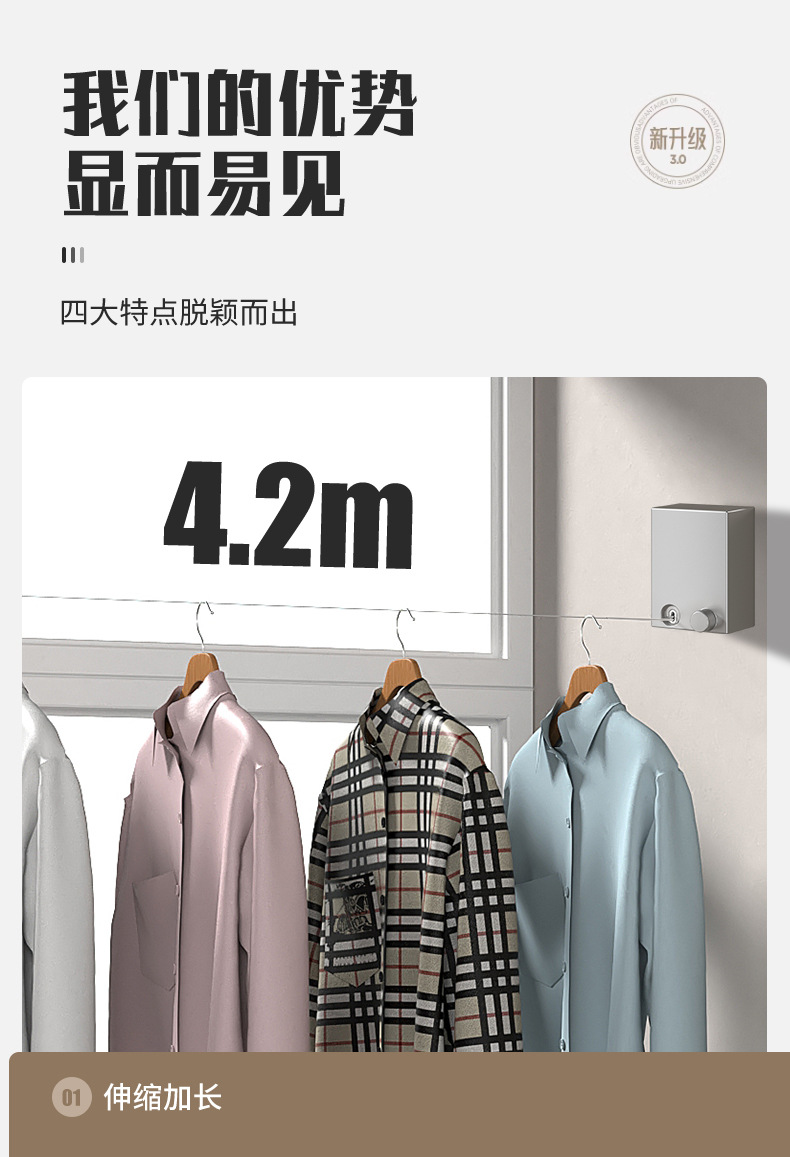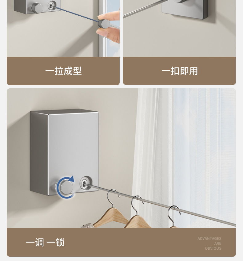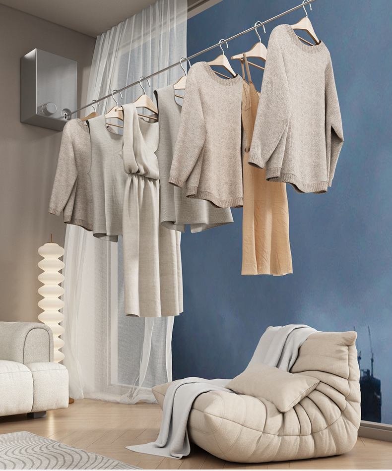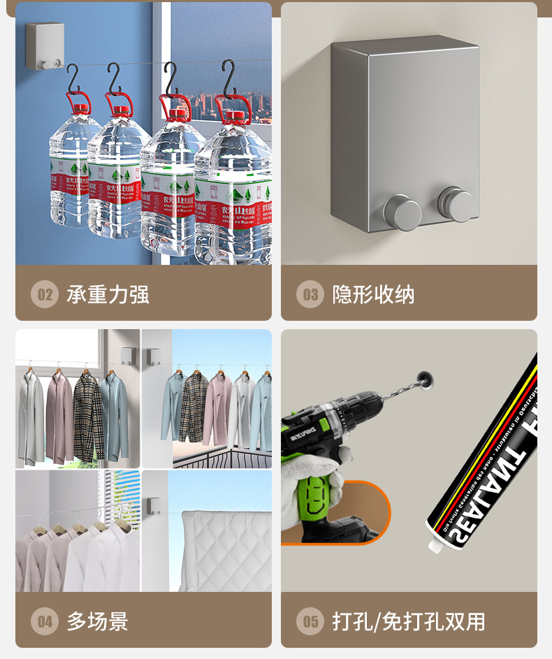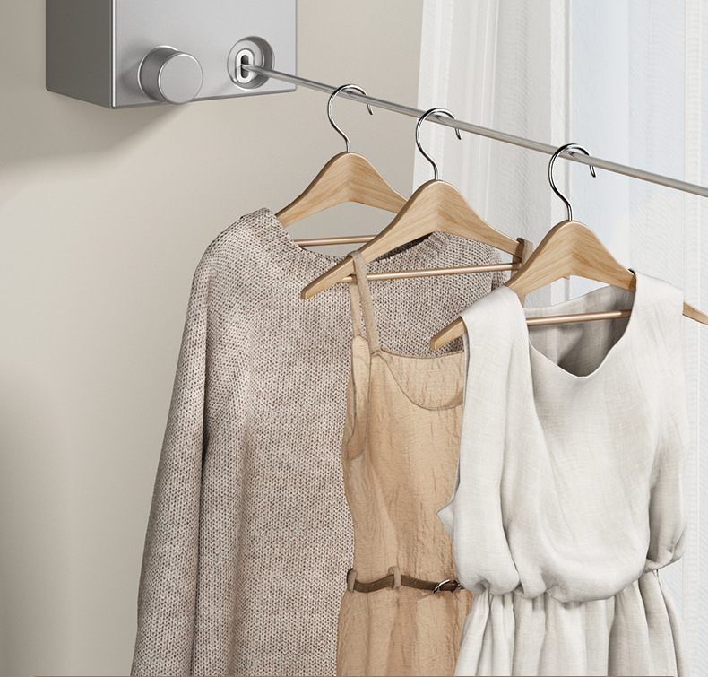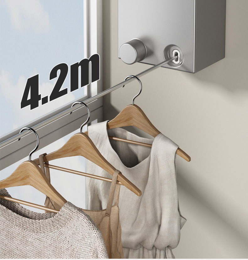 Invisible tendedero interior sin perforar percha de ropa retráctil de secado de ropa artefacto de alambre de acero balcón baño retráctil tirar