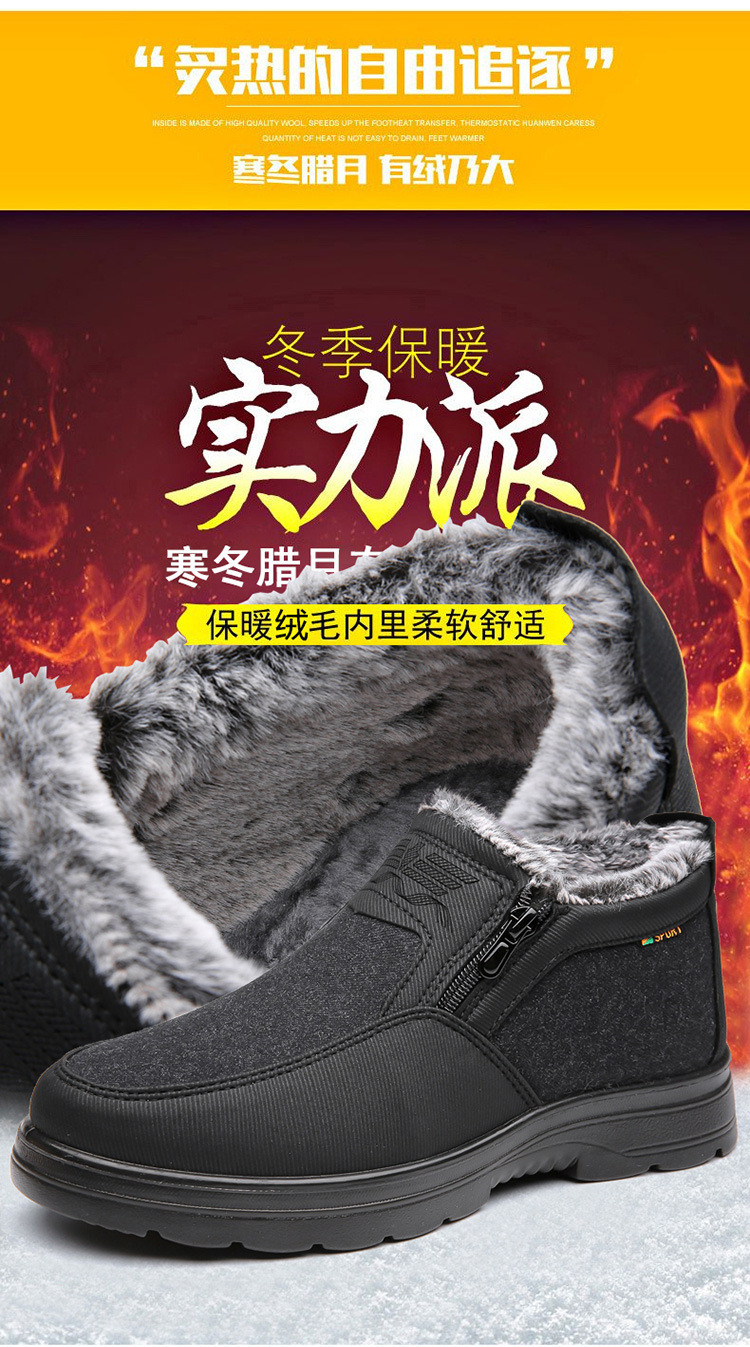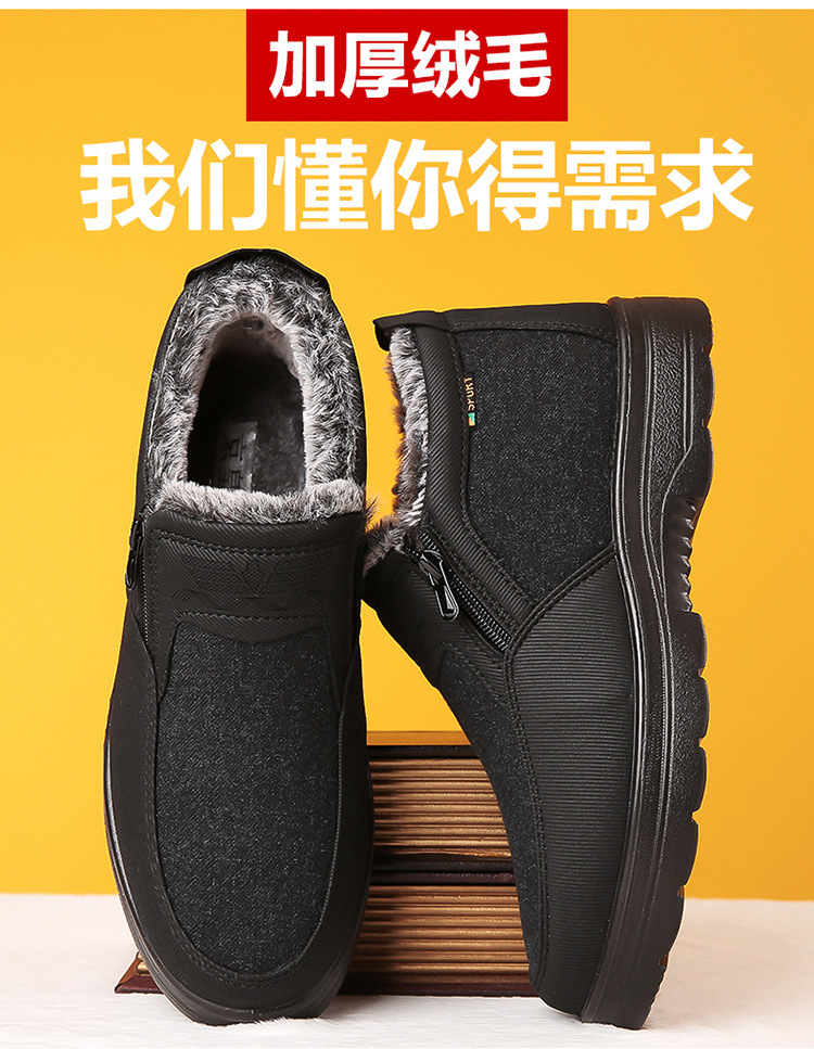 Invierno viejos zapatos de tela de Beijing zapatos de algodón de los hombres forrados de lana gruesa caliente de mediana edad y ancianos zapatos de papá impermeable antideslizante zapatos de los hombres viejos