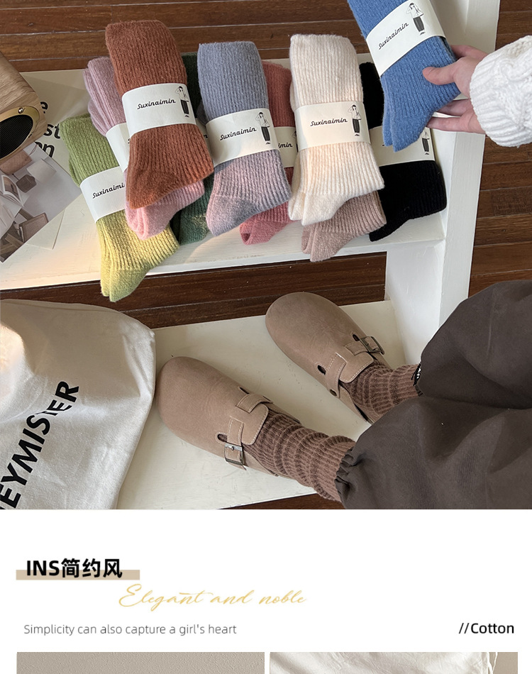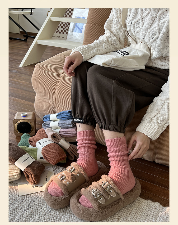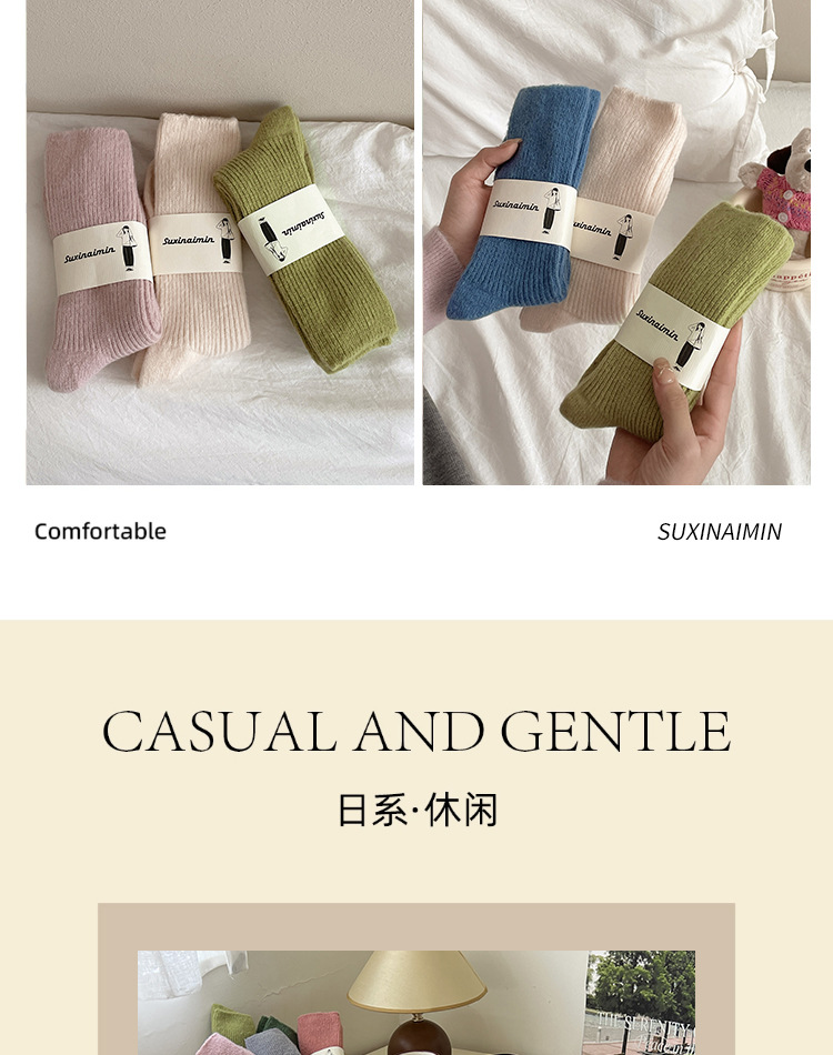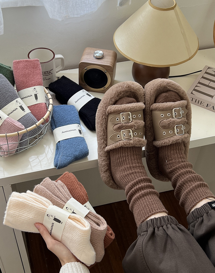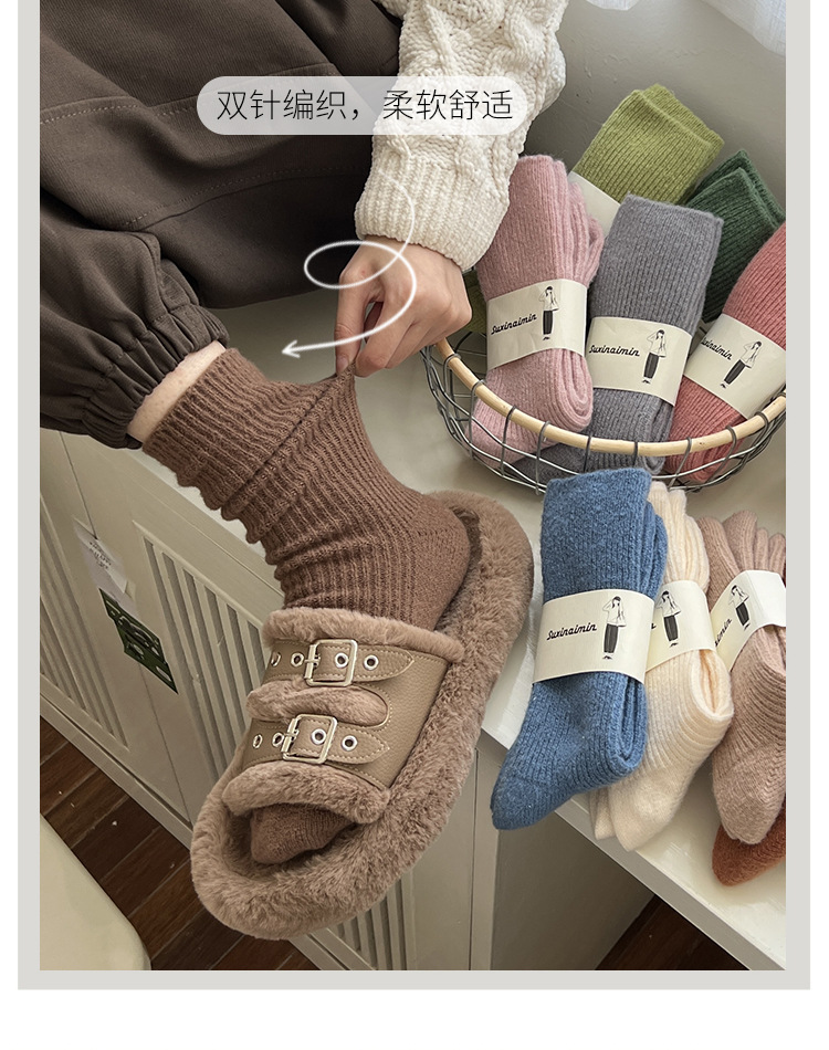 Suxinaimin invierno cordón espesado calcetines dopamina color doble aguja pila calcetines japonés cálido media pantorrilla Calcetines