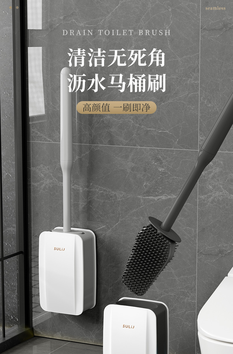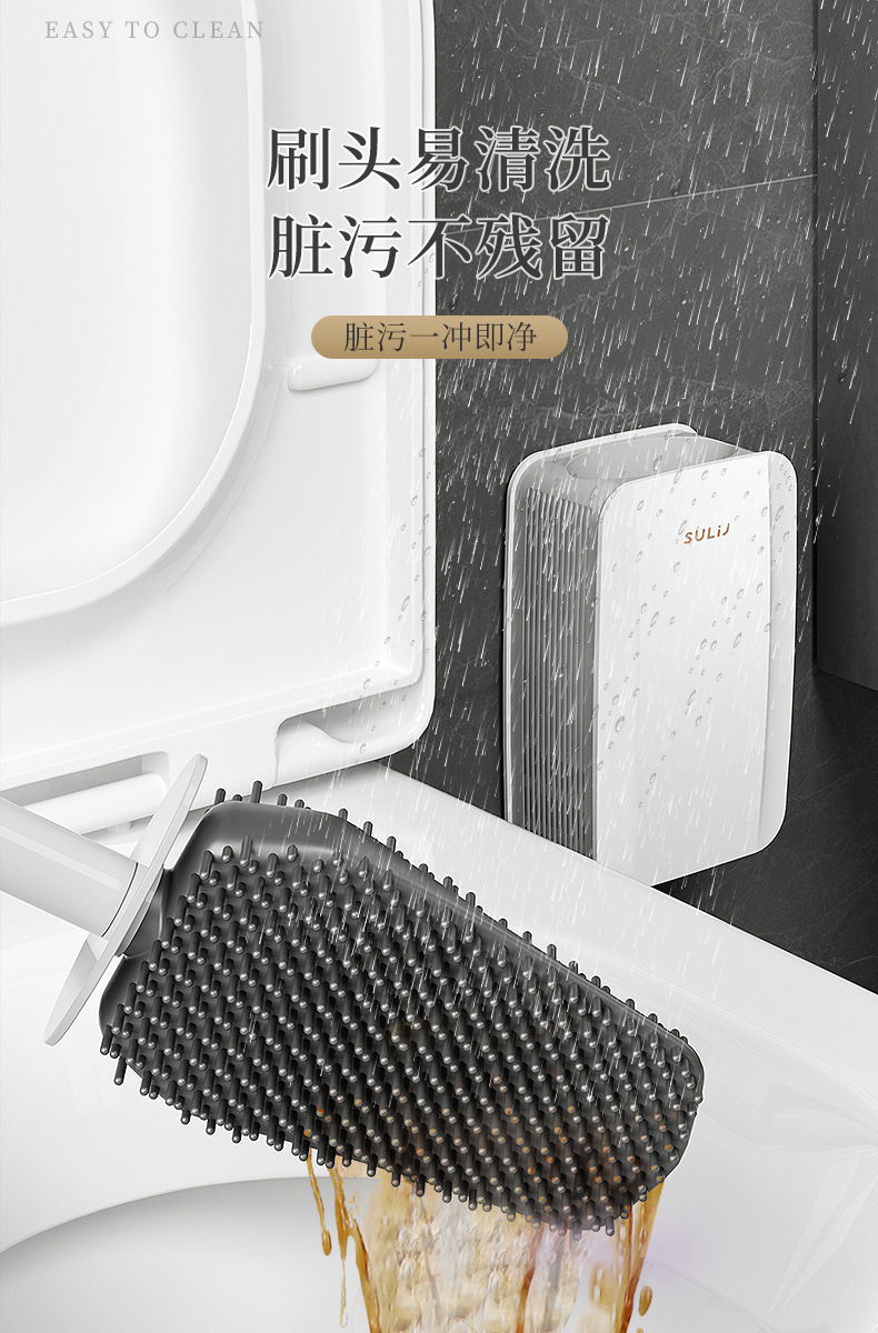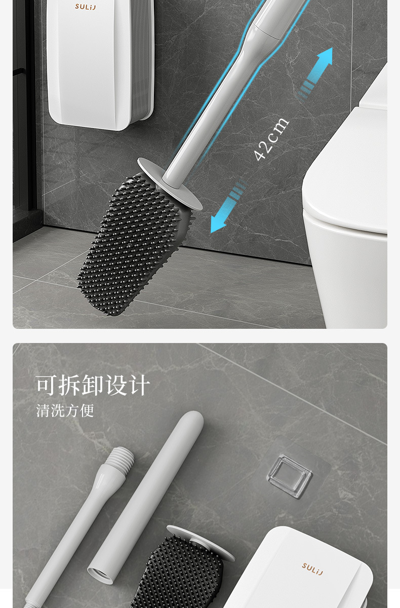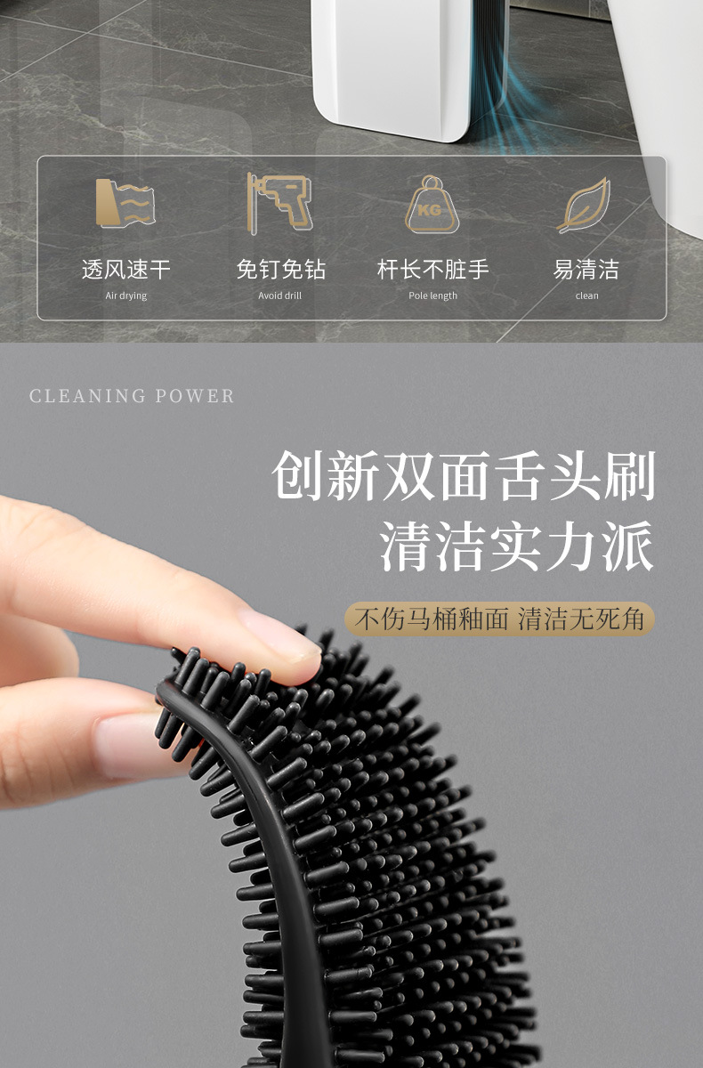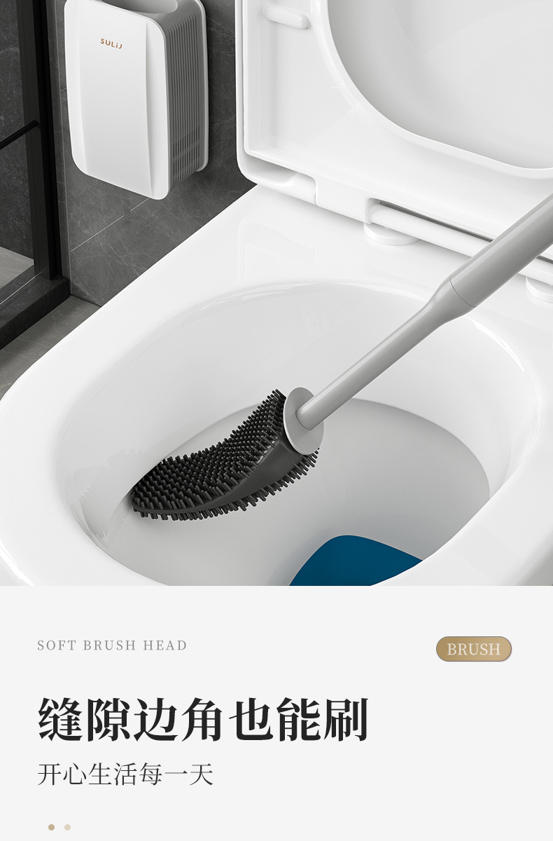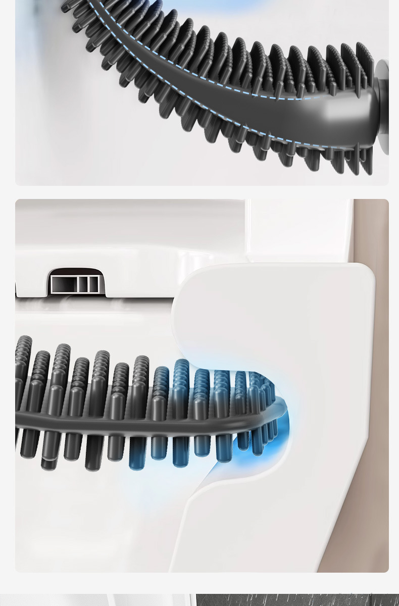 Cepillo de baño de silicona con soporte colgante, diseño sin ángulos muertos, herramienta de limpieza doméstica