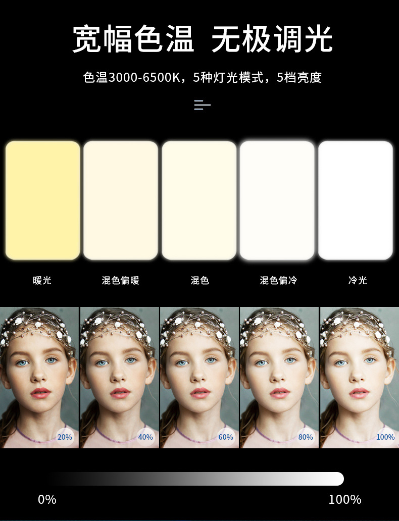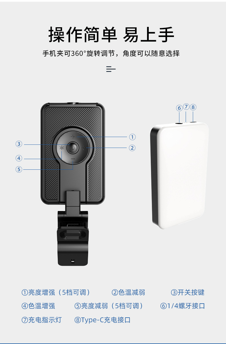 Amazon nuevo 2000 mA Luz de relleno de teléfono móvil 5 temperatura de color mini portátil video conferencia en vivo Luz de relleno