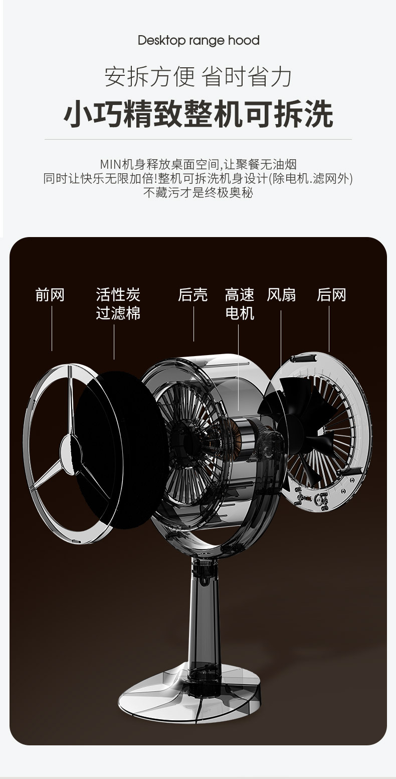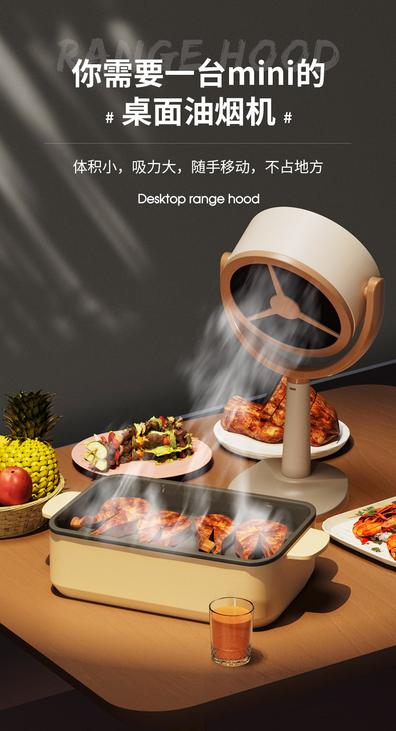 Ventilador de cocina de escritorio pequeño escritorio mini gran succión absorción de aceite extracción de humos transfronteriza nuevo regalo creativo