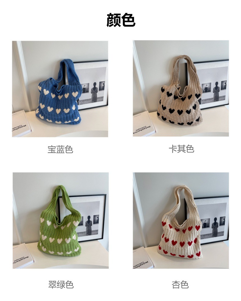 2023ins hecho punto amor bolso de mano transfronterizo fresco simple moda tejida bolso de hombro de estilo occidental personalizado