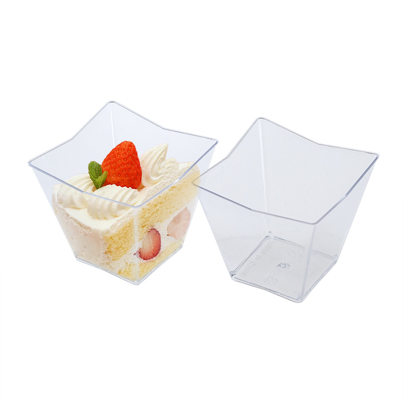 Taza cuadrada puntual Taza redonda Una variedad de tazas de postre Taza de pudín Taza de mousse Plato Cuchara de plástico desechable Amazon
