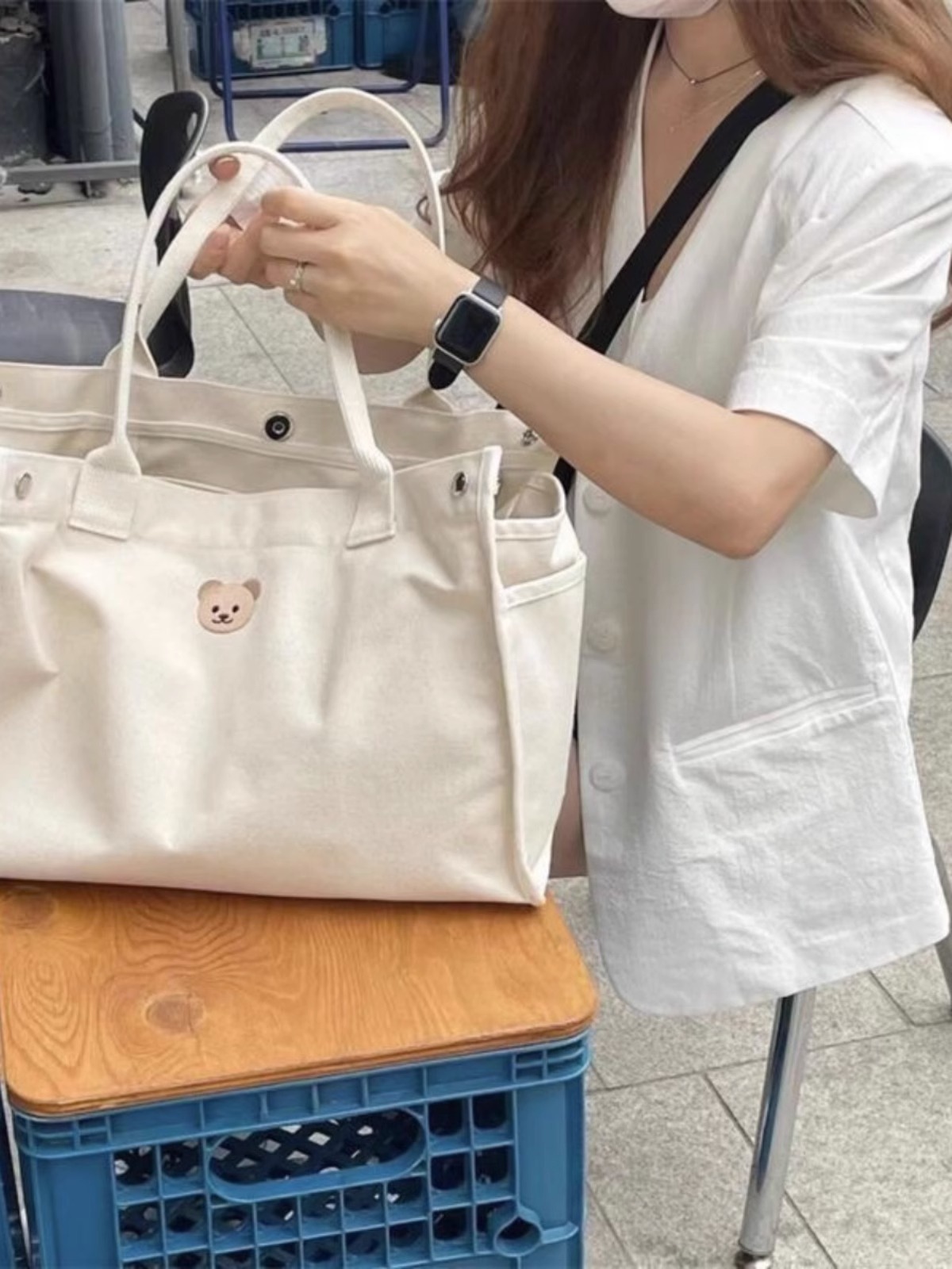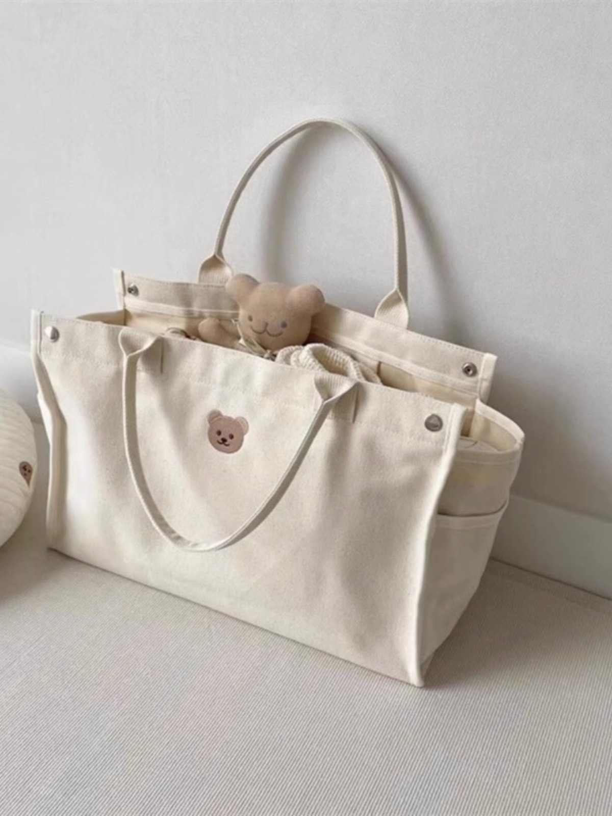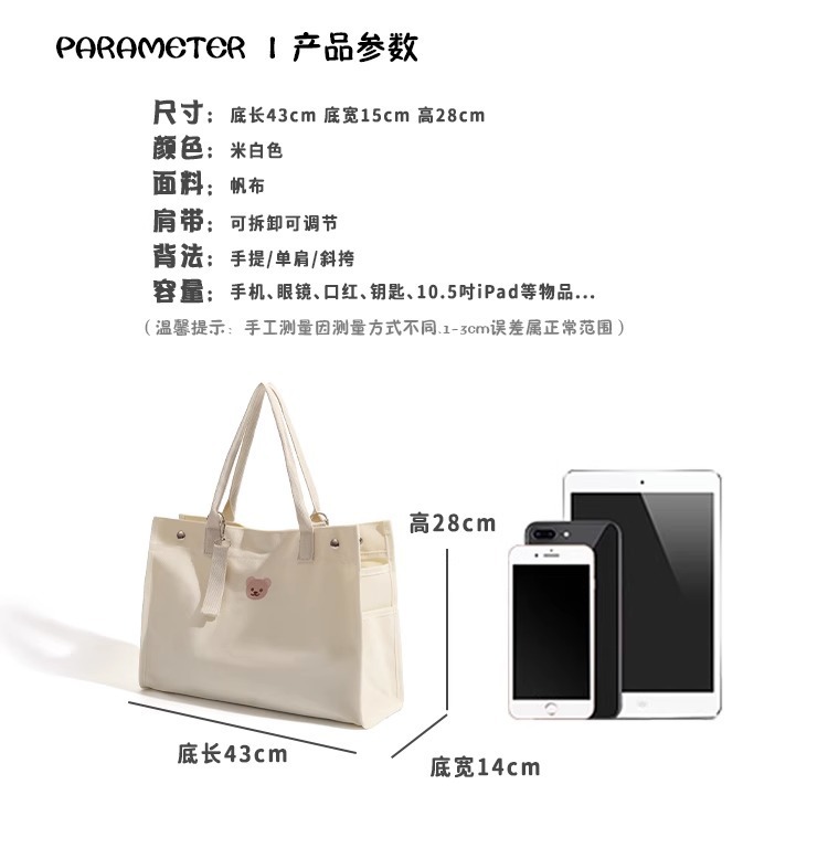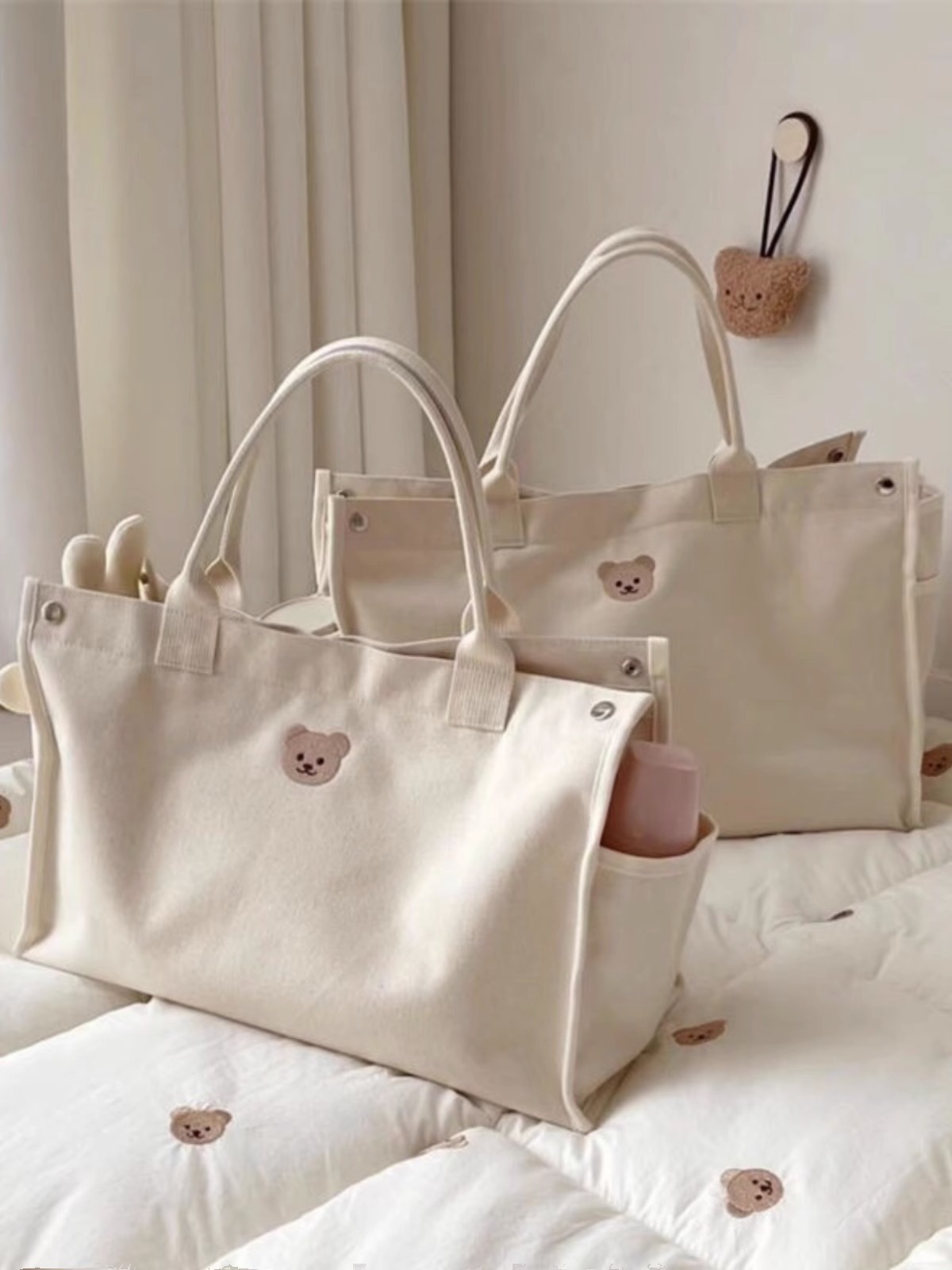 Bolsas exclusivas transfronterizas, lona, bolsa de mamá de gran capacidad, oso bordado, casual, todo fósforo, mamá, salida, portátil